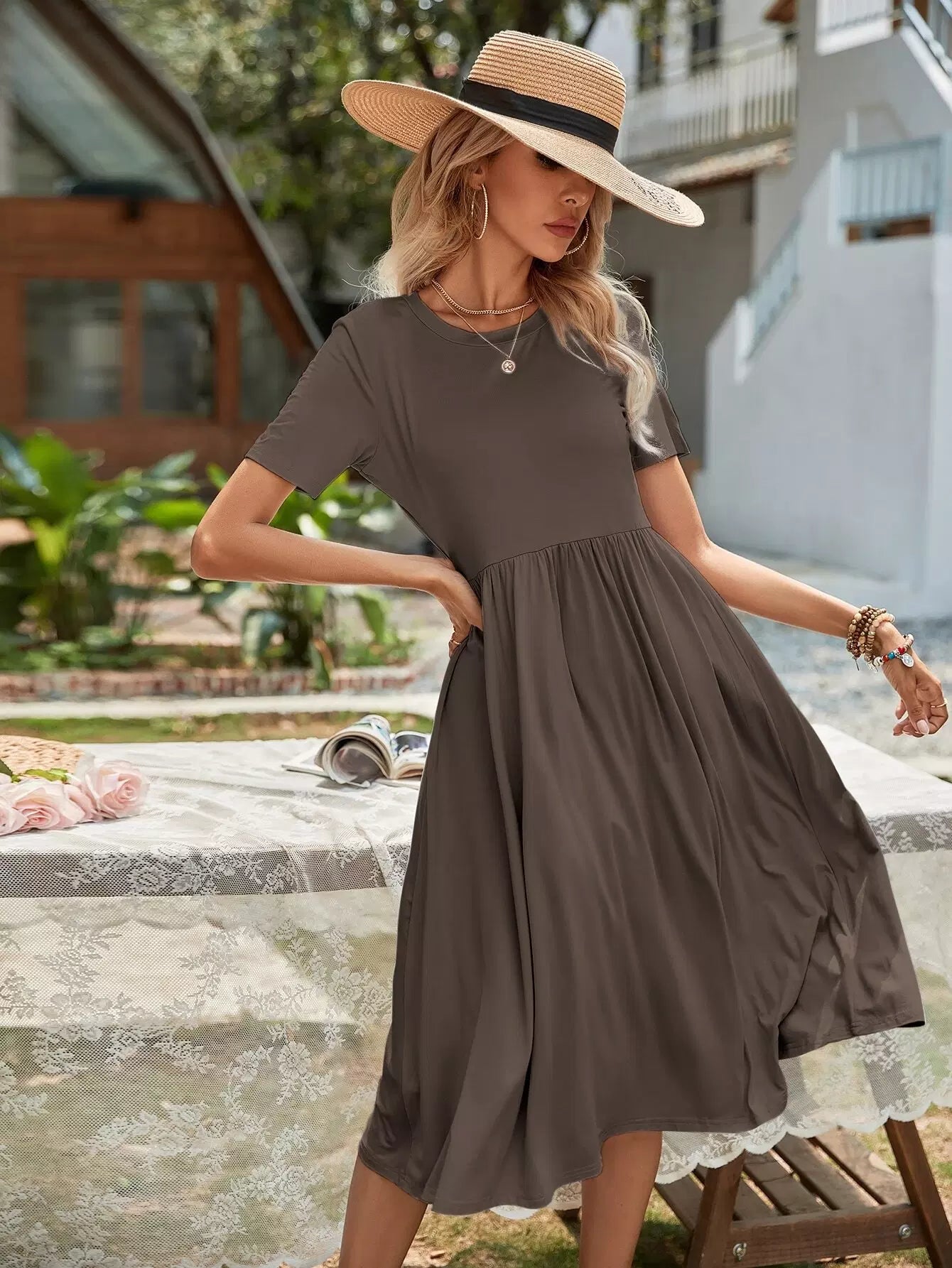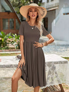 Round Neck Solid Dress
