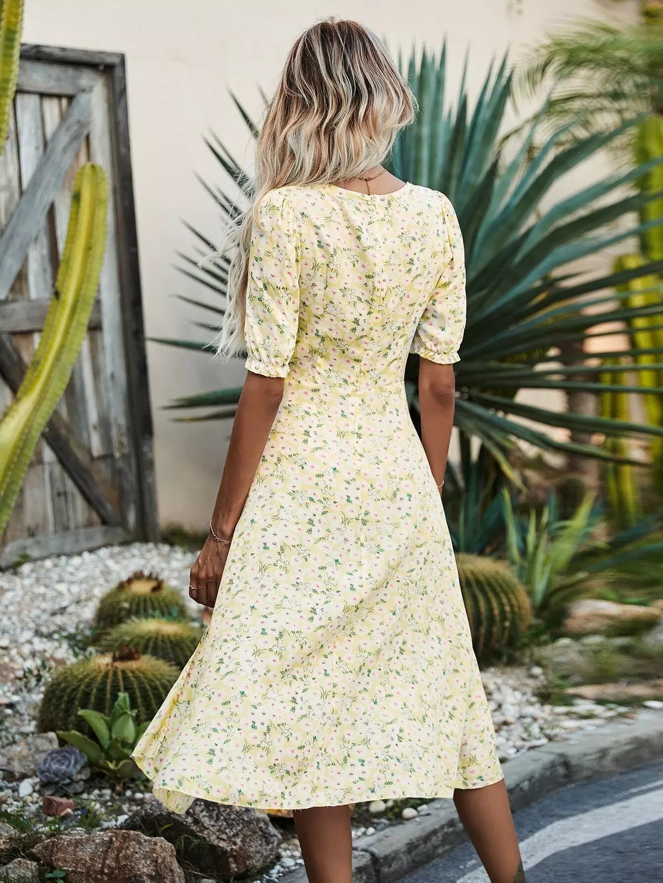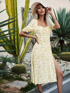 Ruched Bust Split Thigh Ditsy Floral Dress