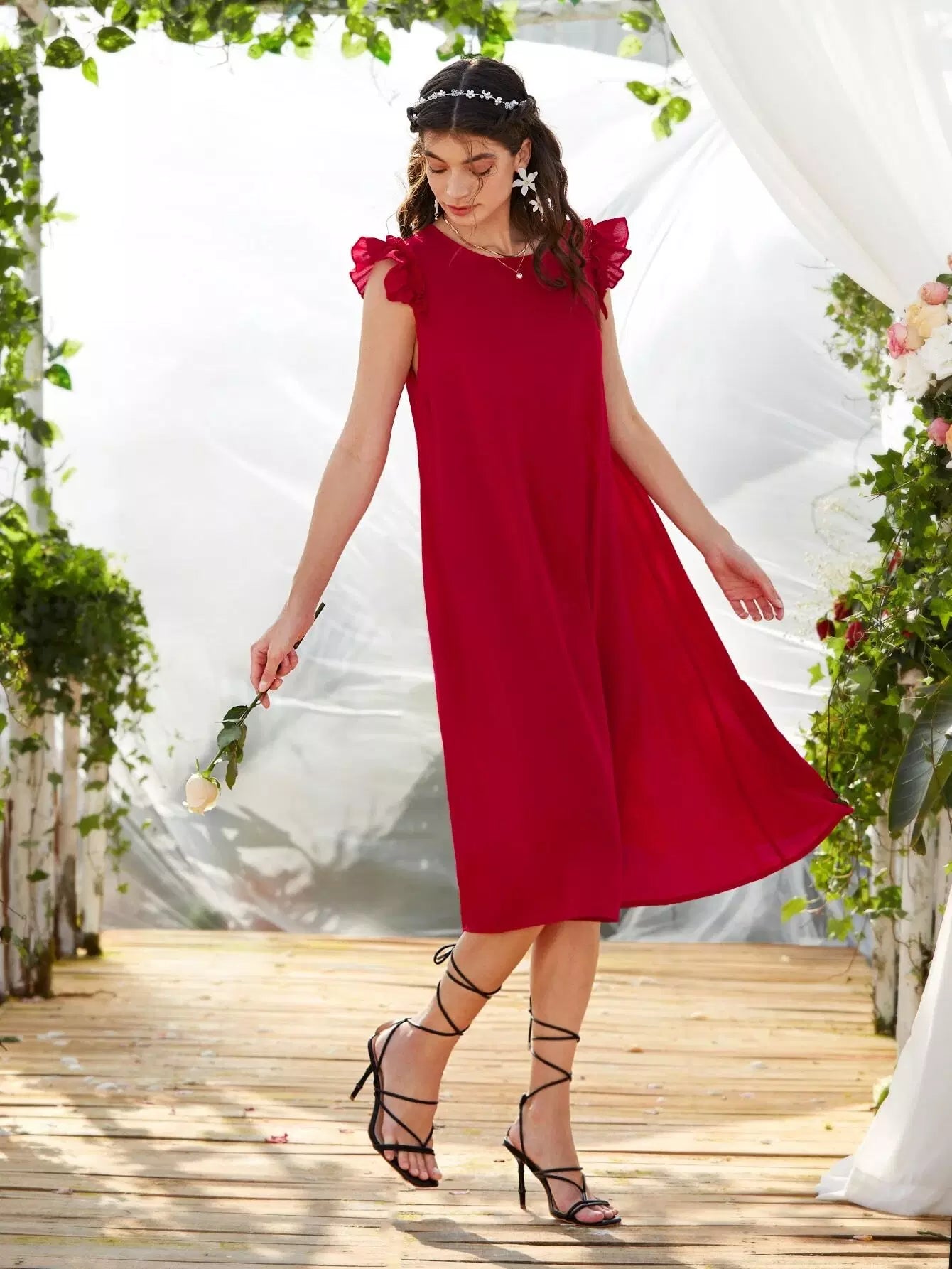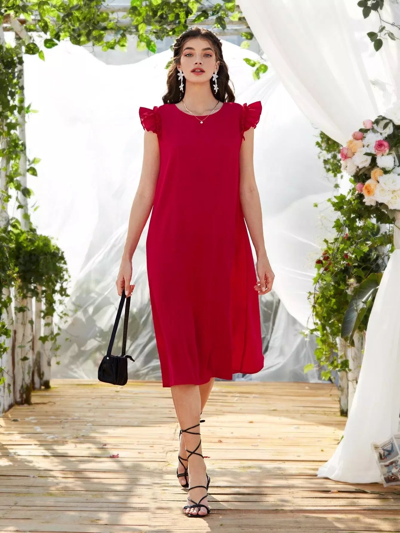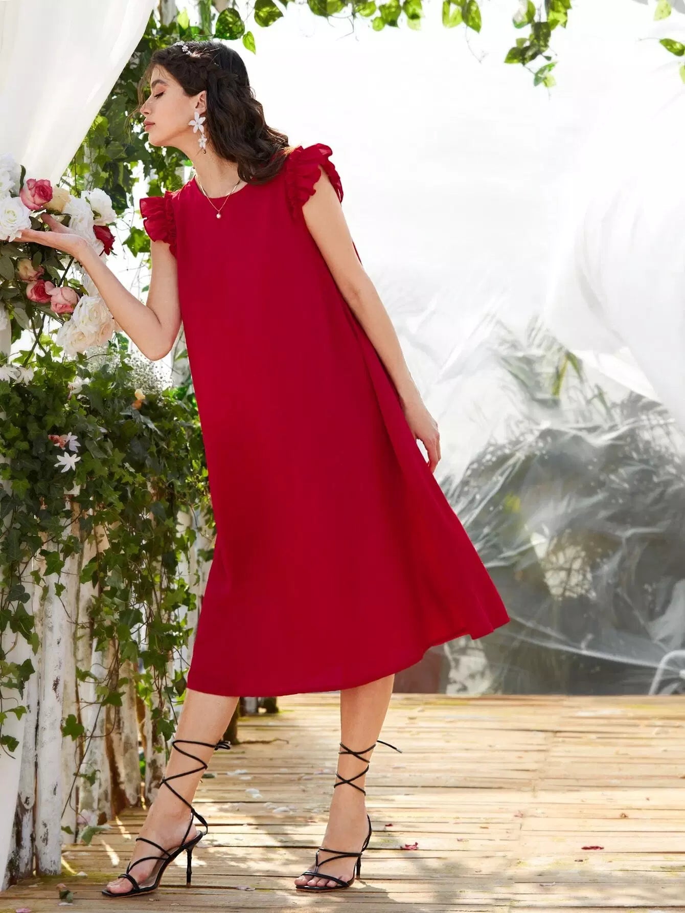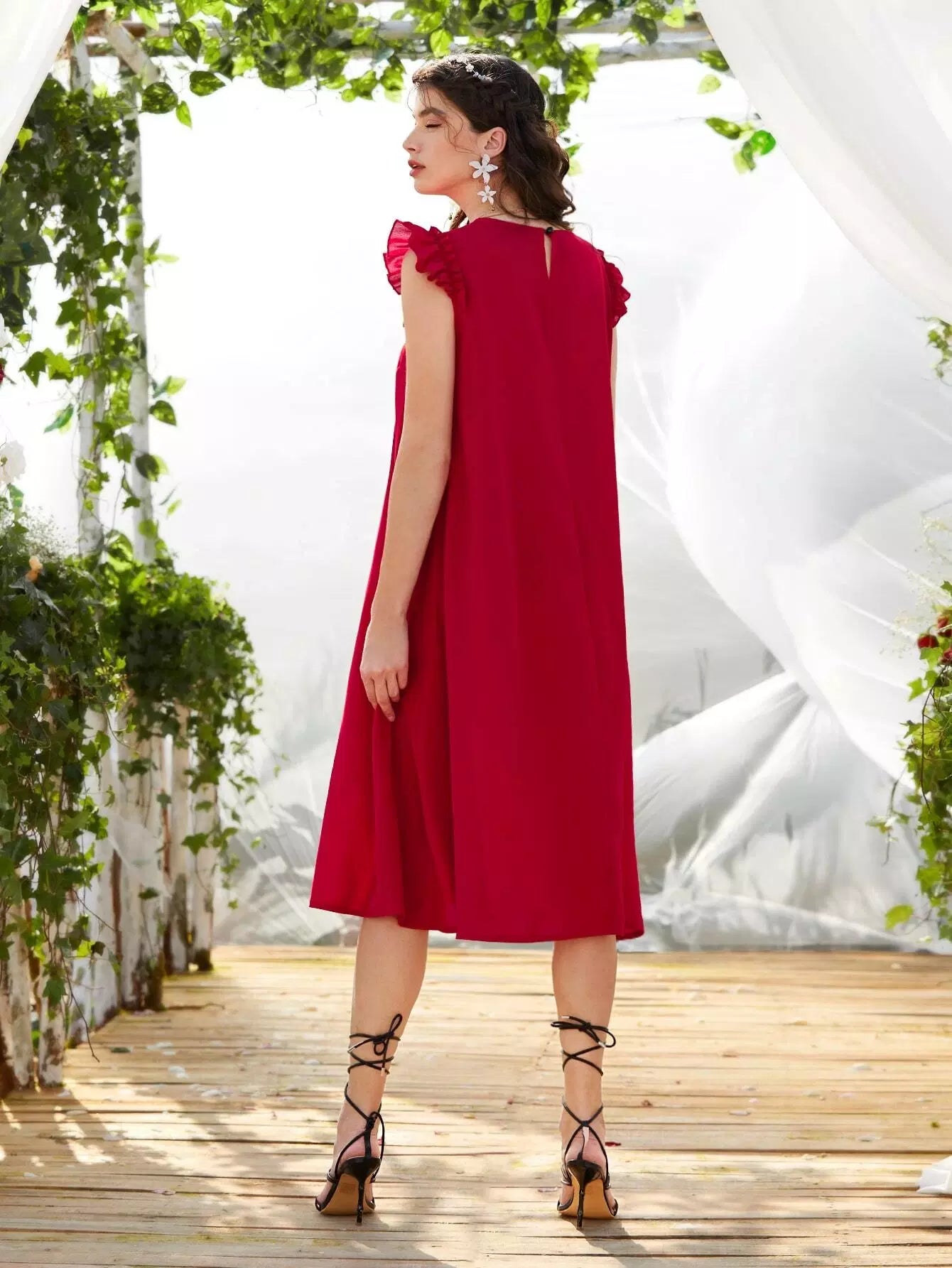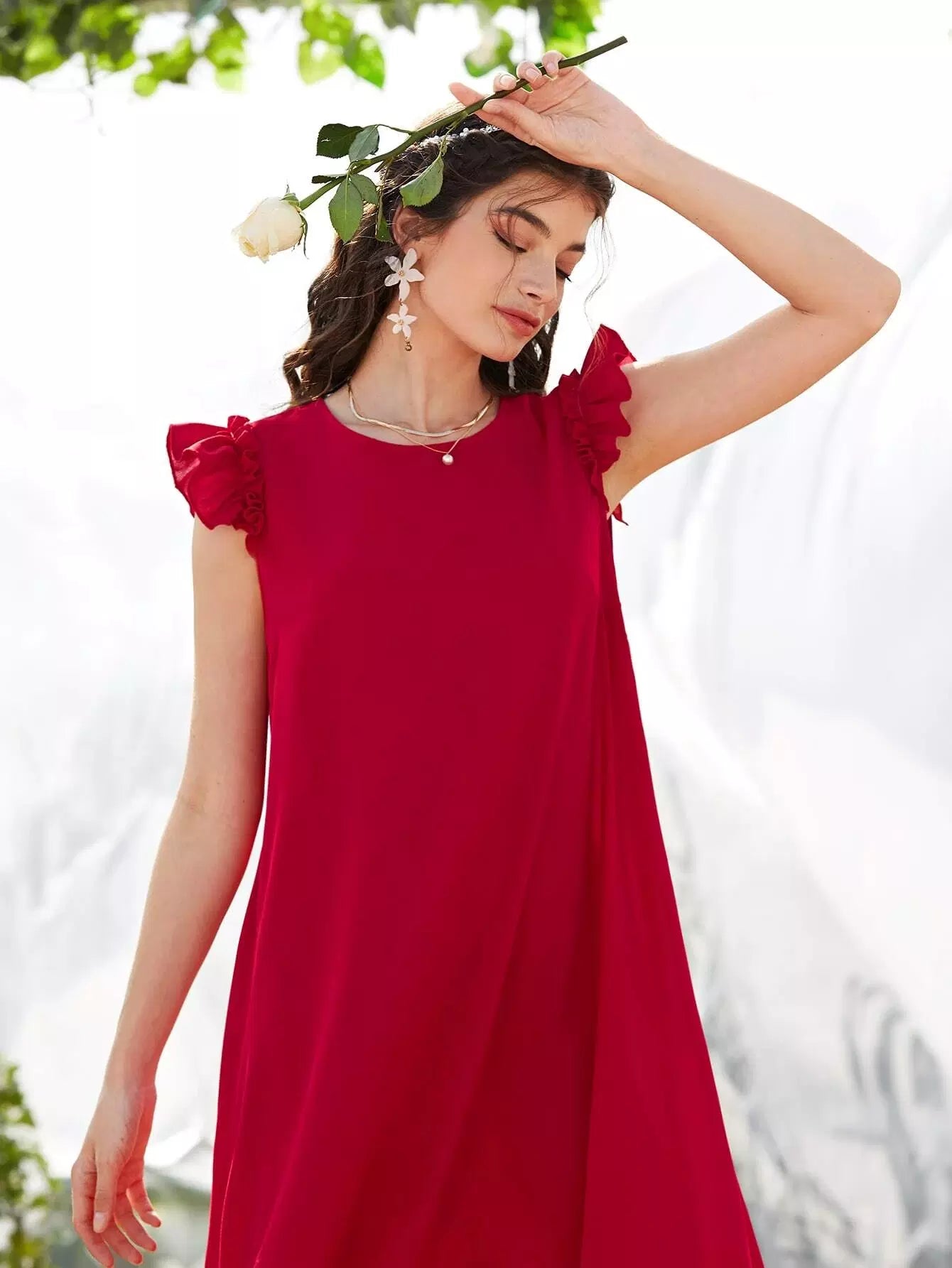 Ruffle Trim Solid Tunic Dress