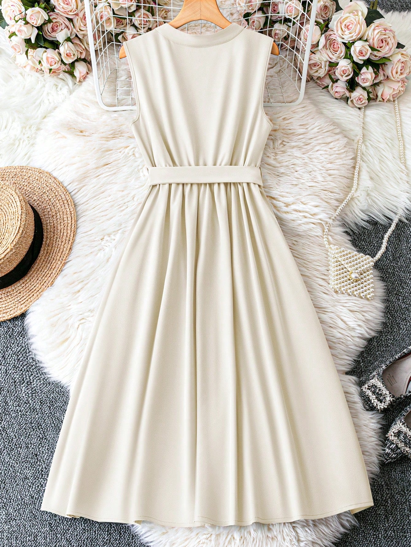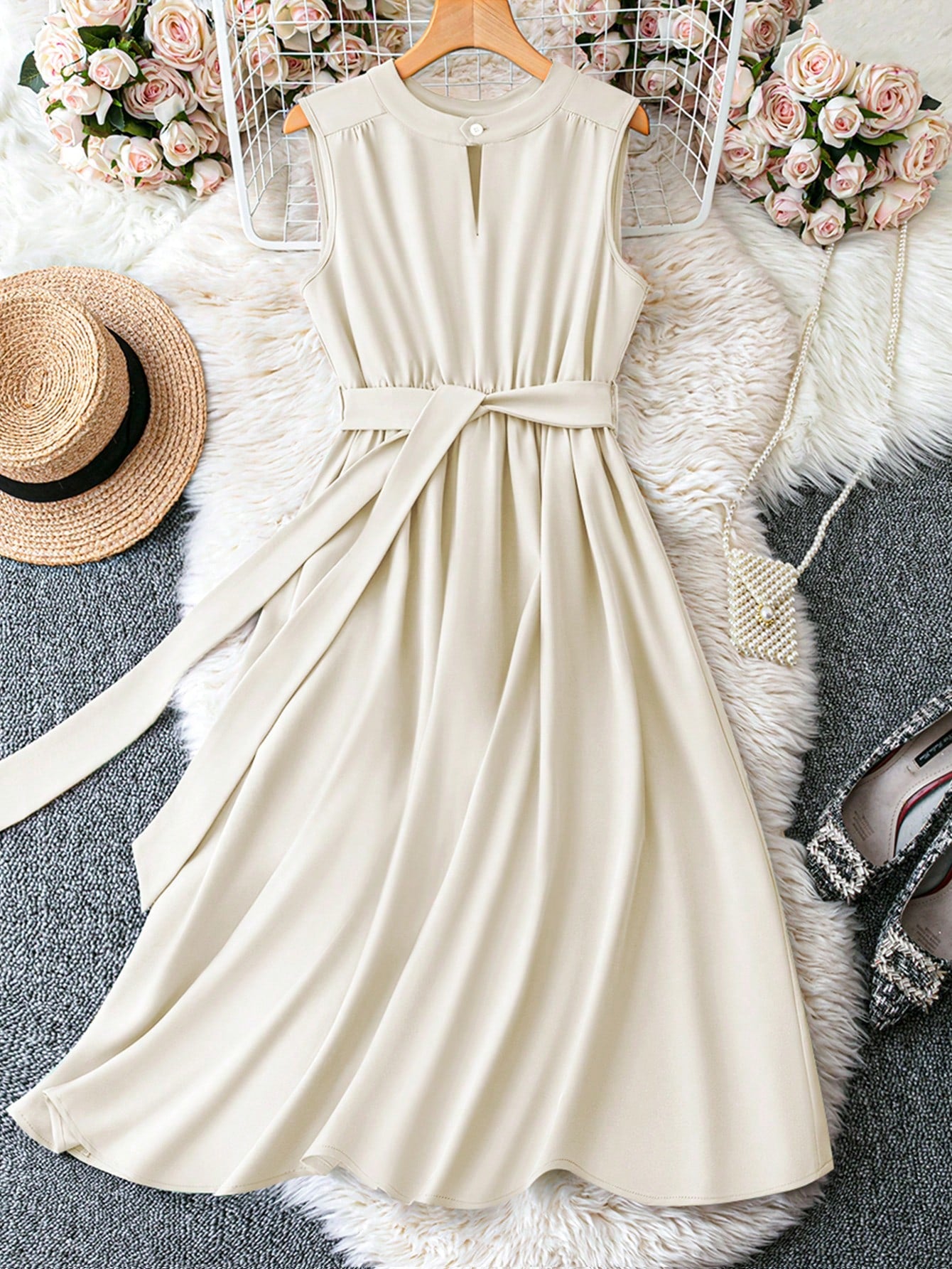 SHEIN Clasi Women's Plain Keyhole Neck Sleeveless Casual Work Dress