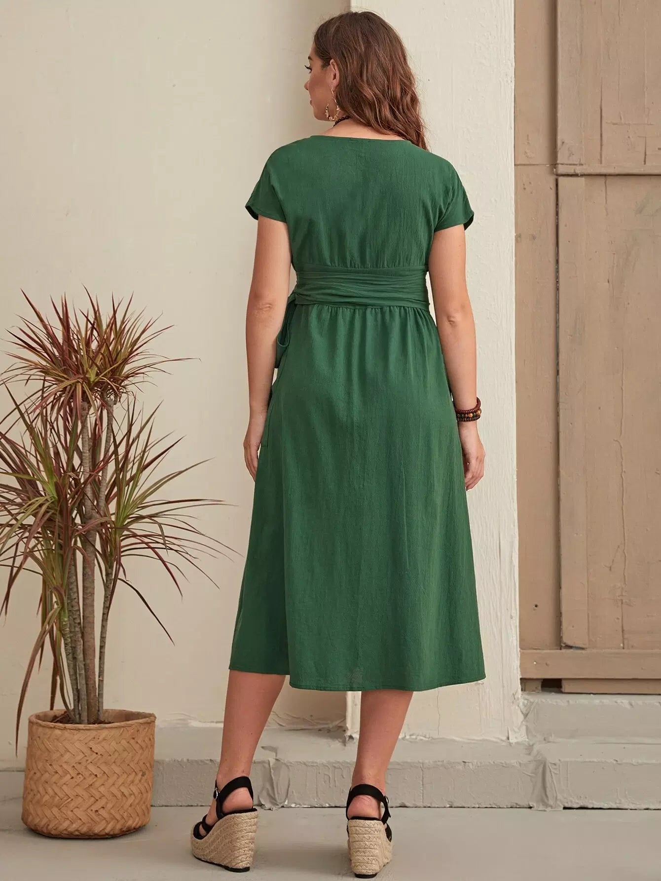 Solid Double Pocket Dress Without Belt