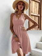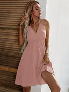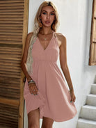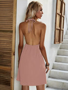 Solid Knot Open Back Halter Dress