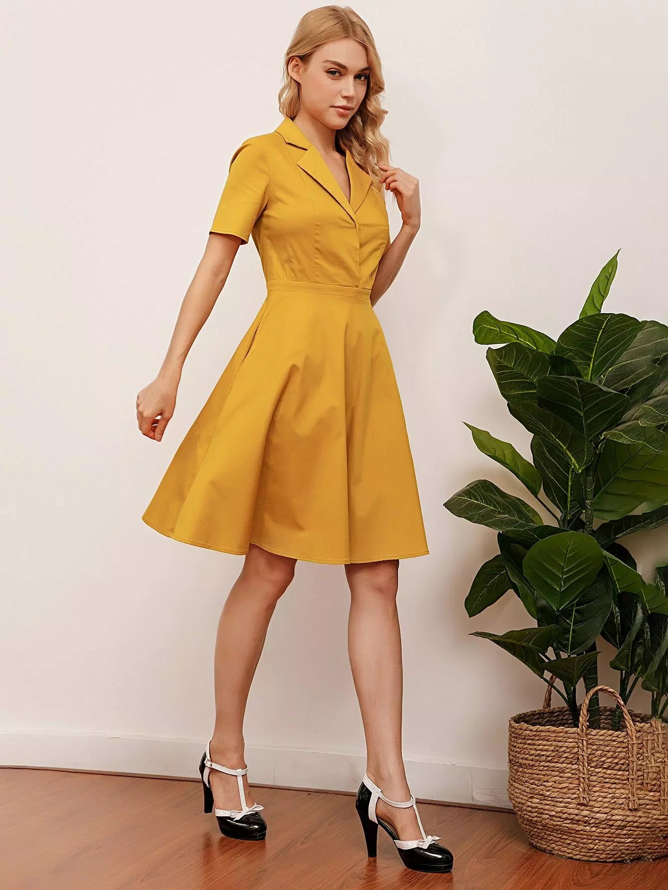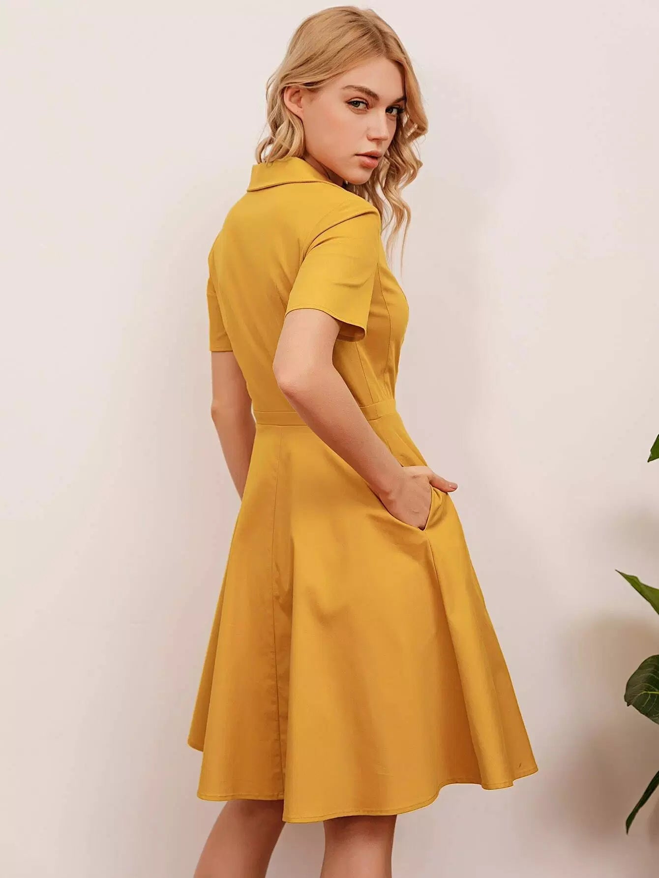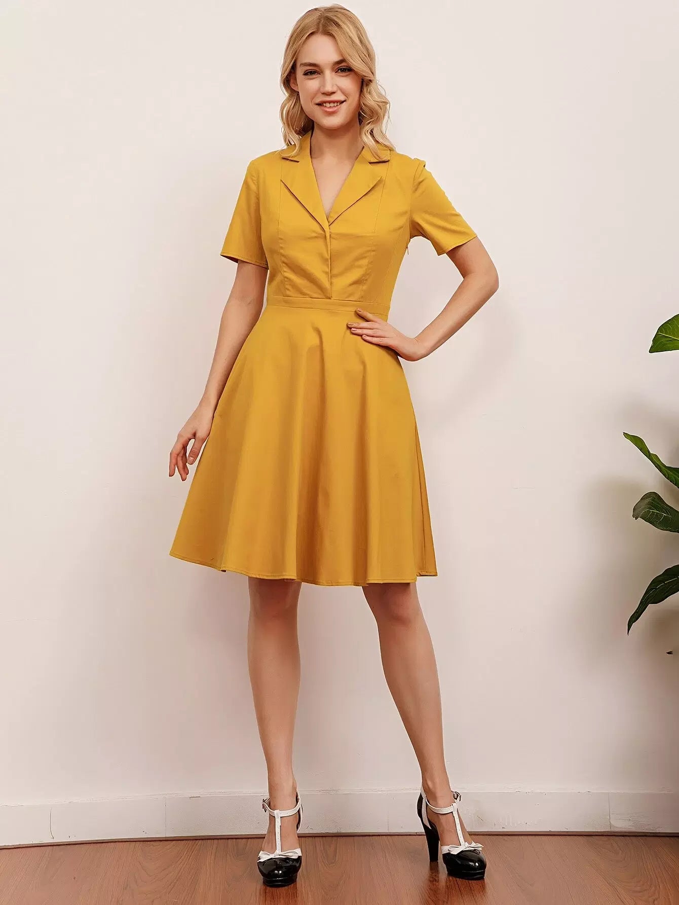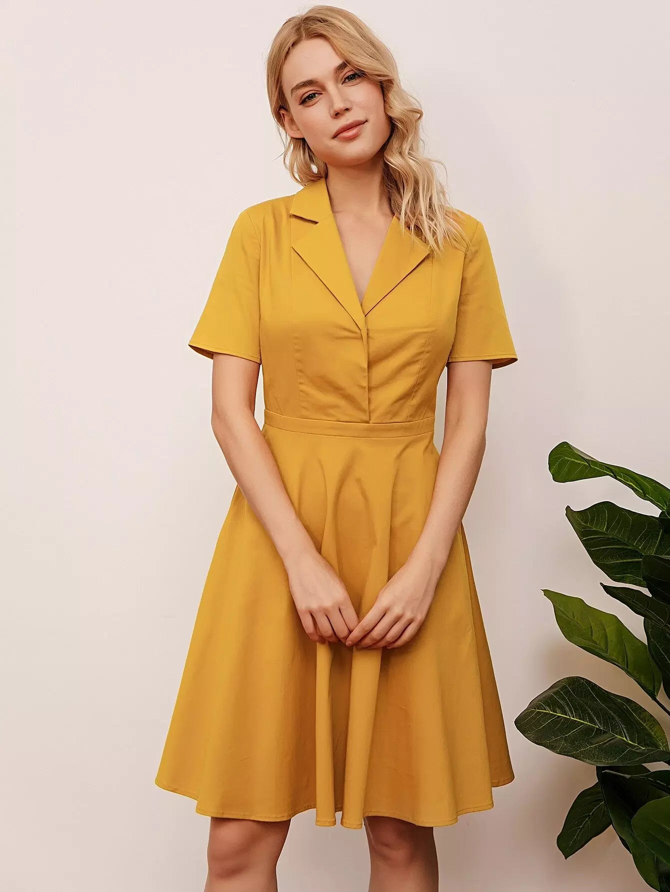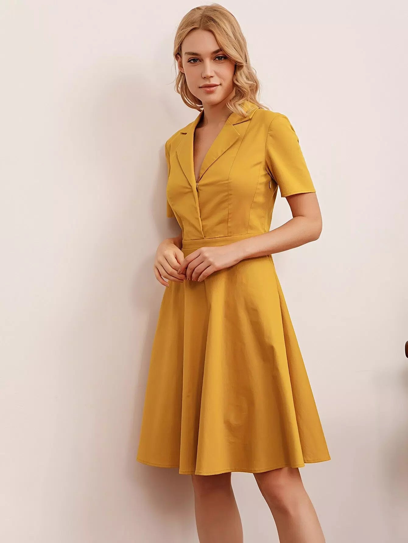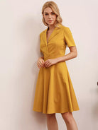 Women - Solid Lapel Collar Dress
