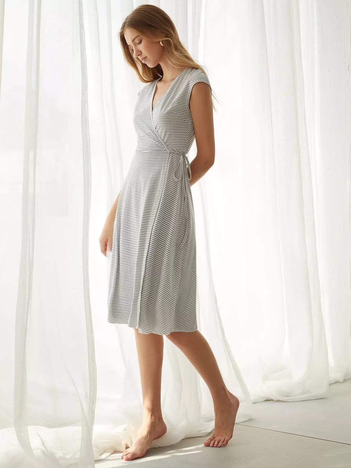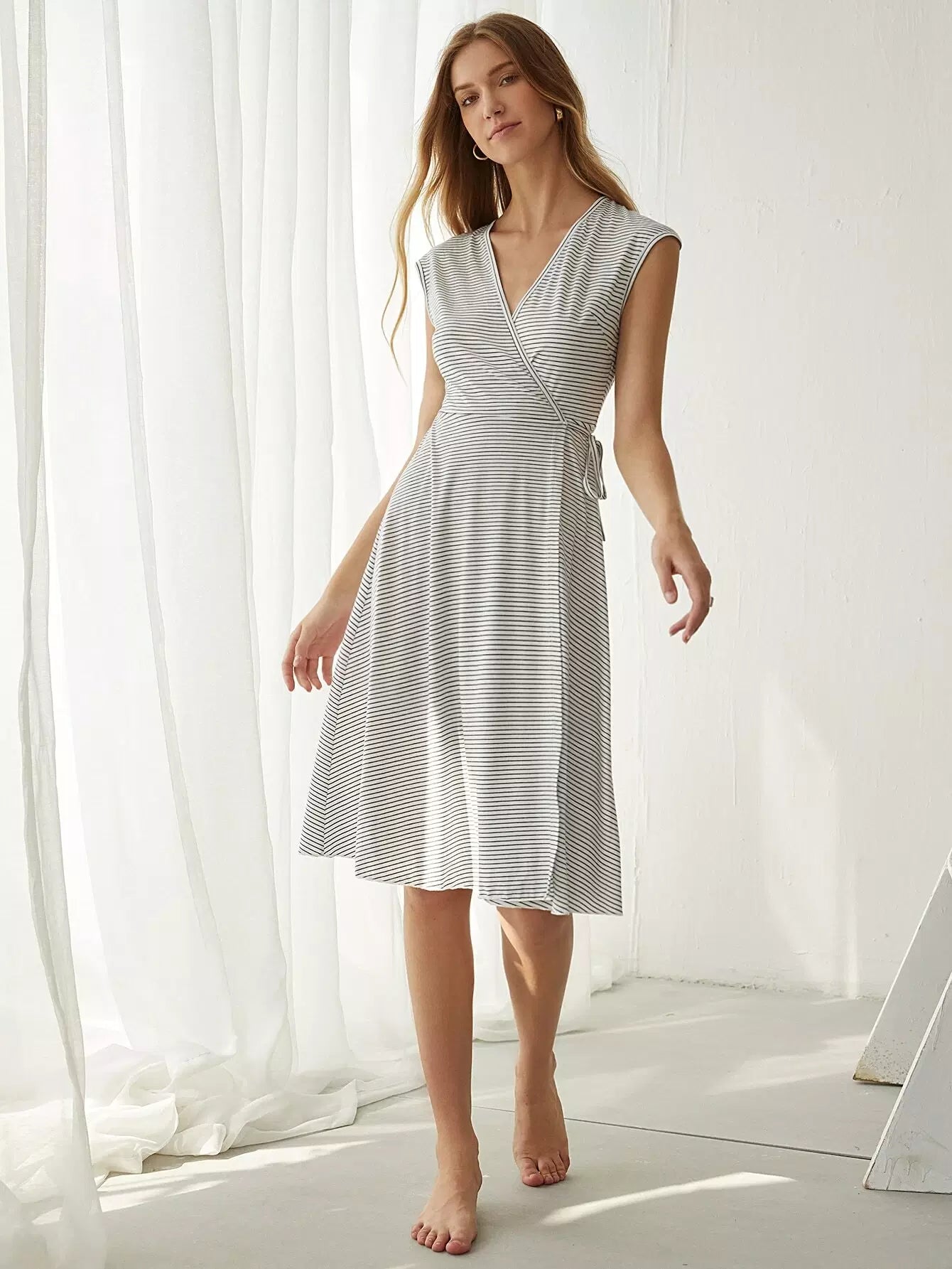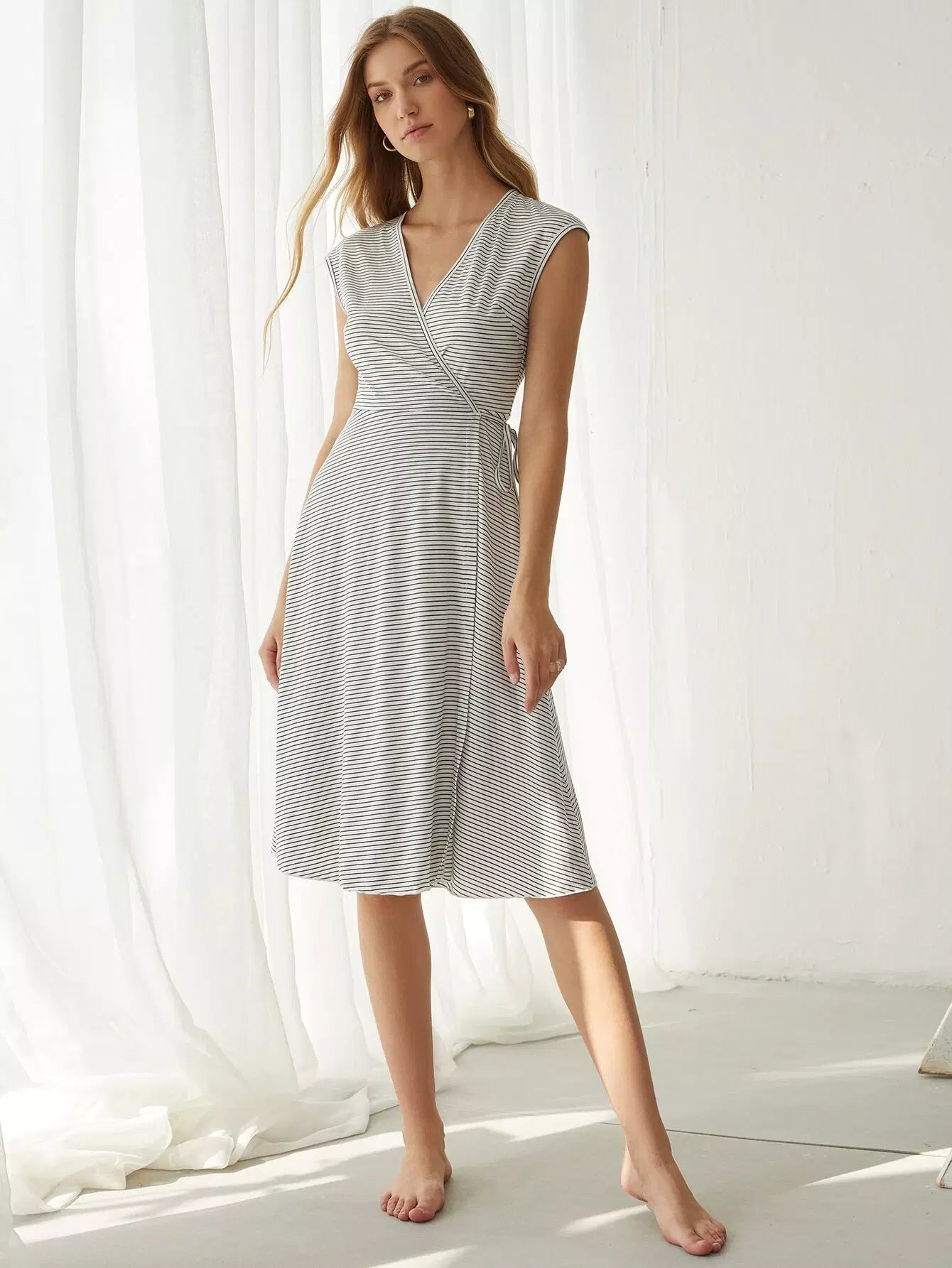 Striped Knot Side Wrap Dress