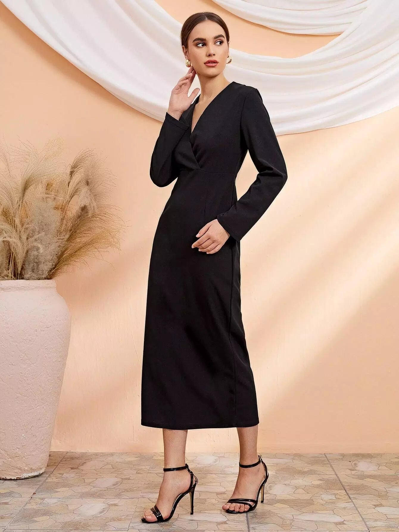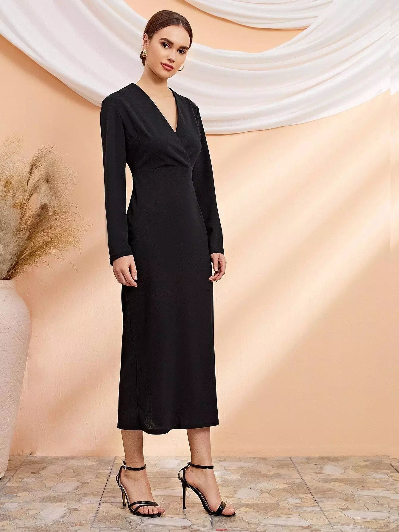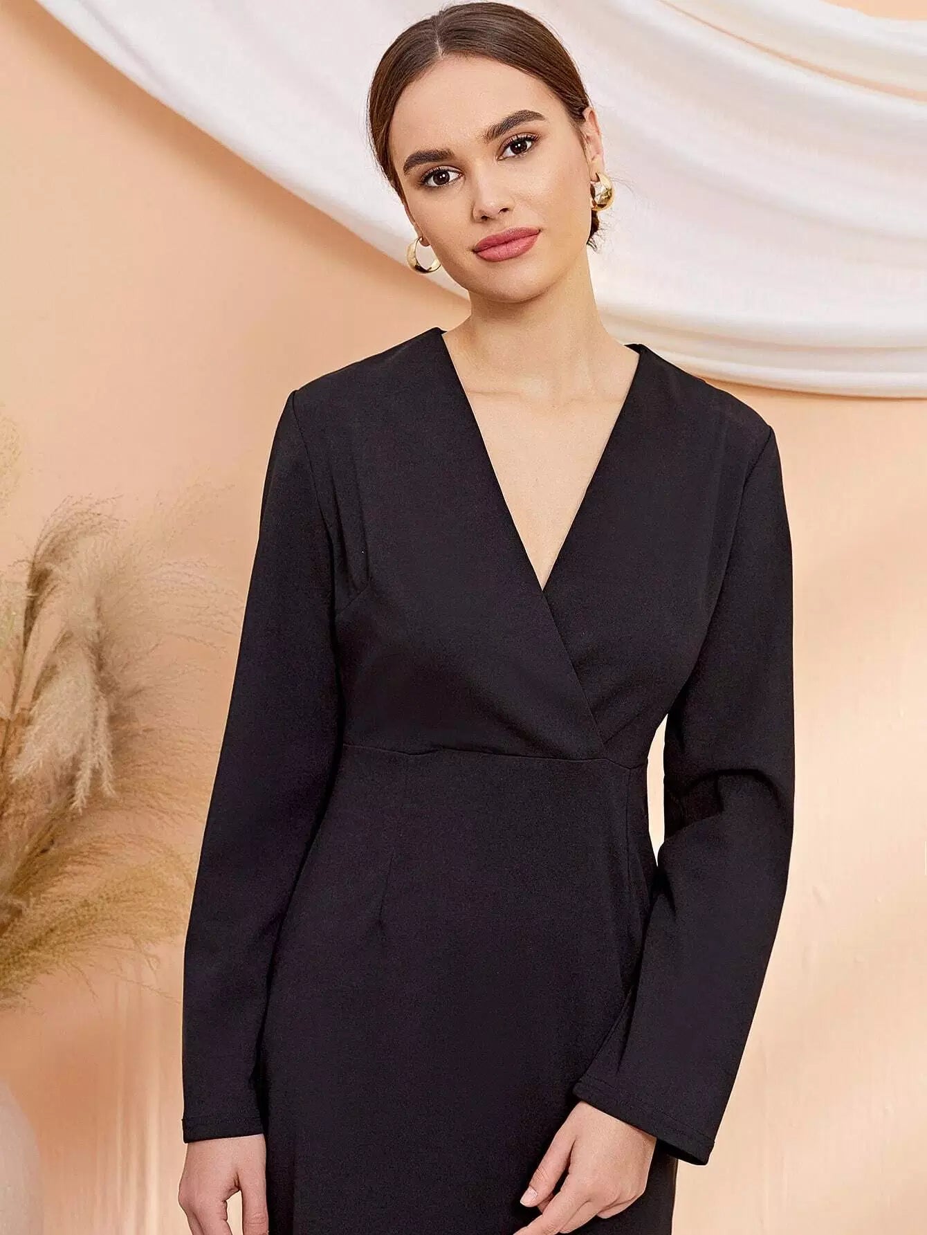 Surplice Front Solid Dress