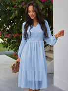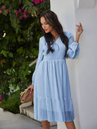 Swiss Dot Shirred Waist Ruffle Hem Dress