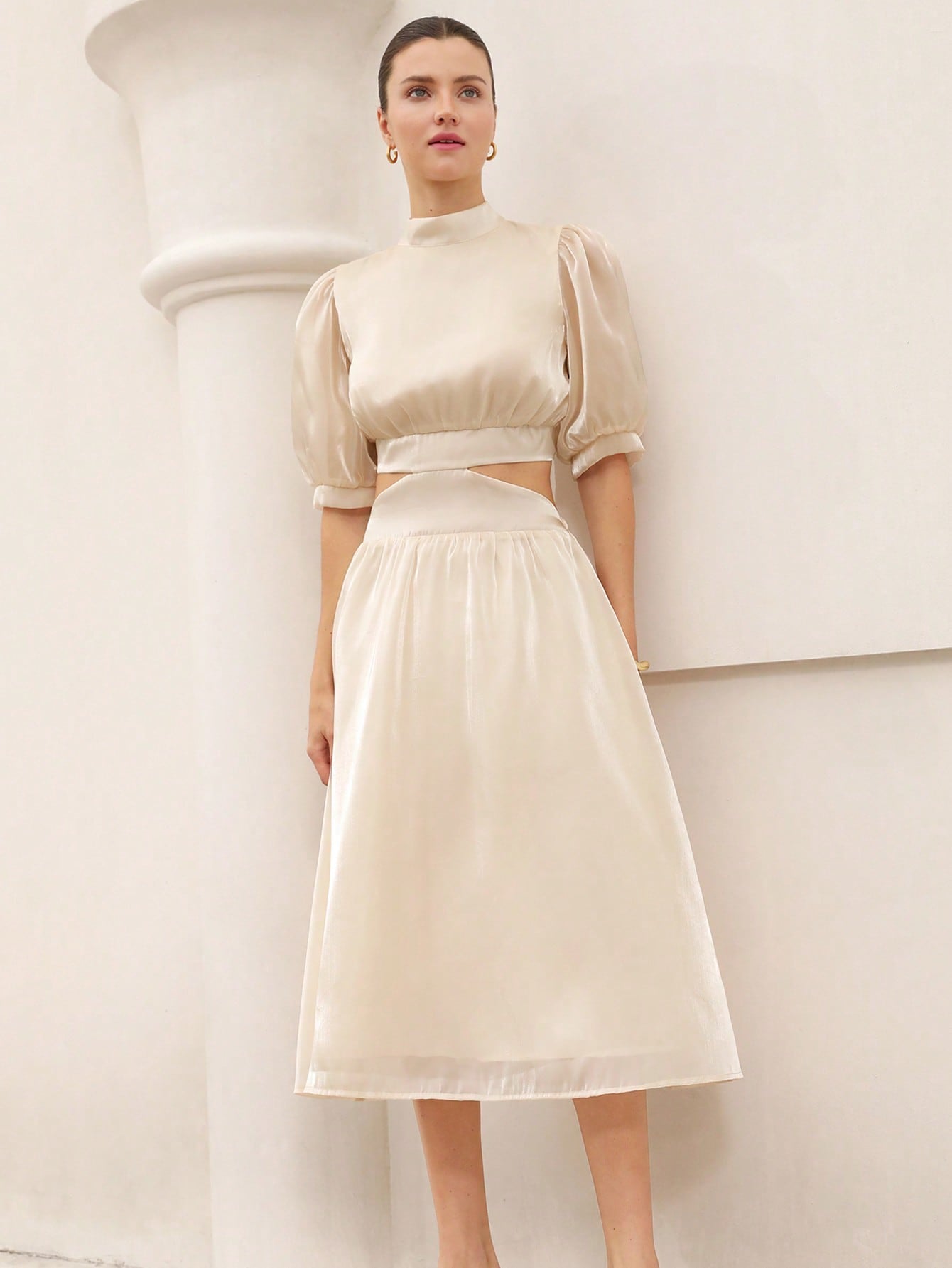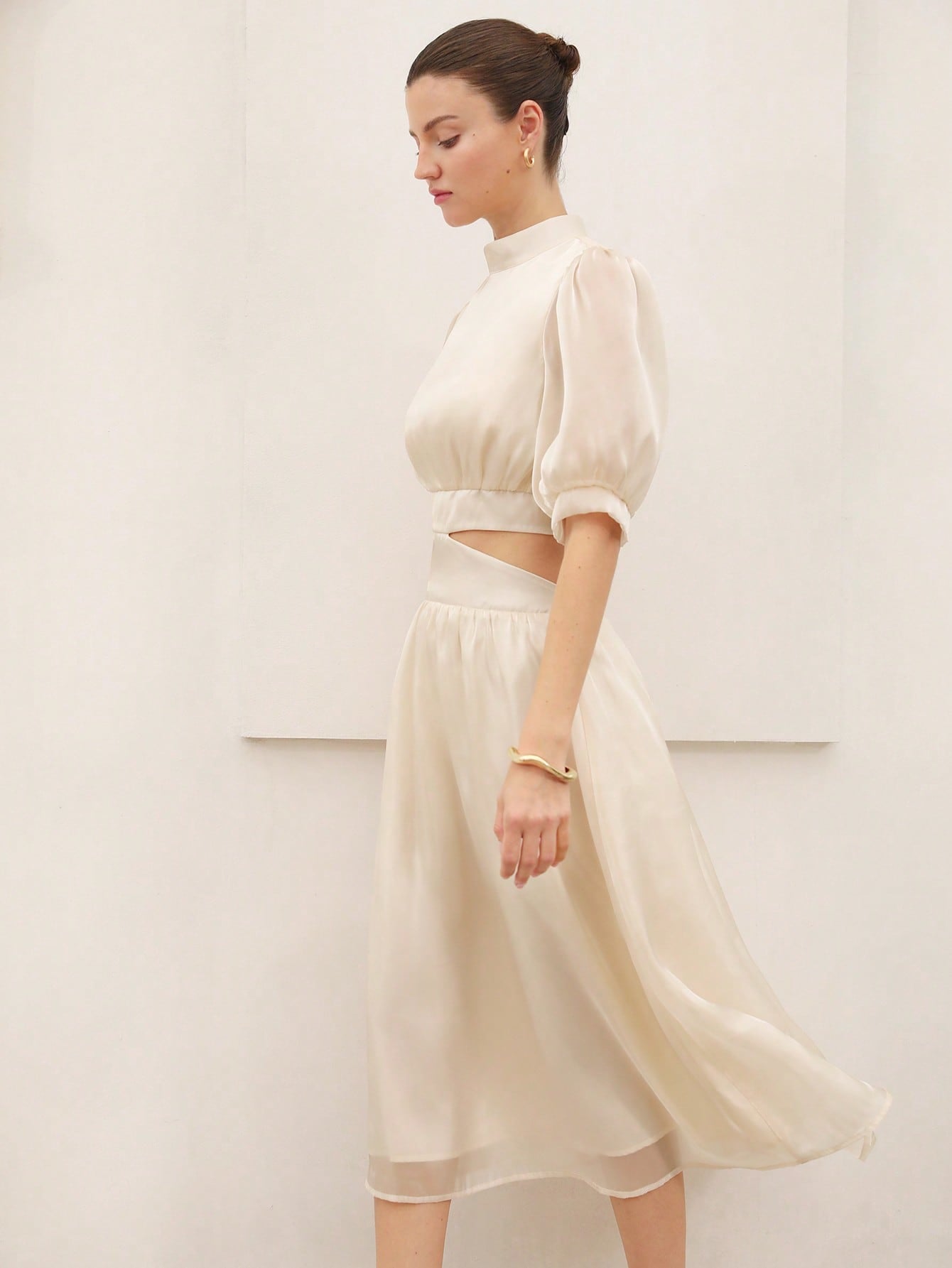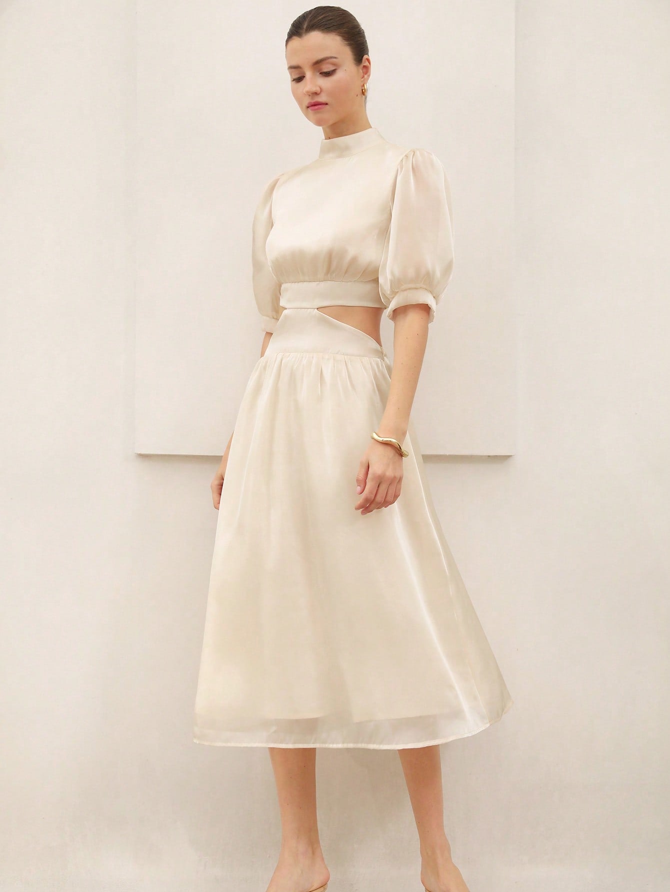 Aveloria Rosie Elegant Romantic French Noble Luxurious Satin Fabric Stand Collar Waist Hollow Out Design