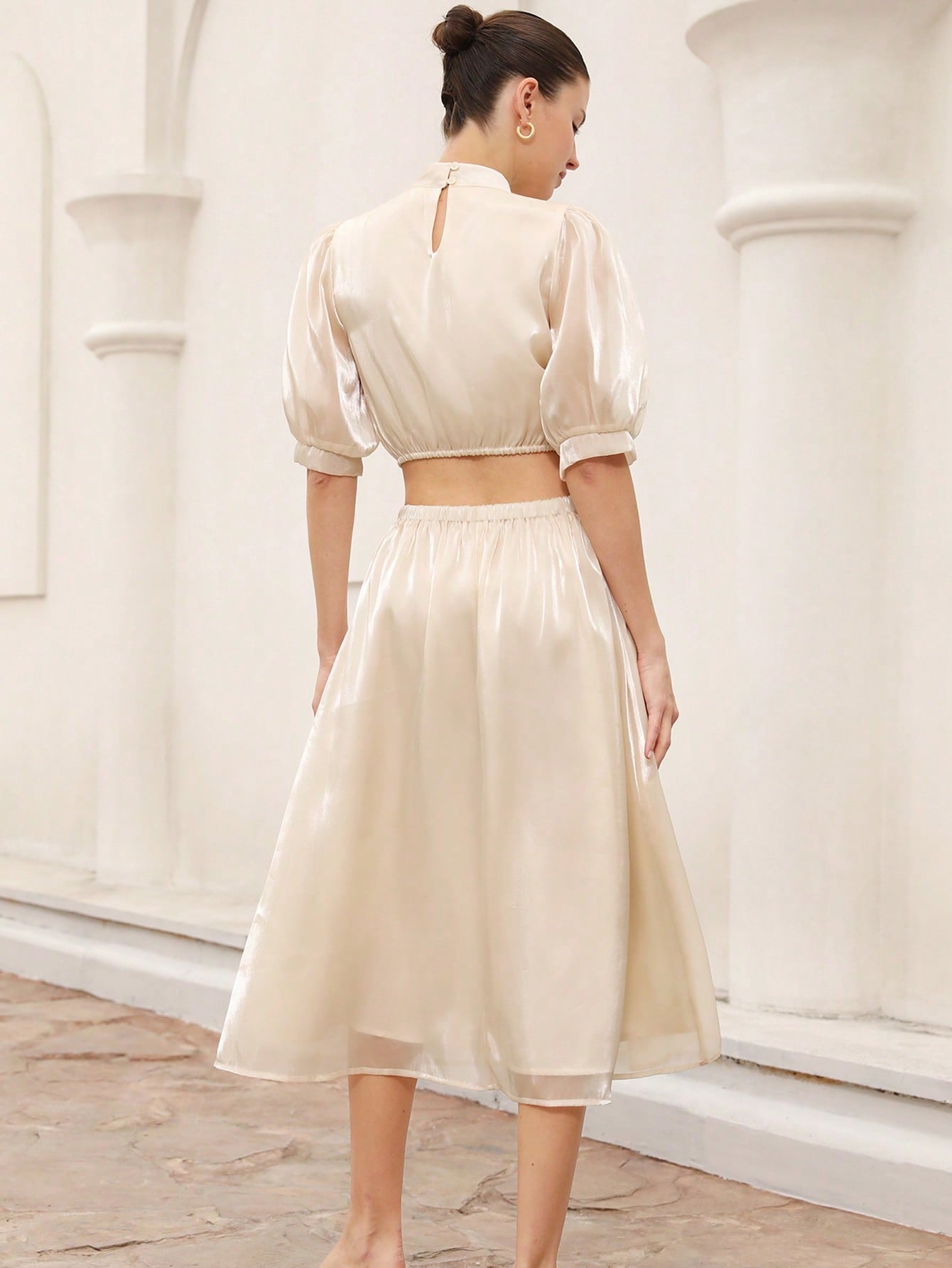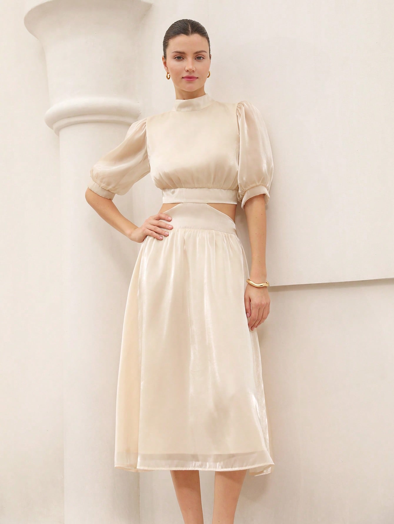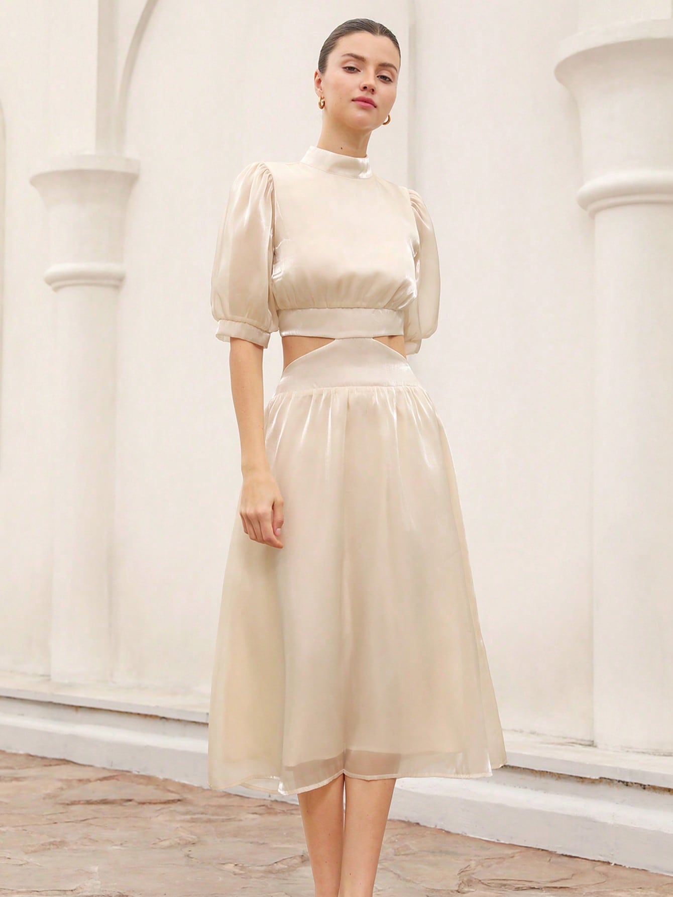 Aveloria Rosie Elegant Romantic French Noble Luxurious Satin Fabric Stand Collar Waist Hollow Out Design