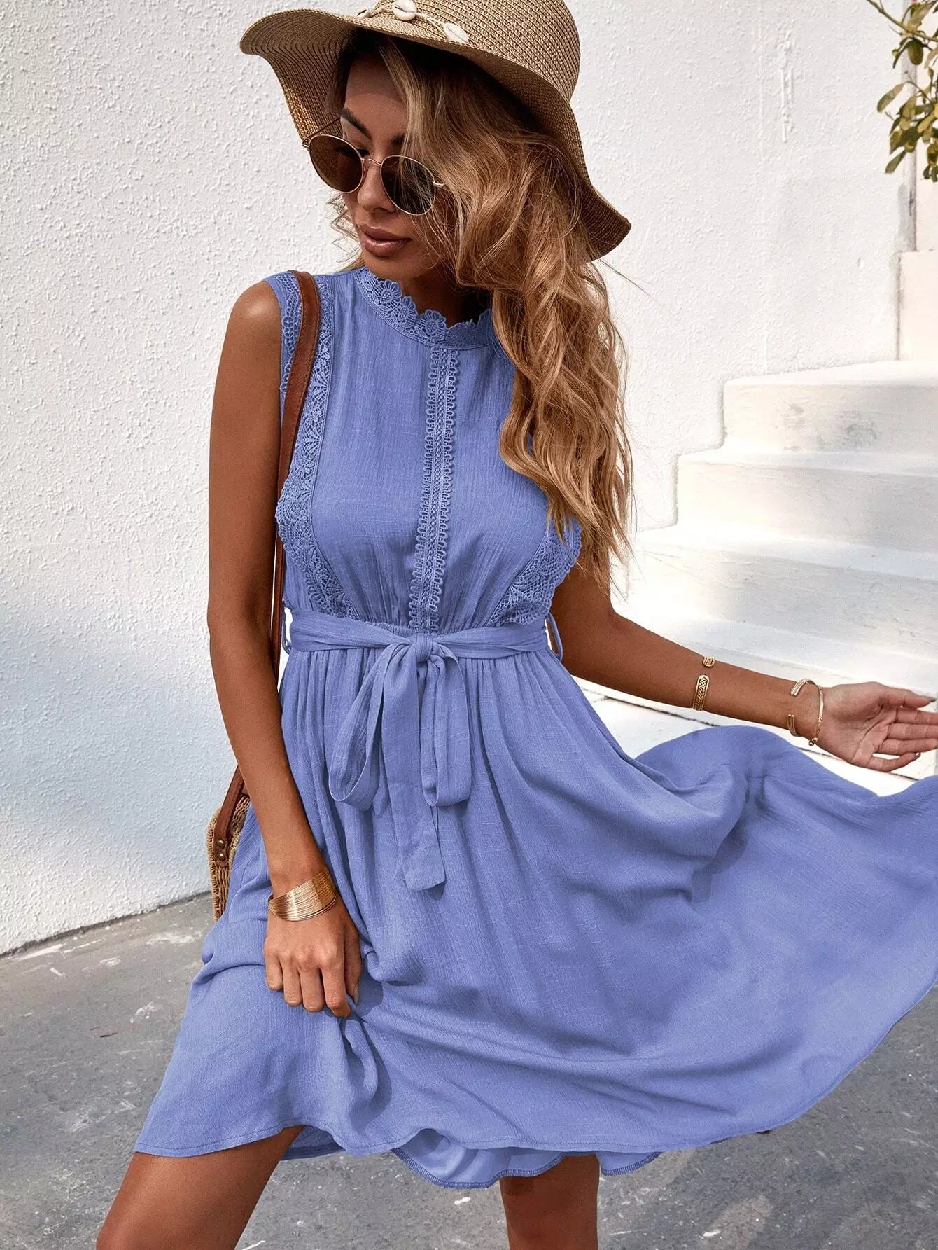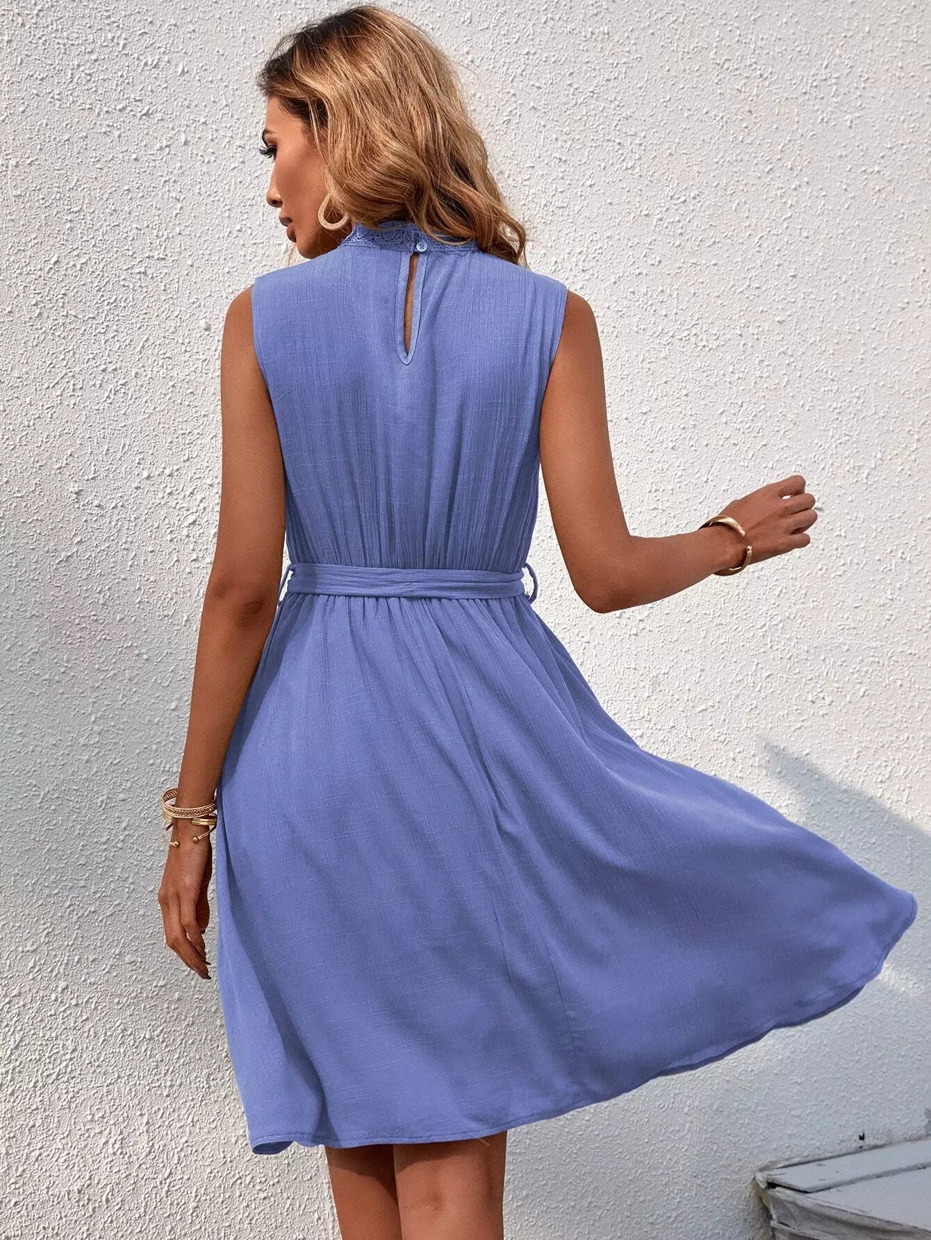Contrast Lace A-line Dress Without Belt