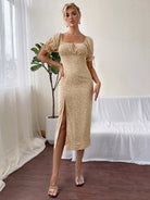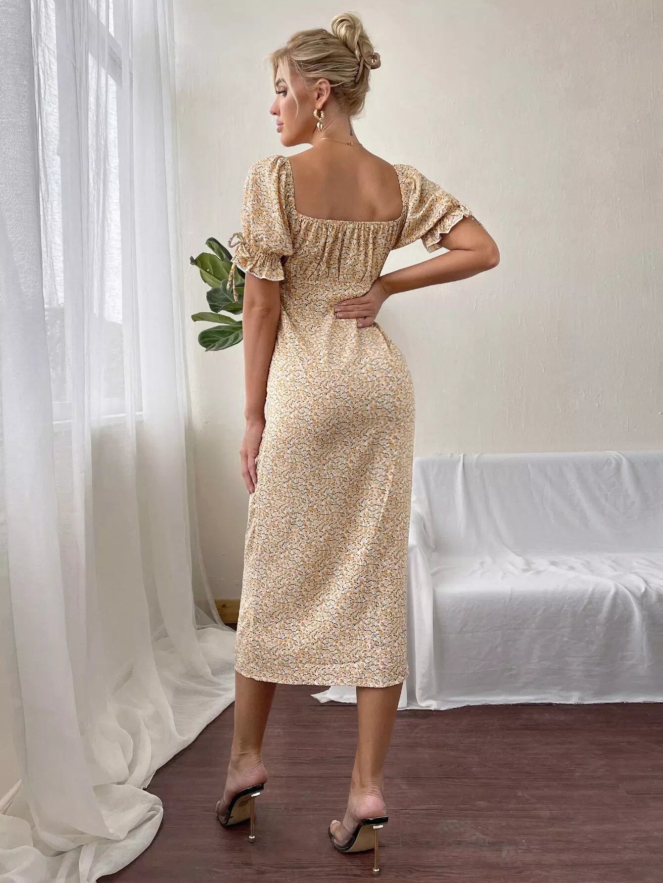 Ditsy Floral Puff Sleeve Split Thigh Dress