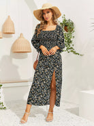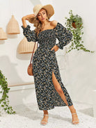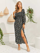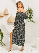 Ditsy Floral Shirred Split Thigh Bardot Dress