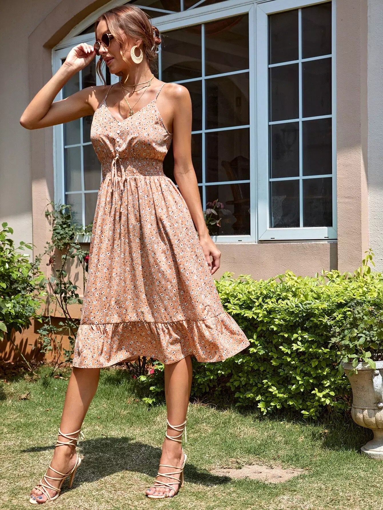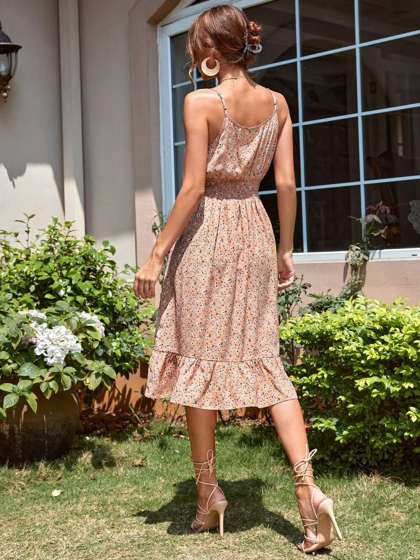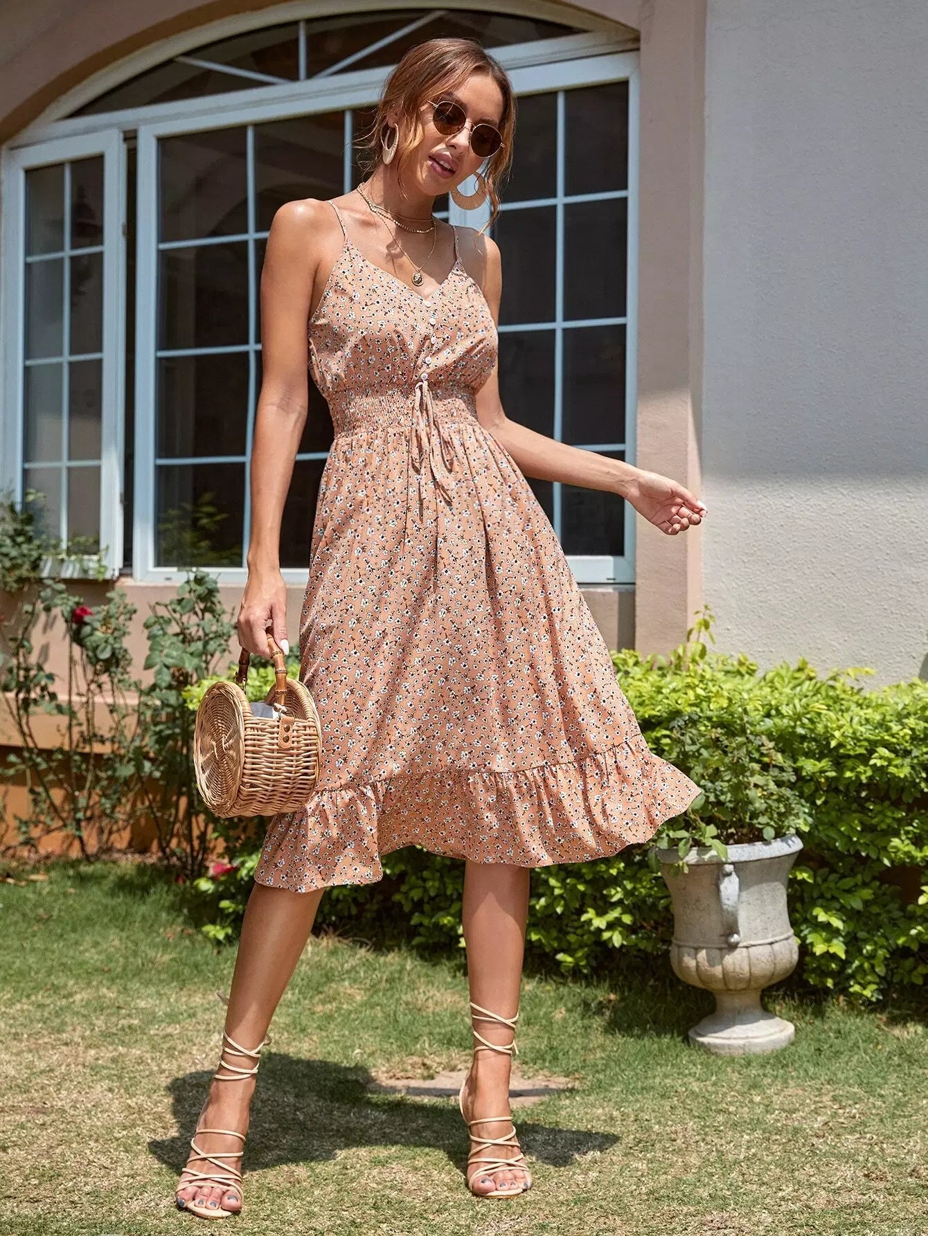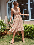 Ditsy Floral Shirred Waist Ruffle Hem Cami Dress