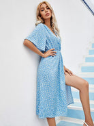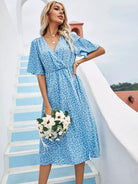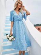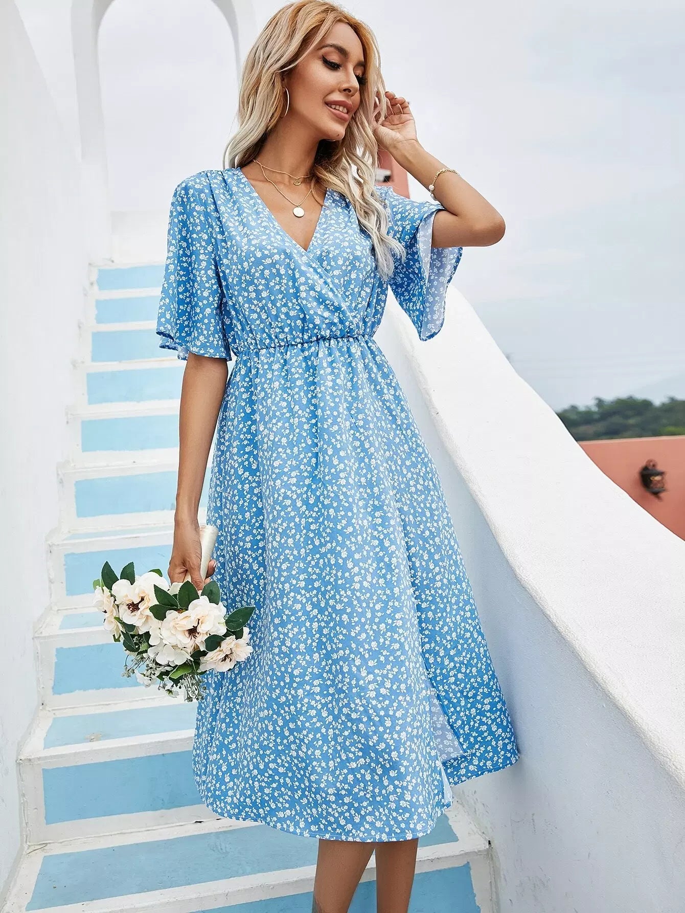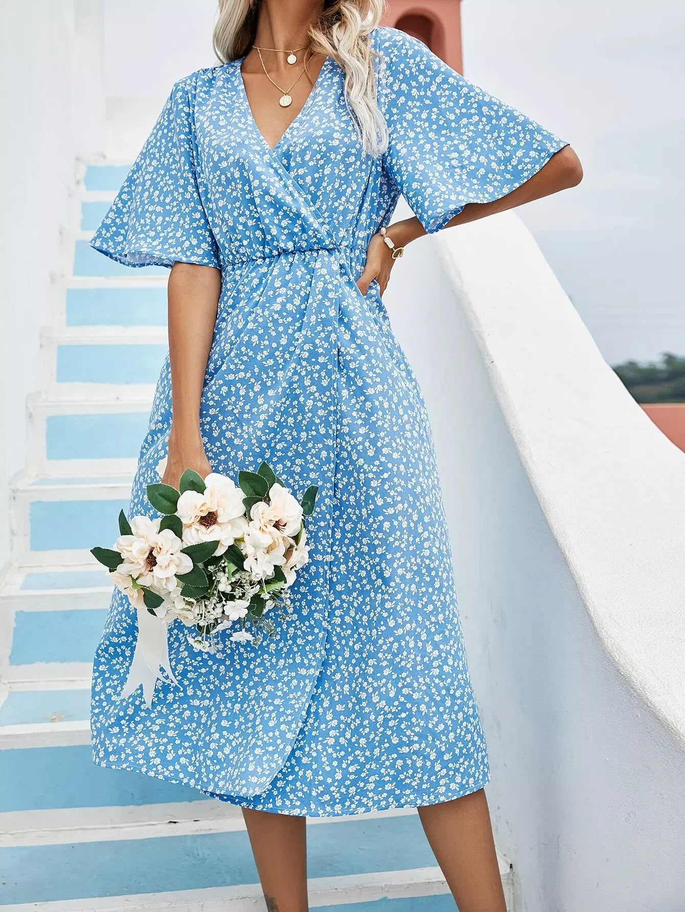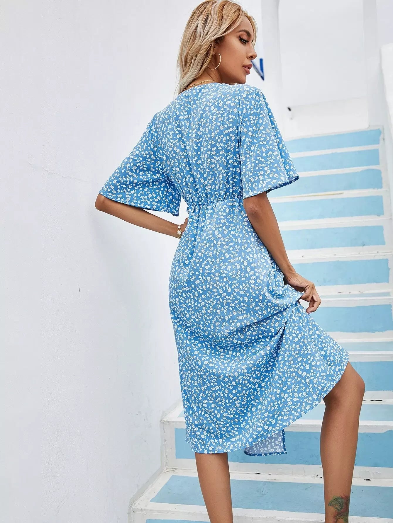 Ditsy Floral Surplice Neck Butterfly Sleeve A-line Dress