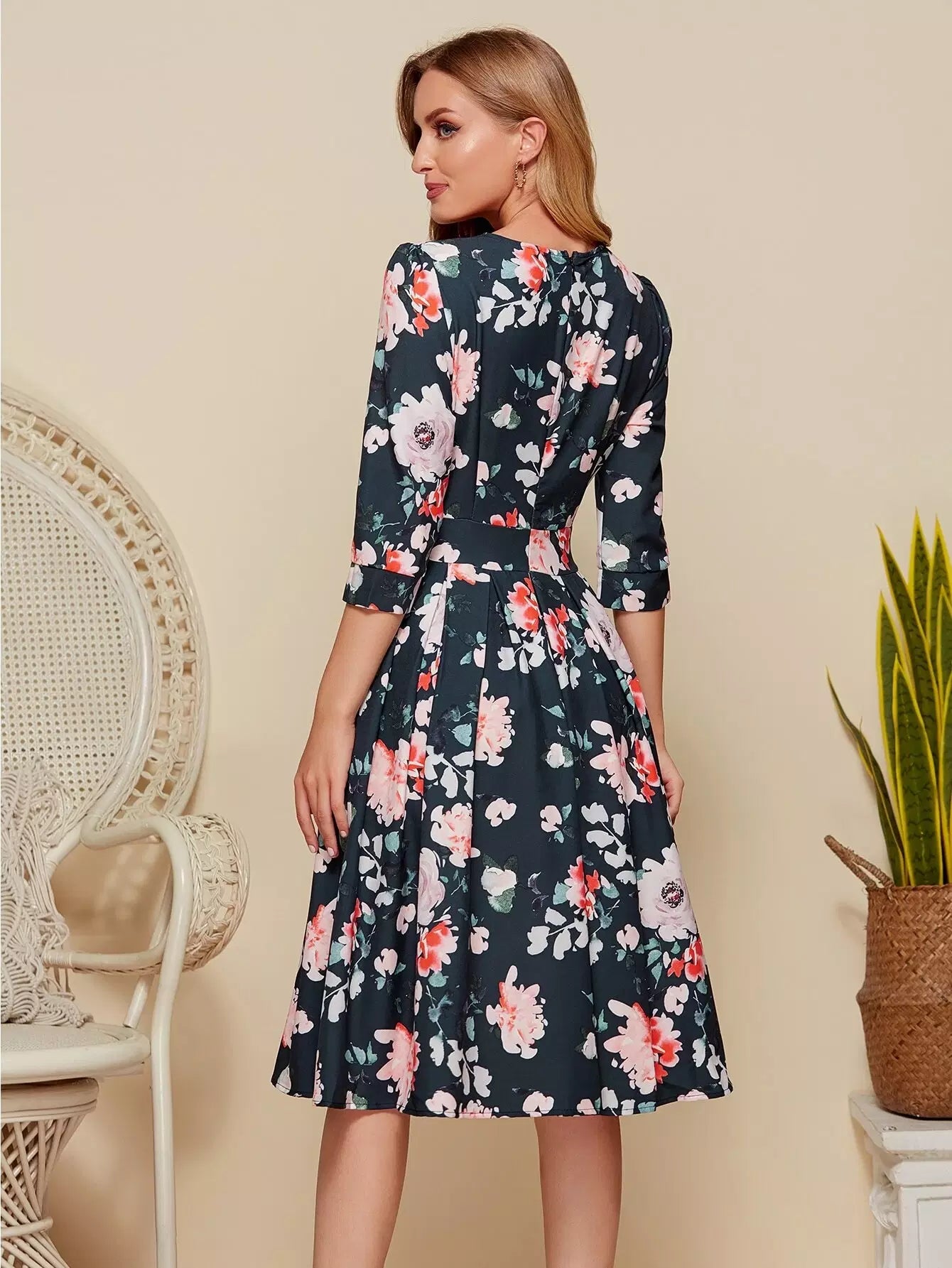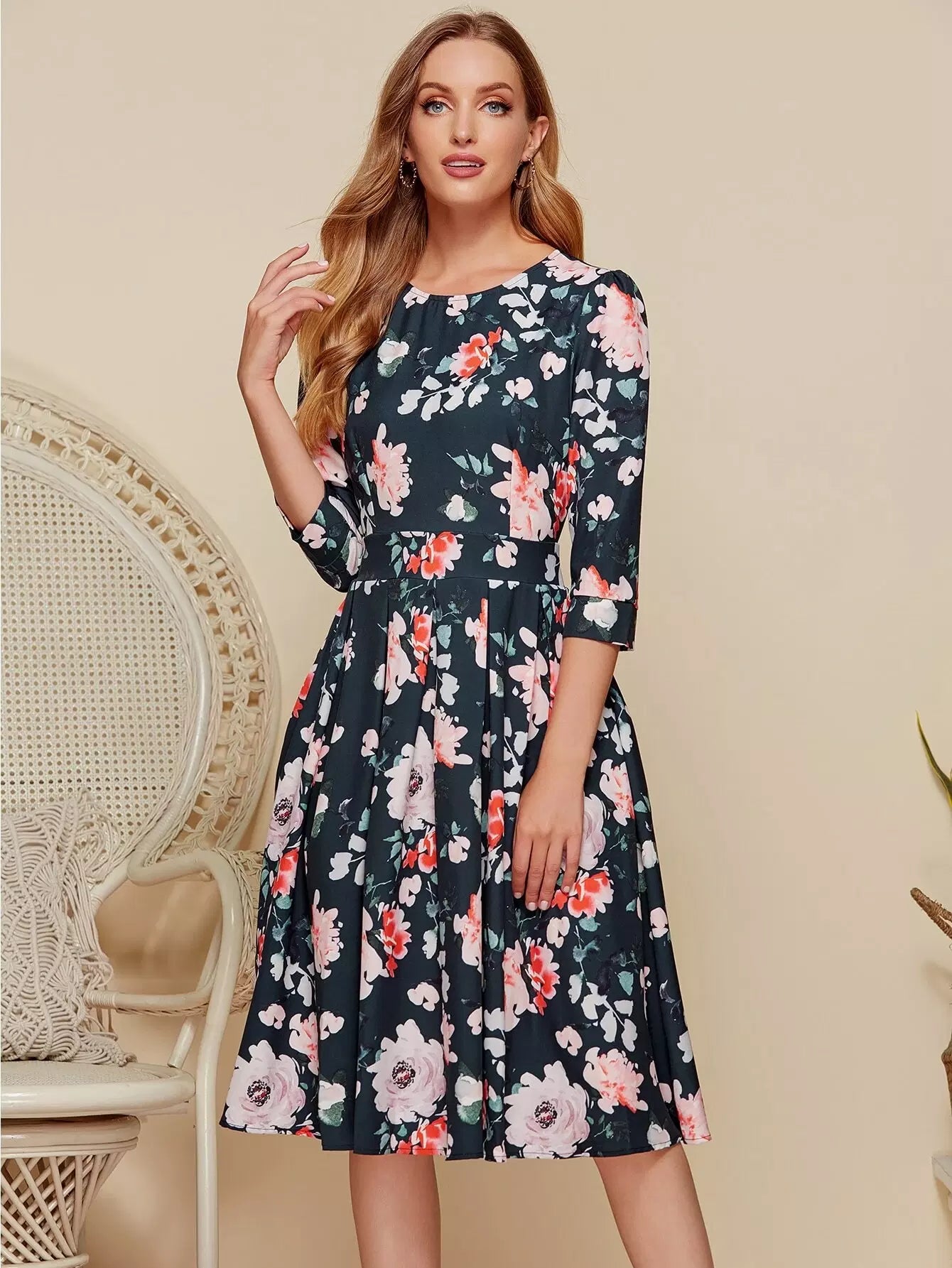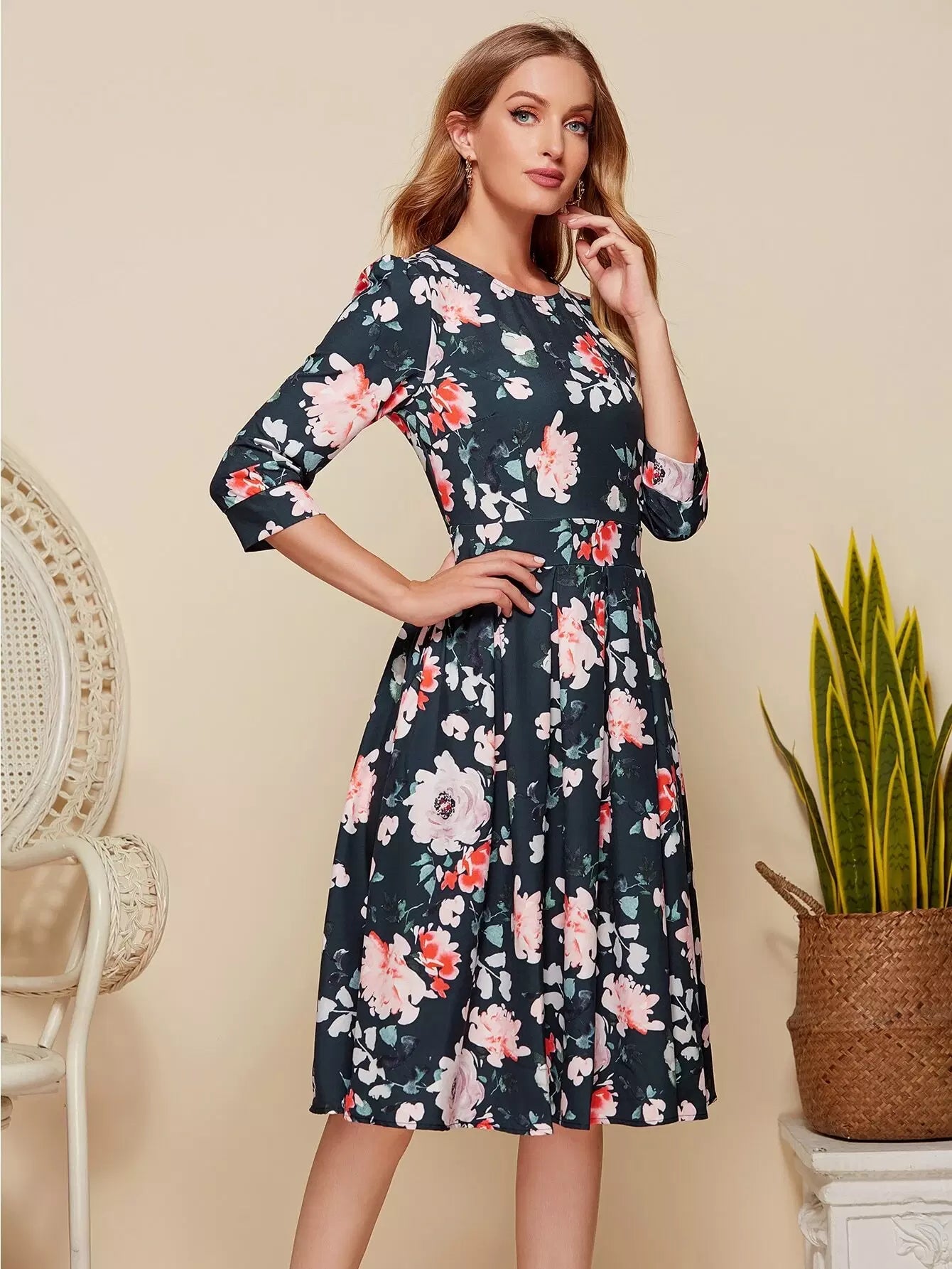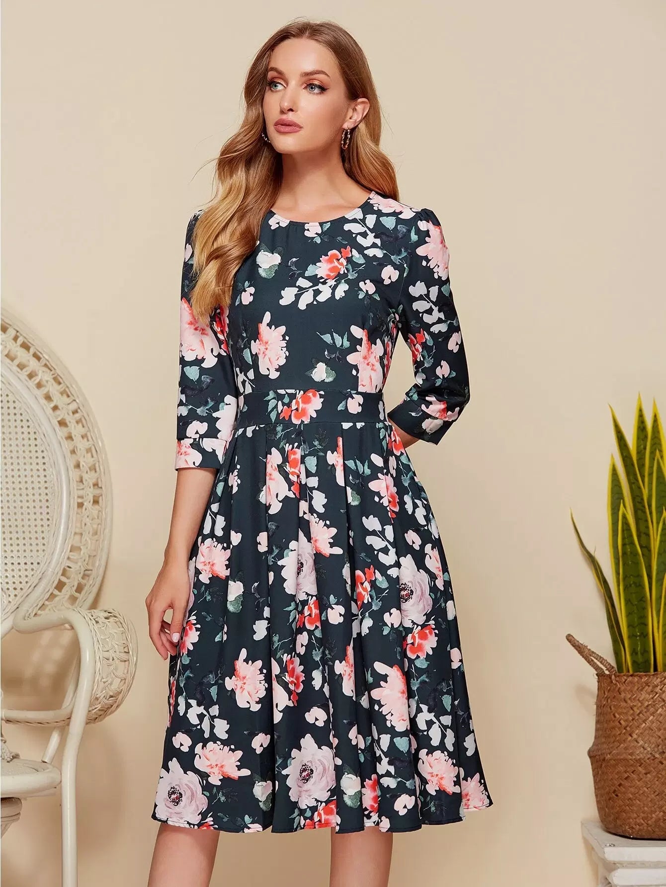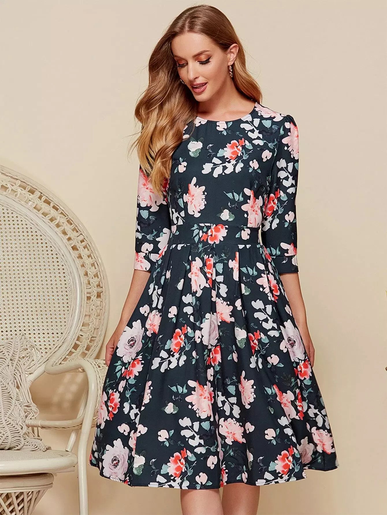 Floral Print Boxy Pleated Dress