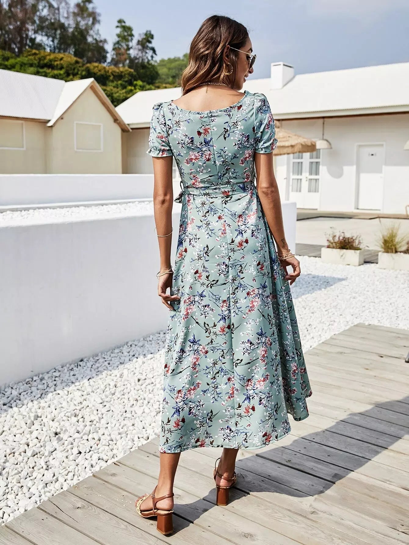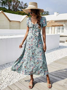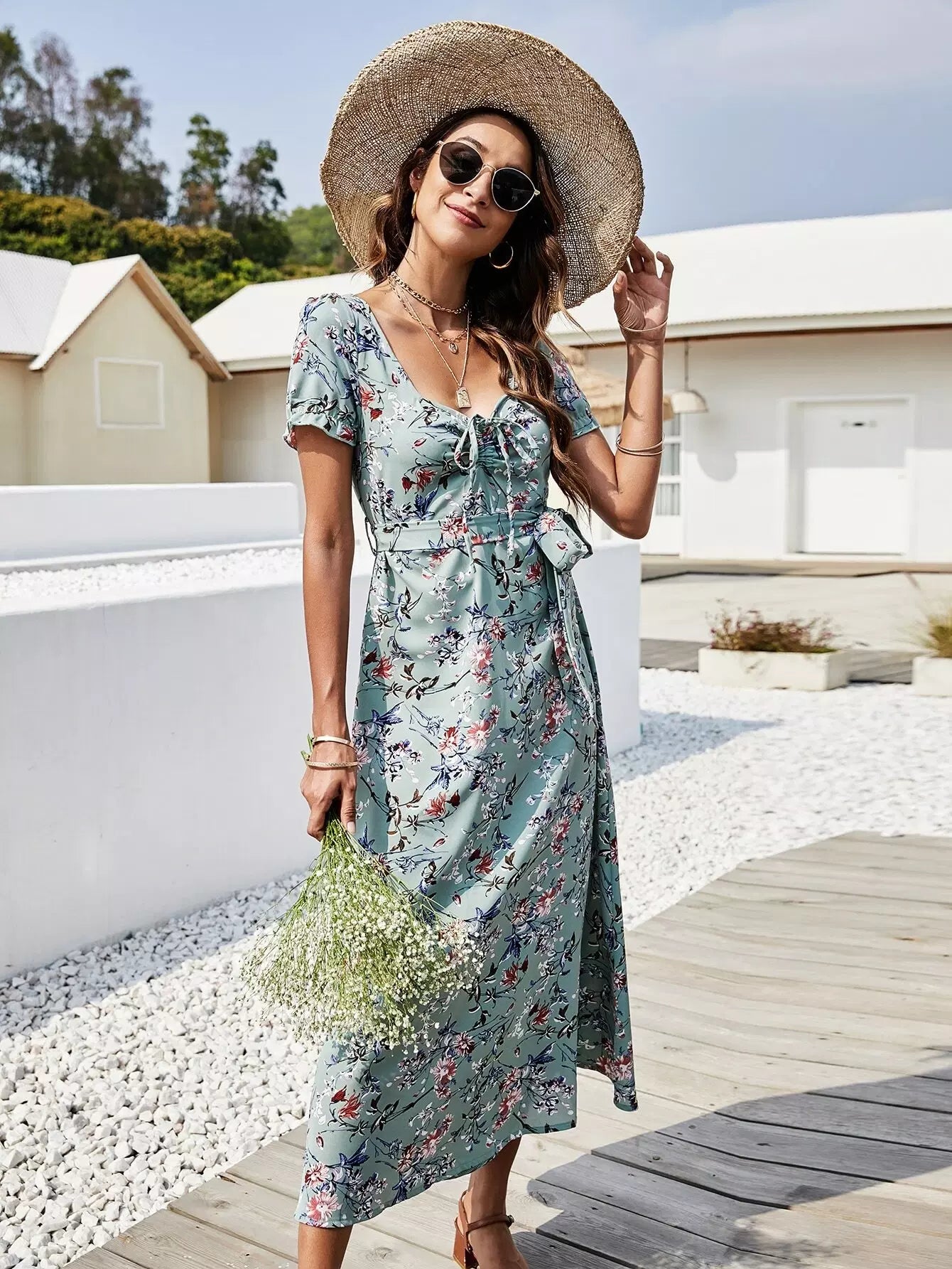 Floral Print Drawstring Front Dress Without Belt