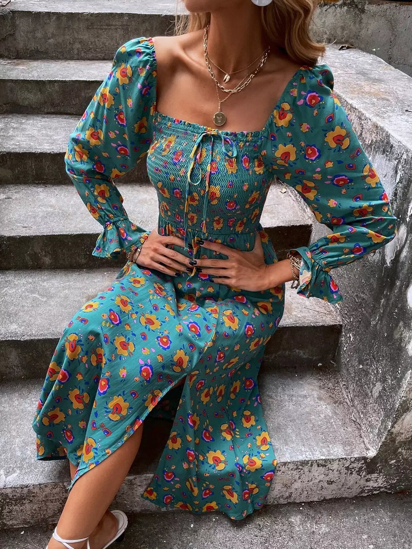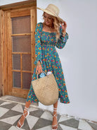 Women - Floral Print Shirred Split A-line Dress