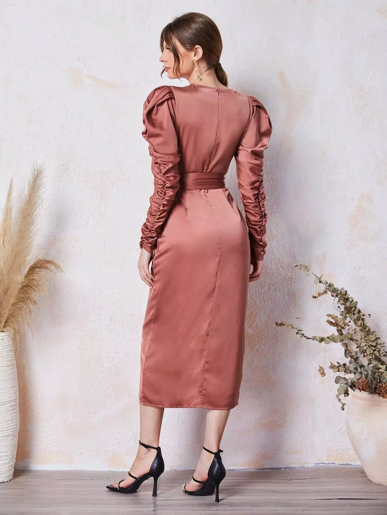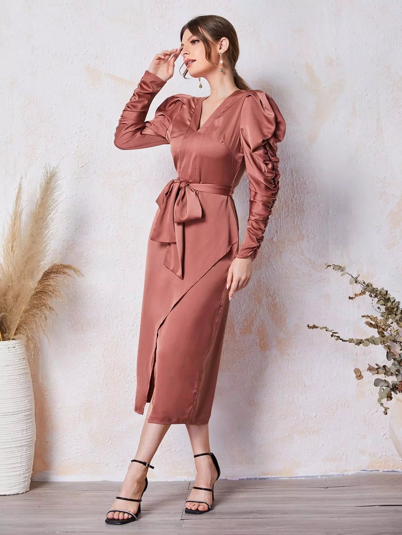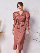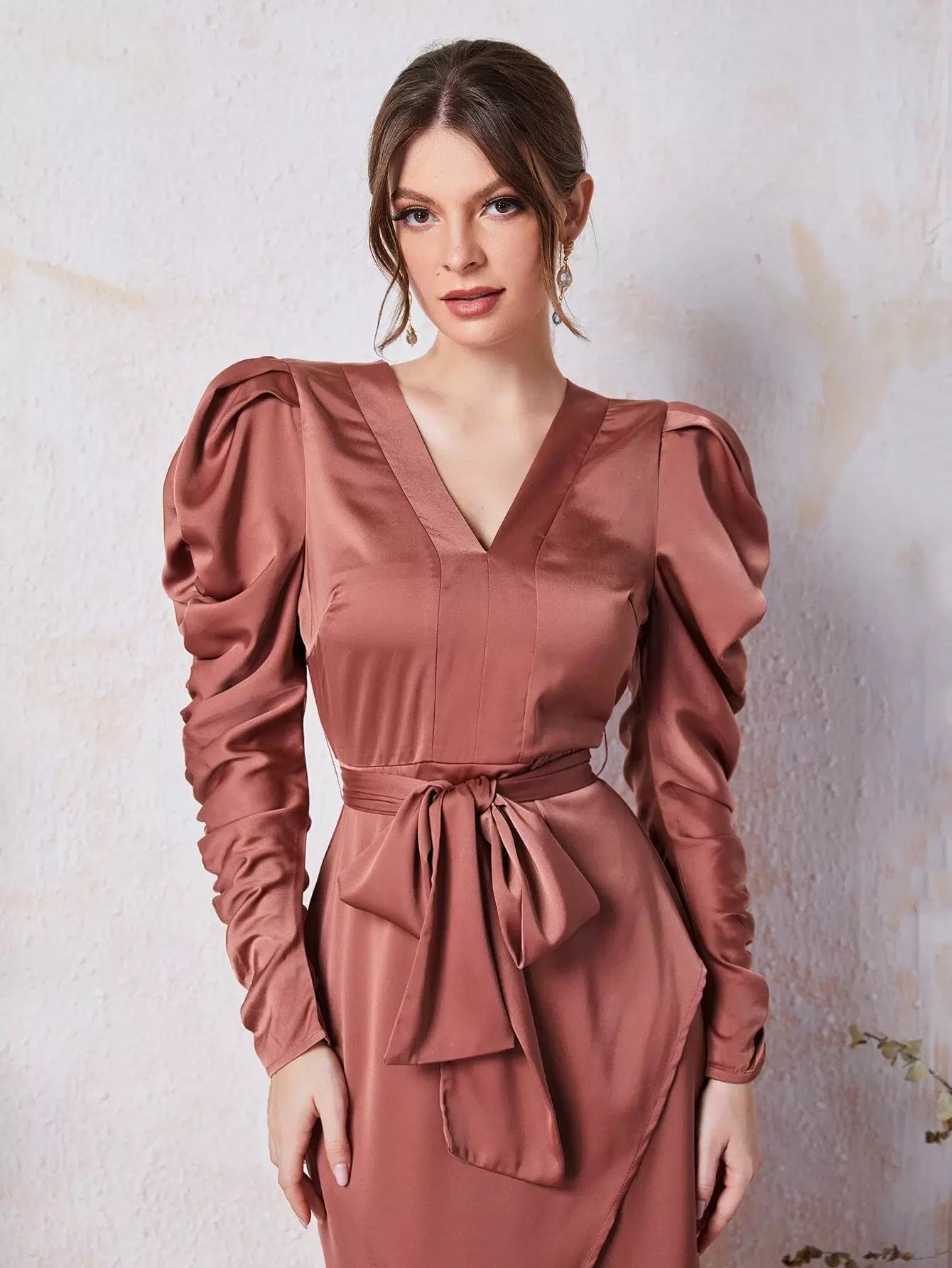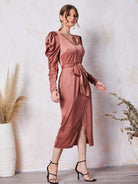 Gigot Sleeve Asymmetrical Hem Dress Without Belt