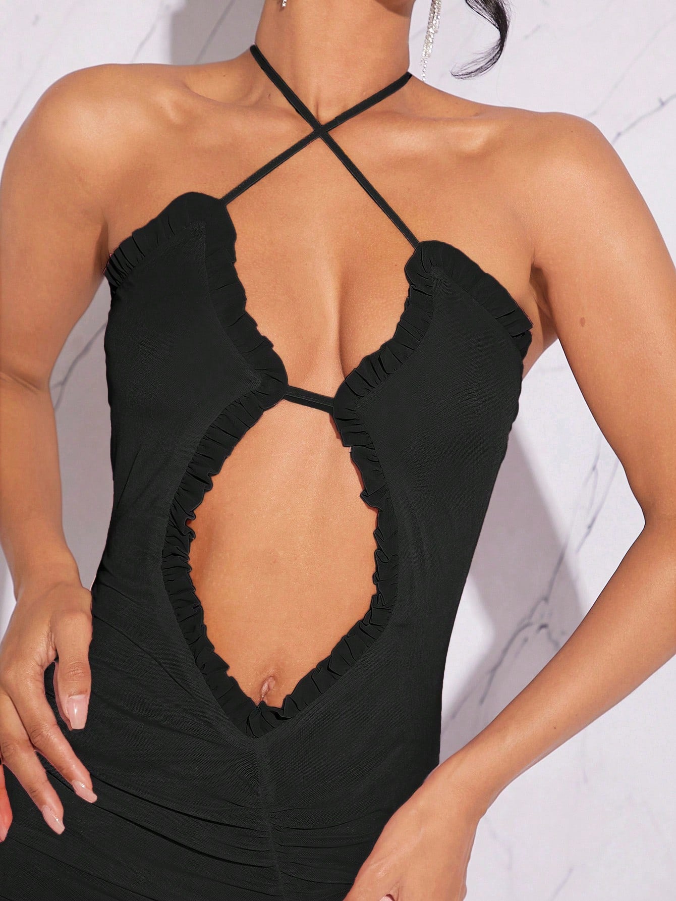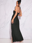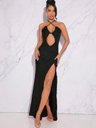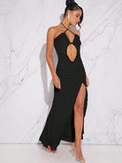 Hauture Fall Sexy Elegant Women Dresses With Cut Out Front Split Thigh Halter Neck Open Back With Raffles,