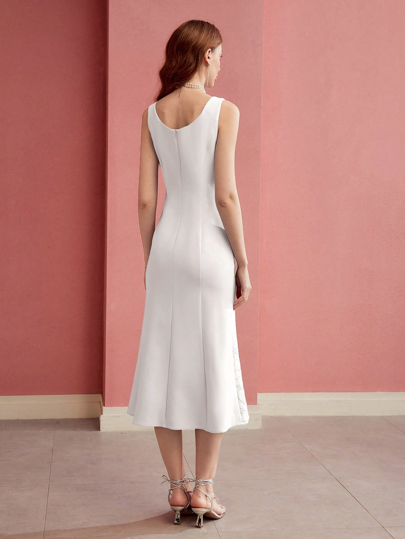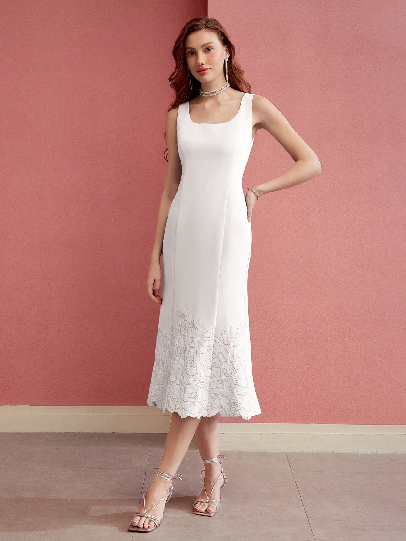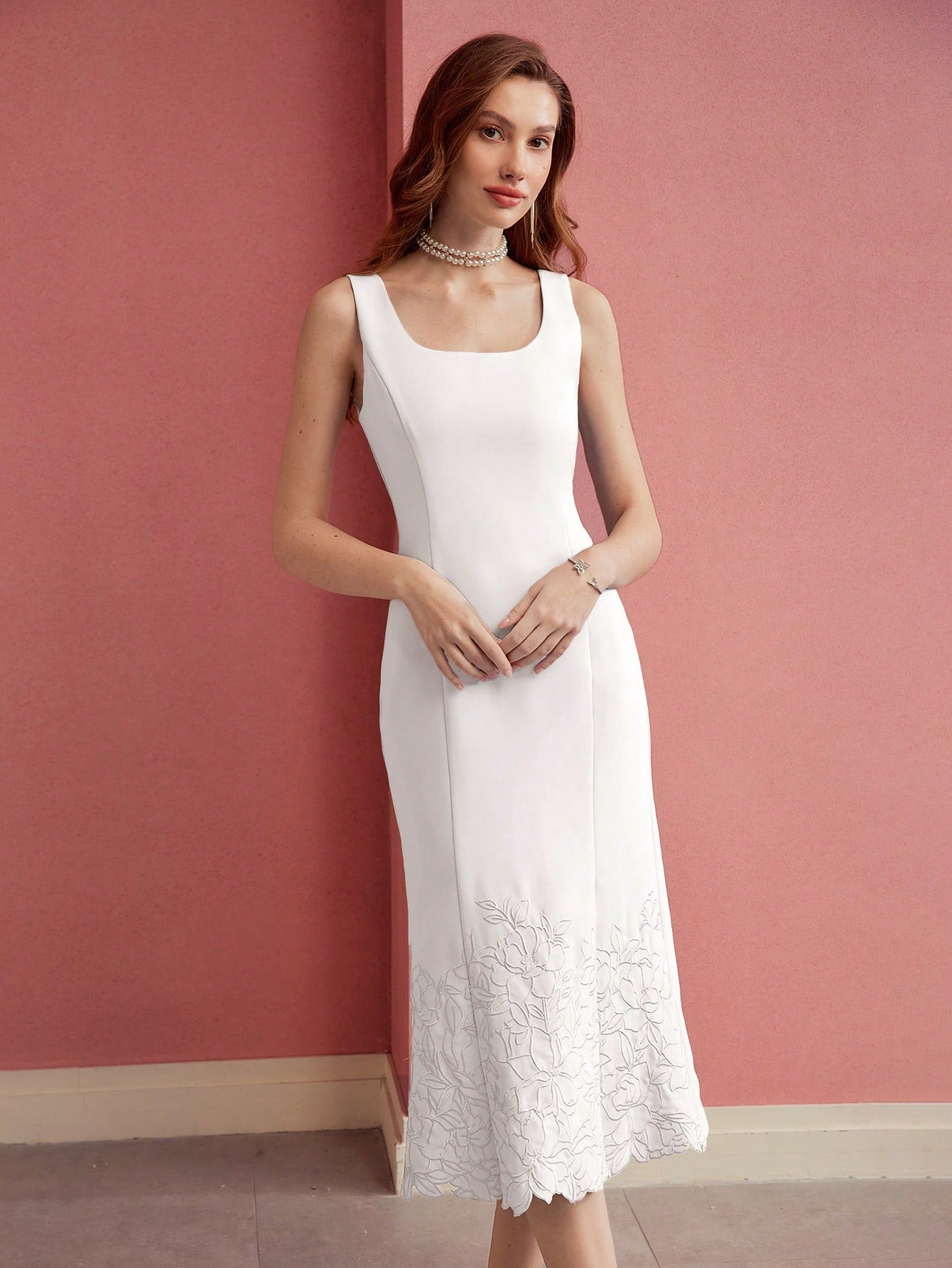 MOTF PREMIUM FLORAL EMBROIDERED FITTED MERMAID HEM DRESS