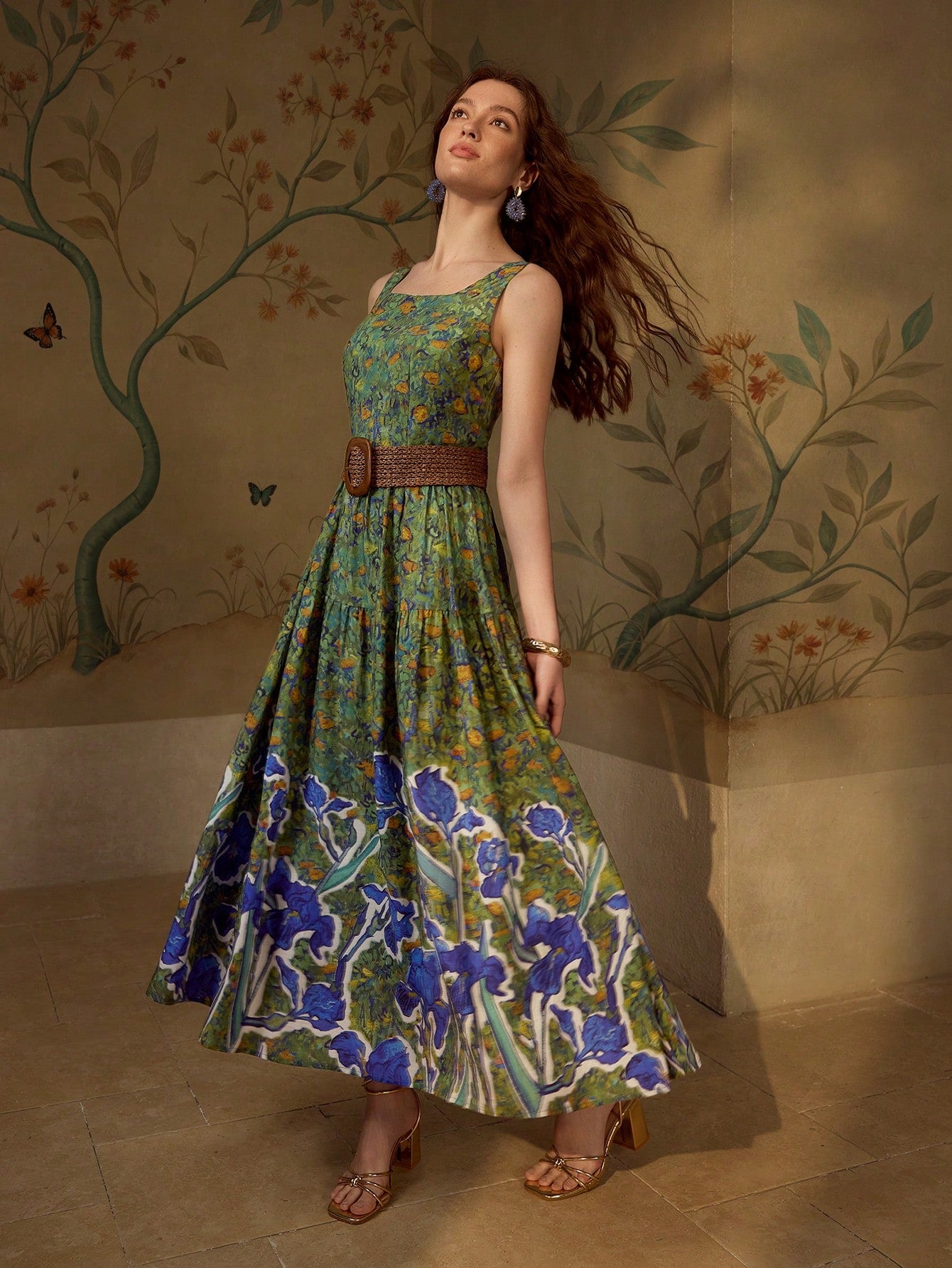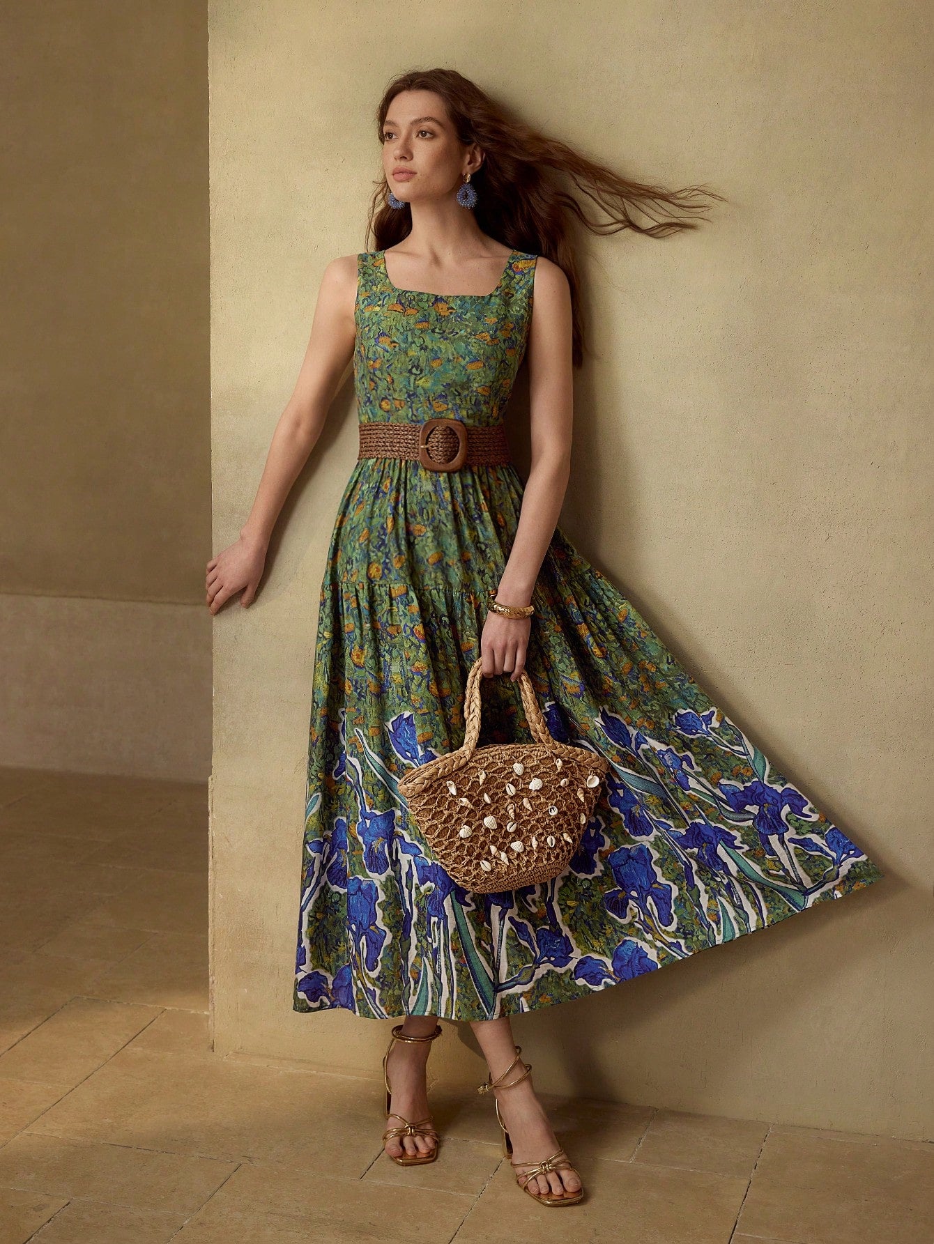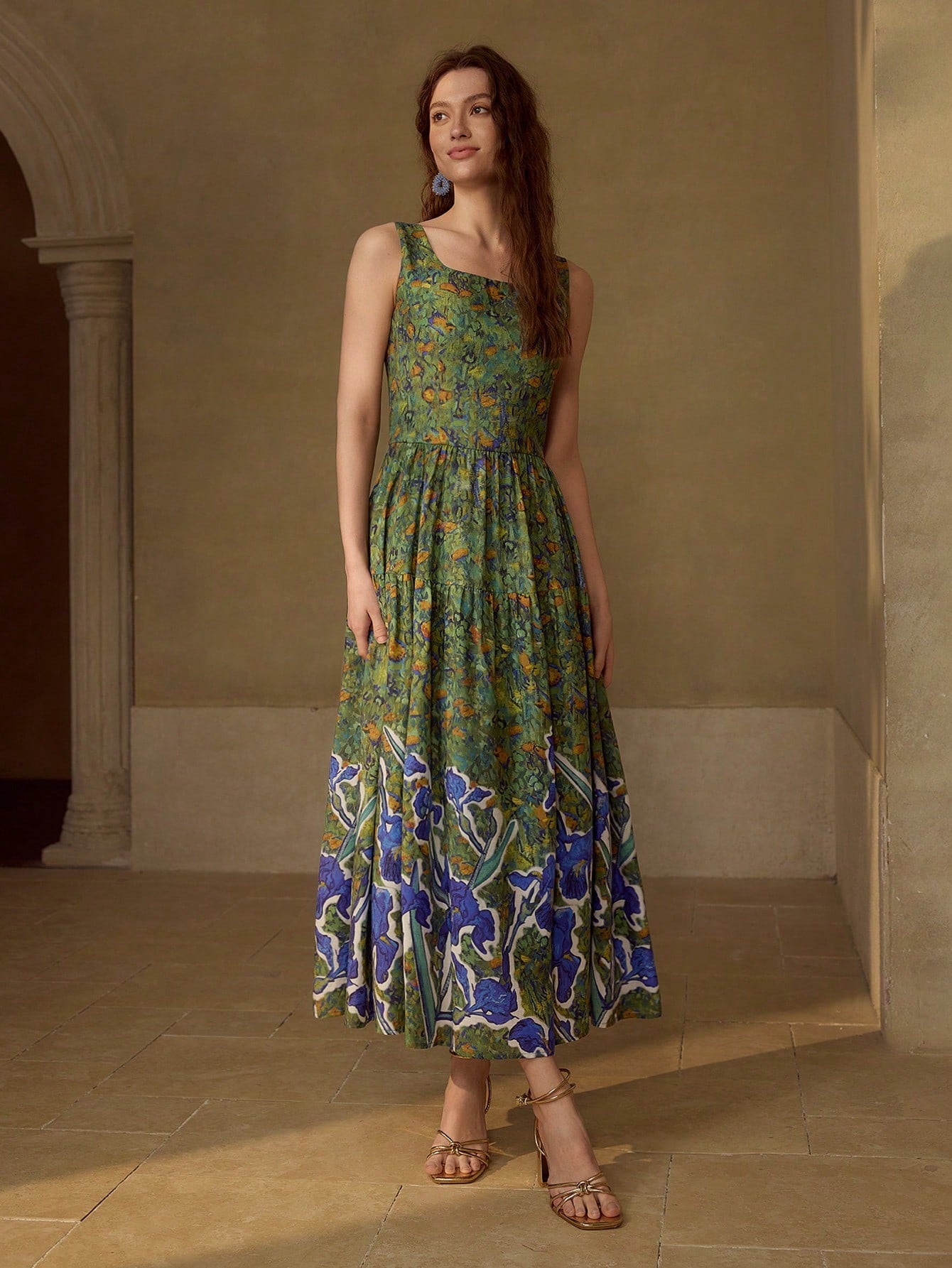 MOTF PREMIUM LINEN RUFFLE HEM SQUARE NECK DRESS