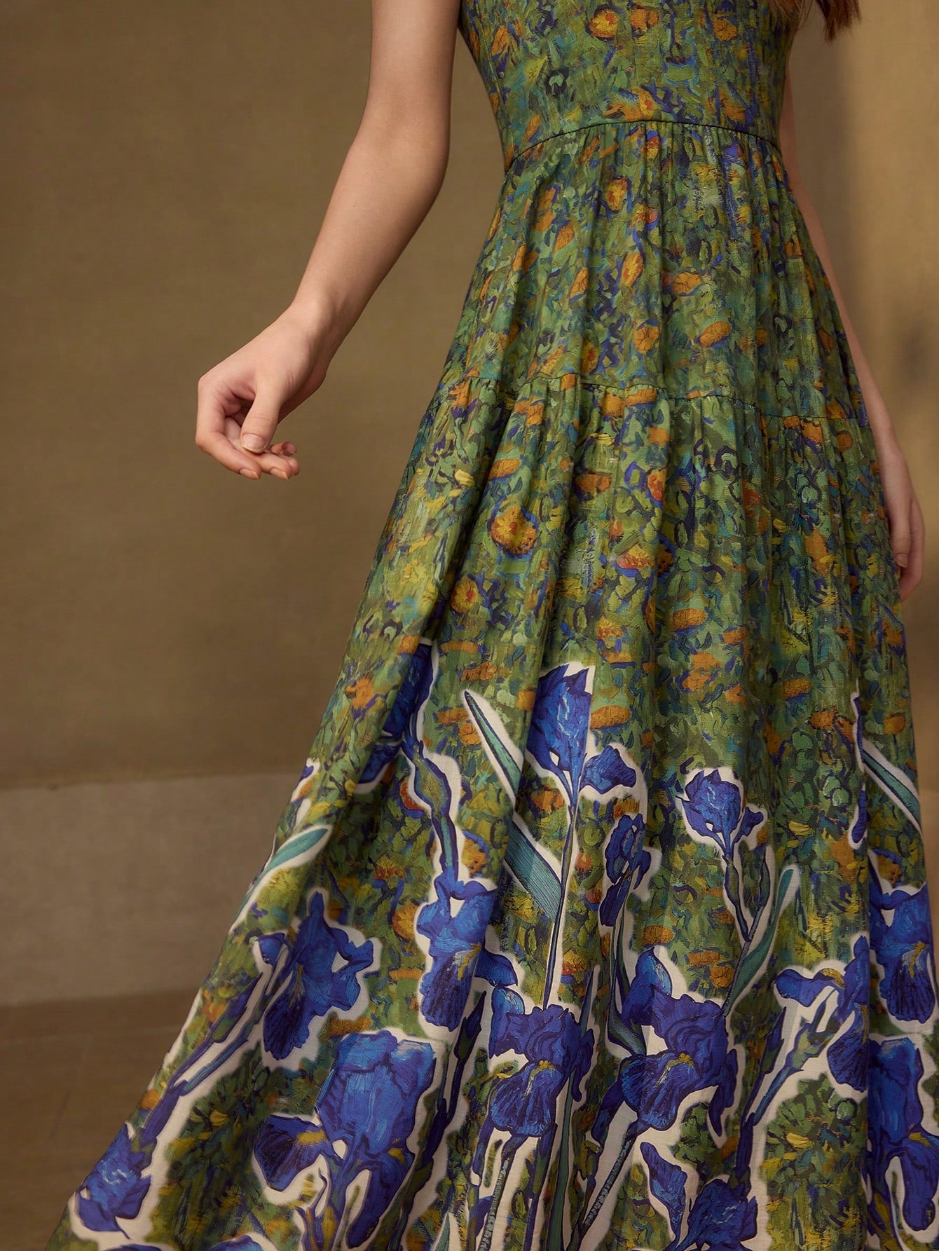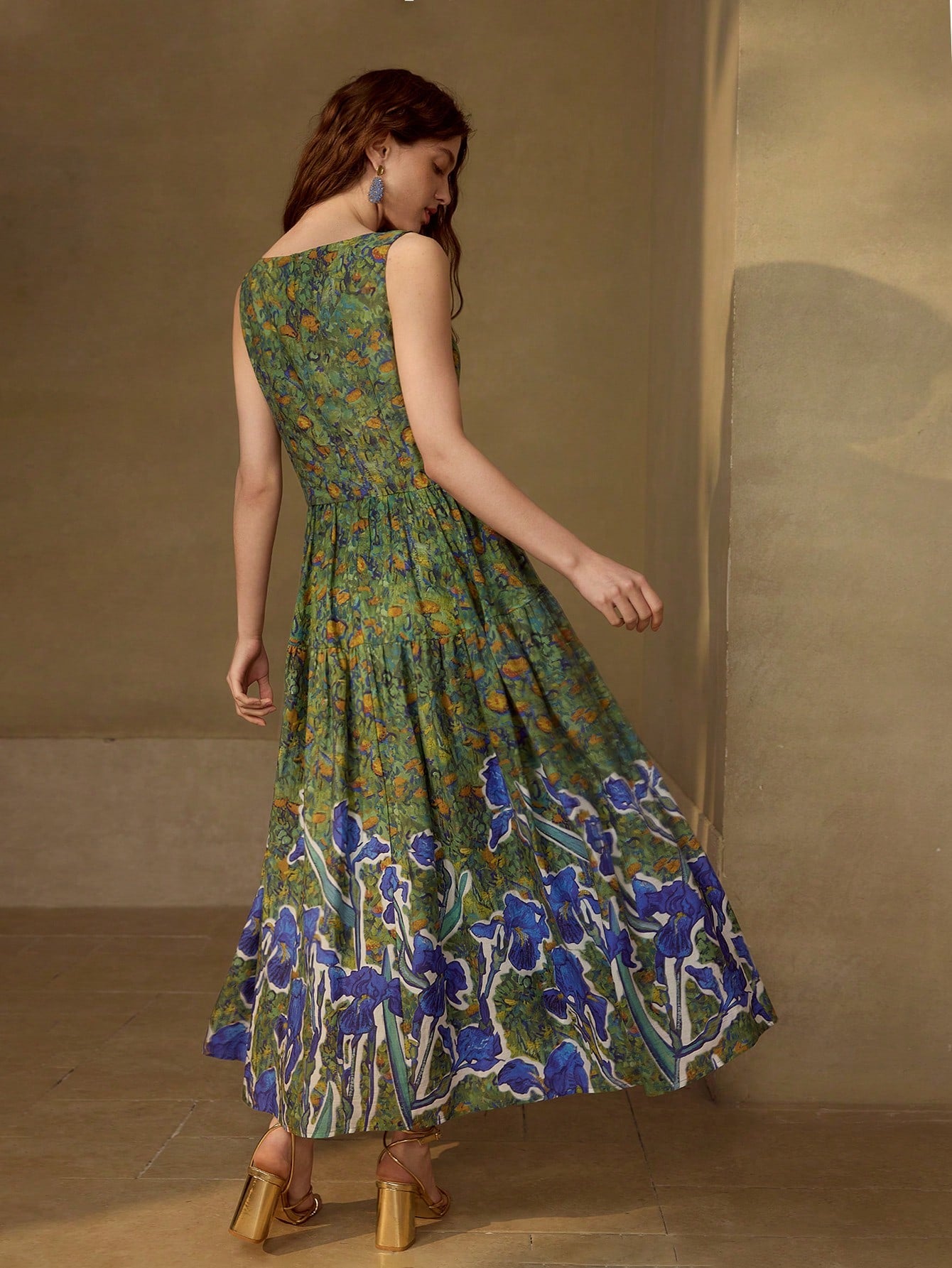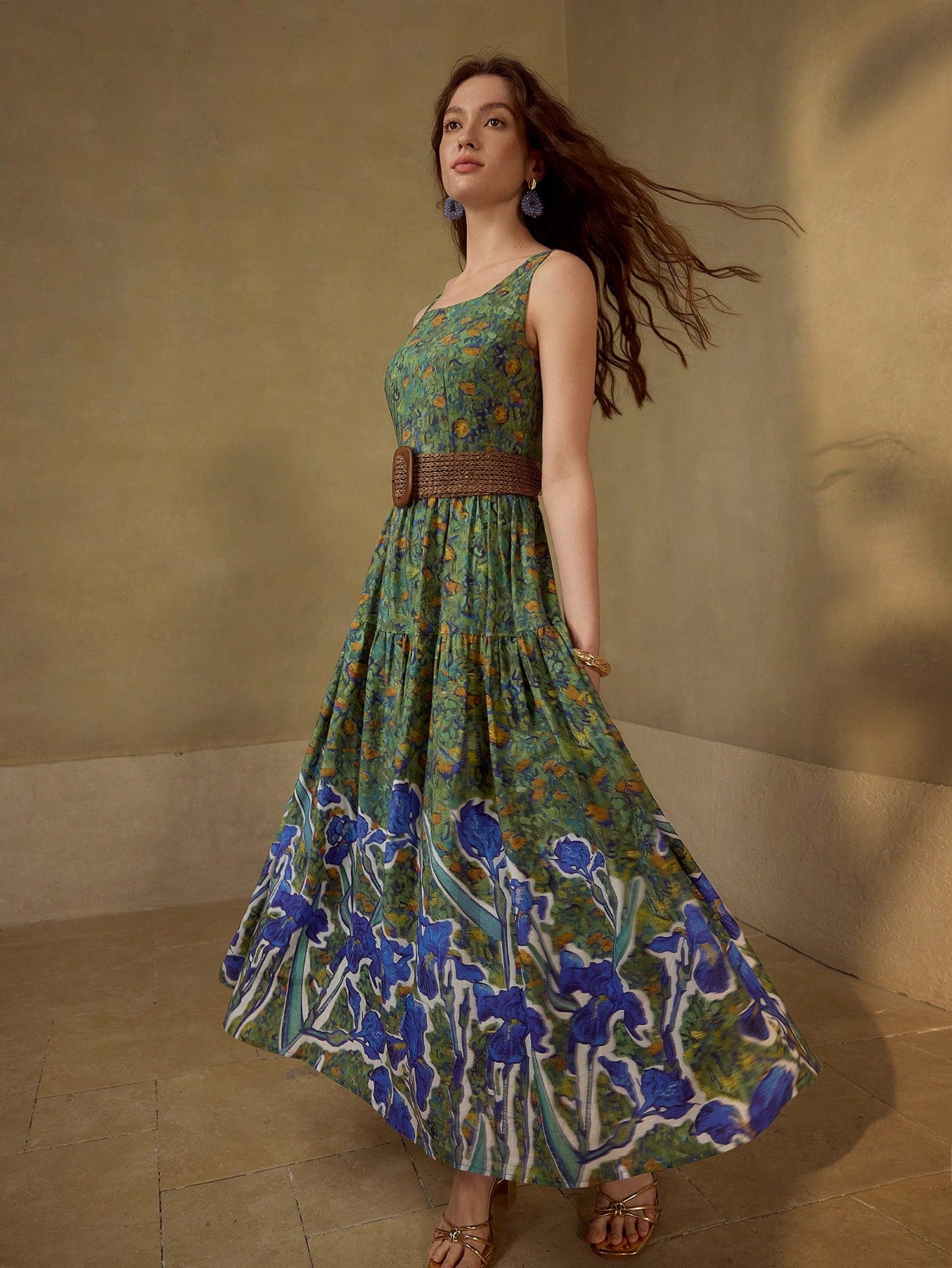 MOTF PREMIUM LINEN RUFFLE HEM SQUARE NECK DRESS