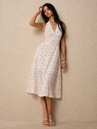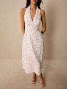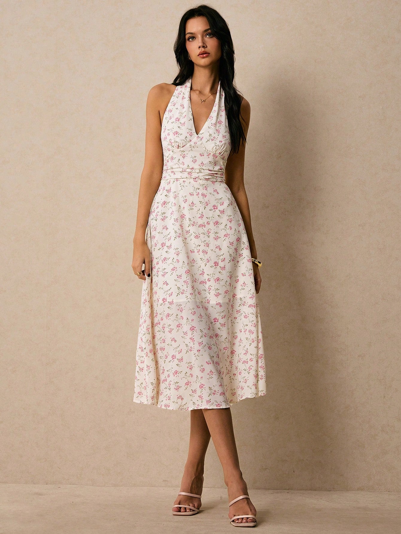 Poelle Women's Floral Dress, Halter Neck Maxi Dress,Women's Ditsy Floral Halter Neck Mid-Length Vacation