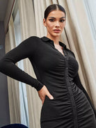 Ruched Detail Button Placket Dress