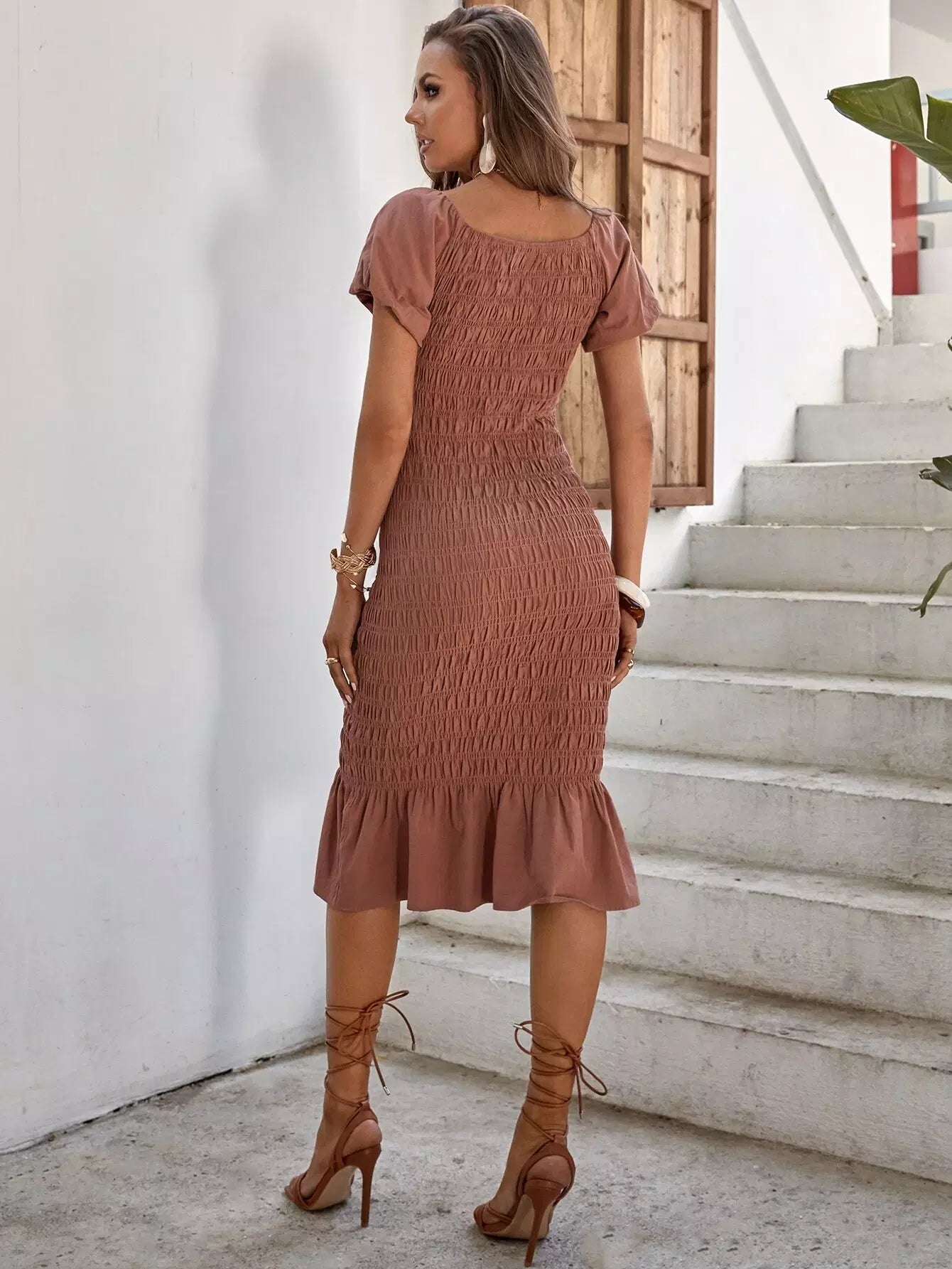 Ruffle Hem Shirred Bodycon Dress