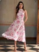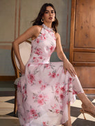 ZEYLAH Printed Sleeveless Ruffle Hem Dress, Romantic Summer Resort Style