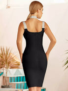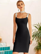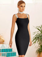 Zip Back Rhinestone Straps Bandage Dress With Choker