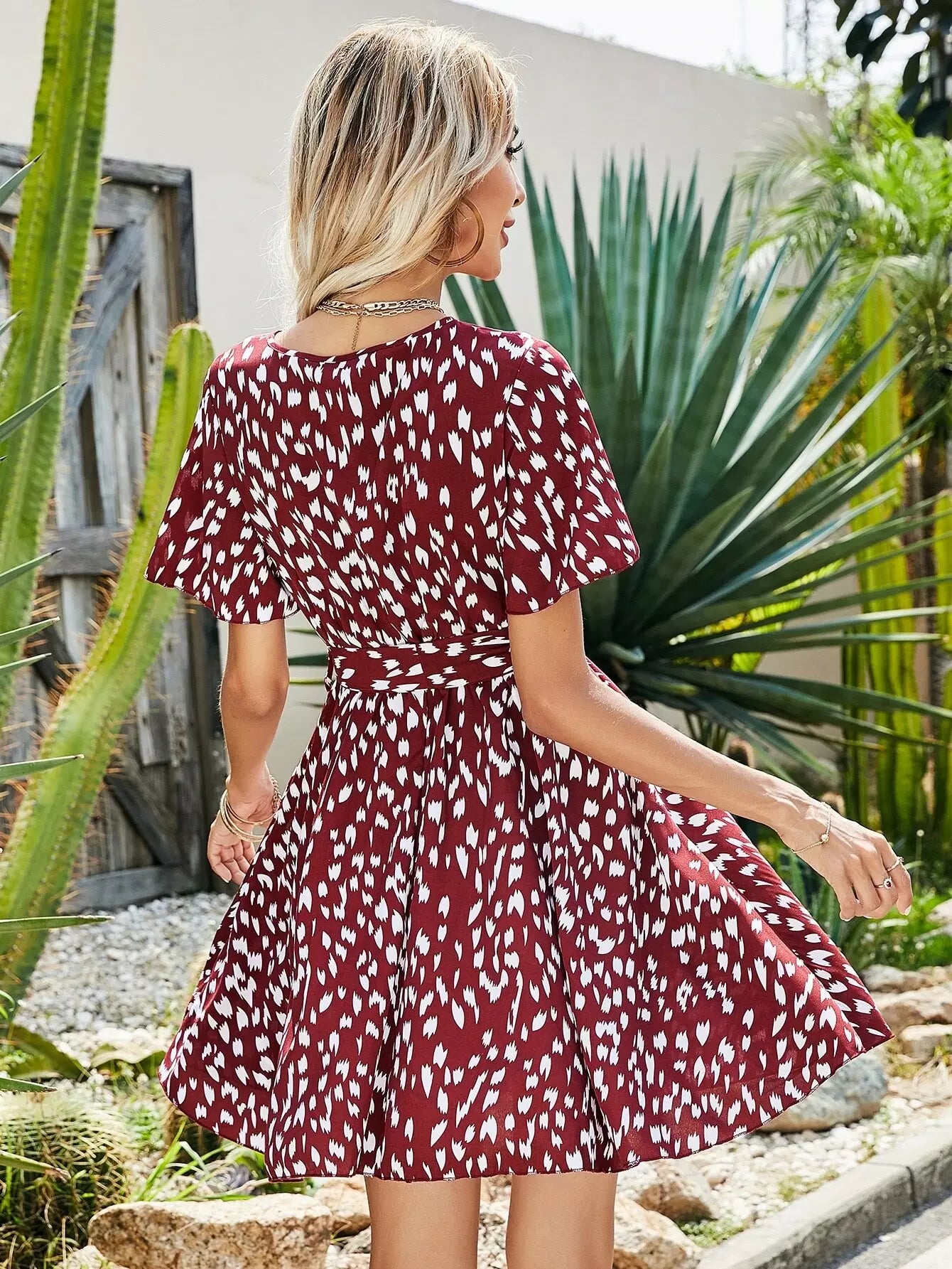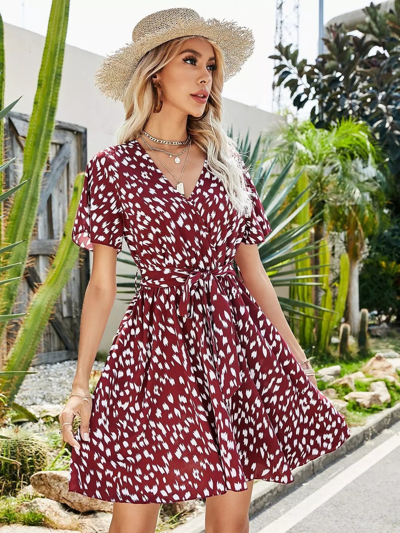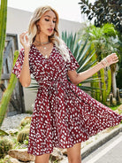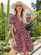 Allover Print Surplice Front Dress Without Belt