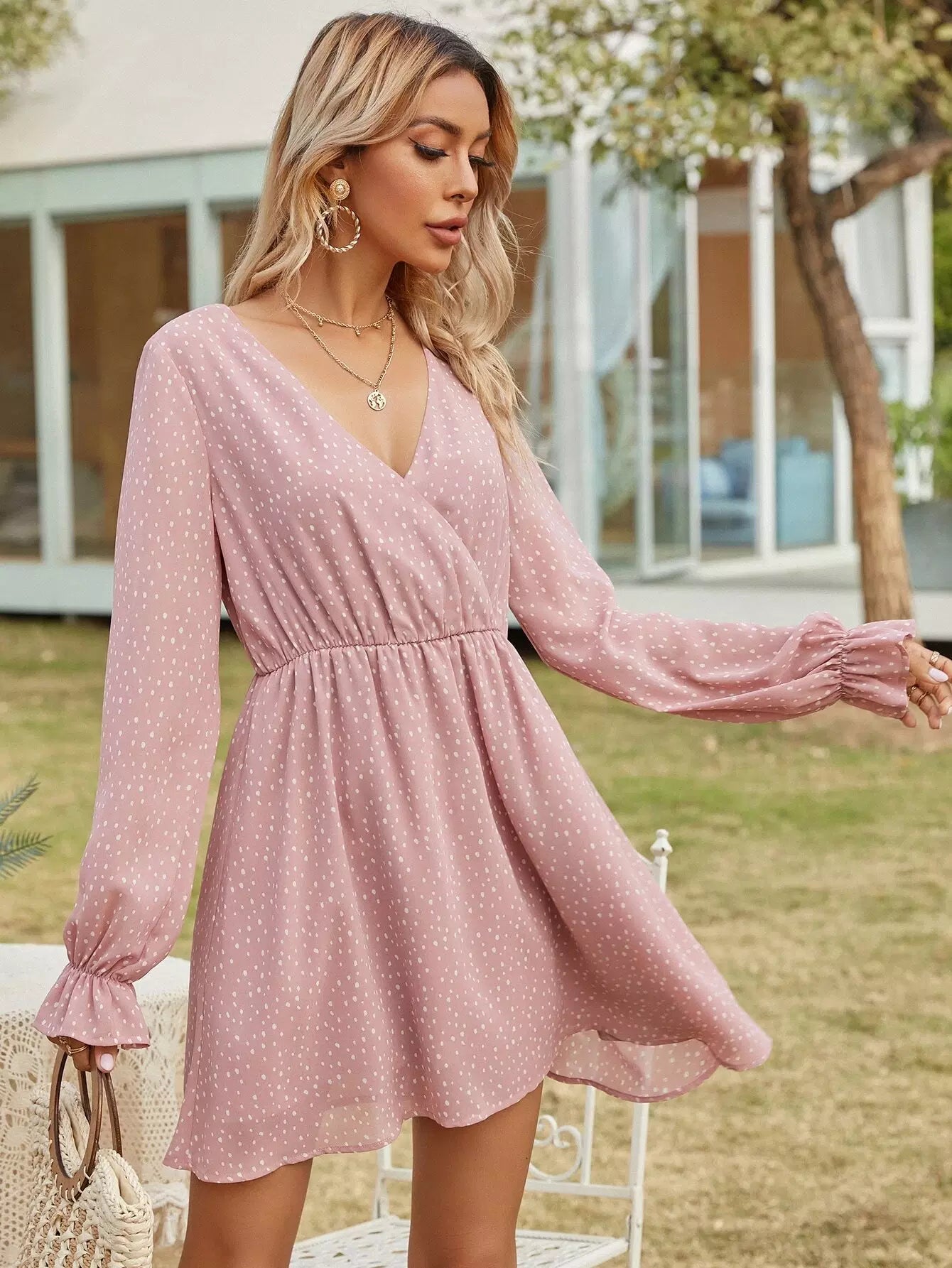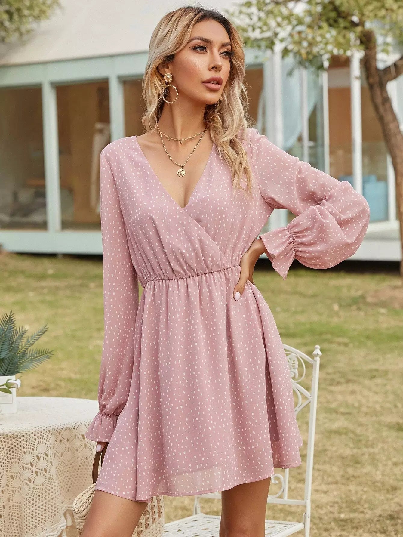 Allover Print Surplice Front Dress