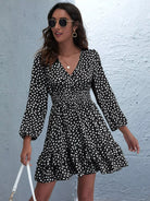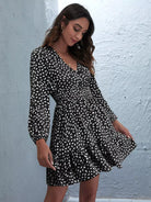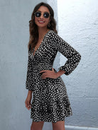 Allover Print Surplice Front Layered Hem Dress