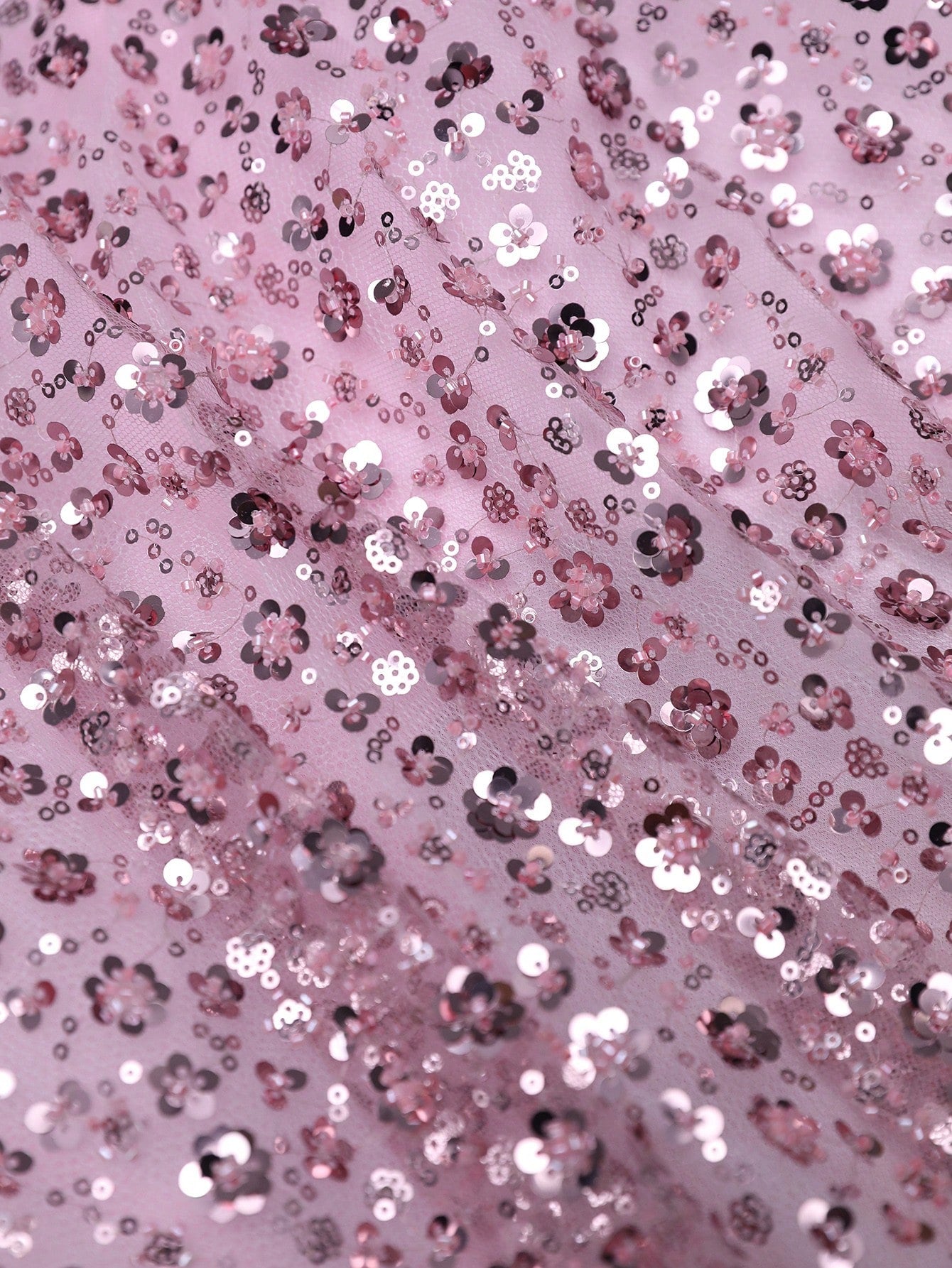 Allurite Women's Lotus Root Pink Sequin 3D Embroidery Mini Dress
