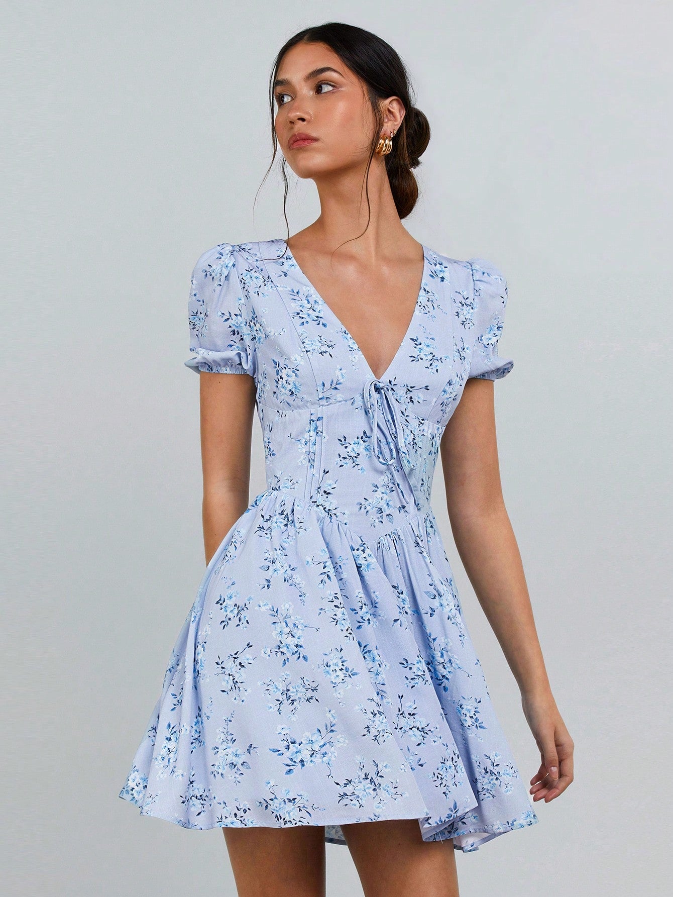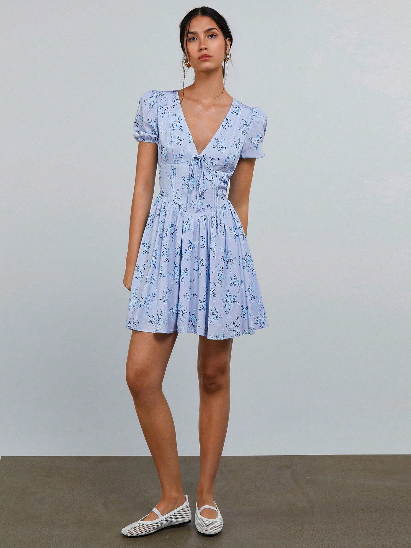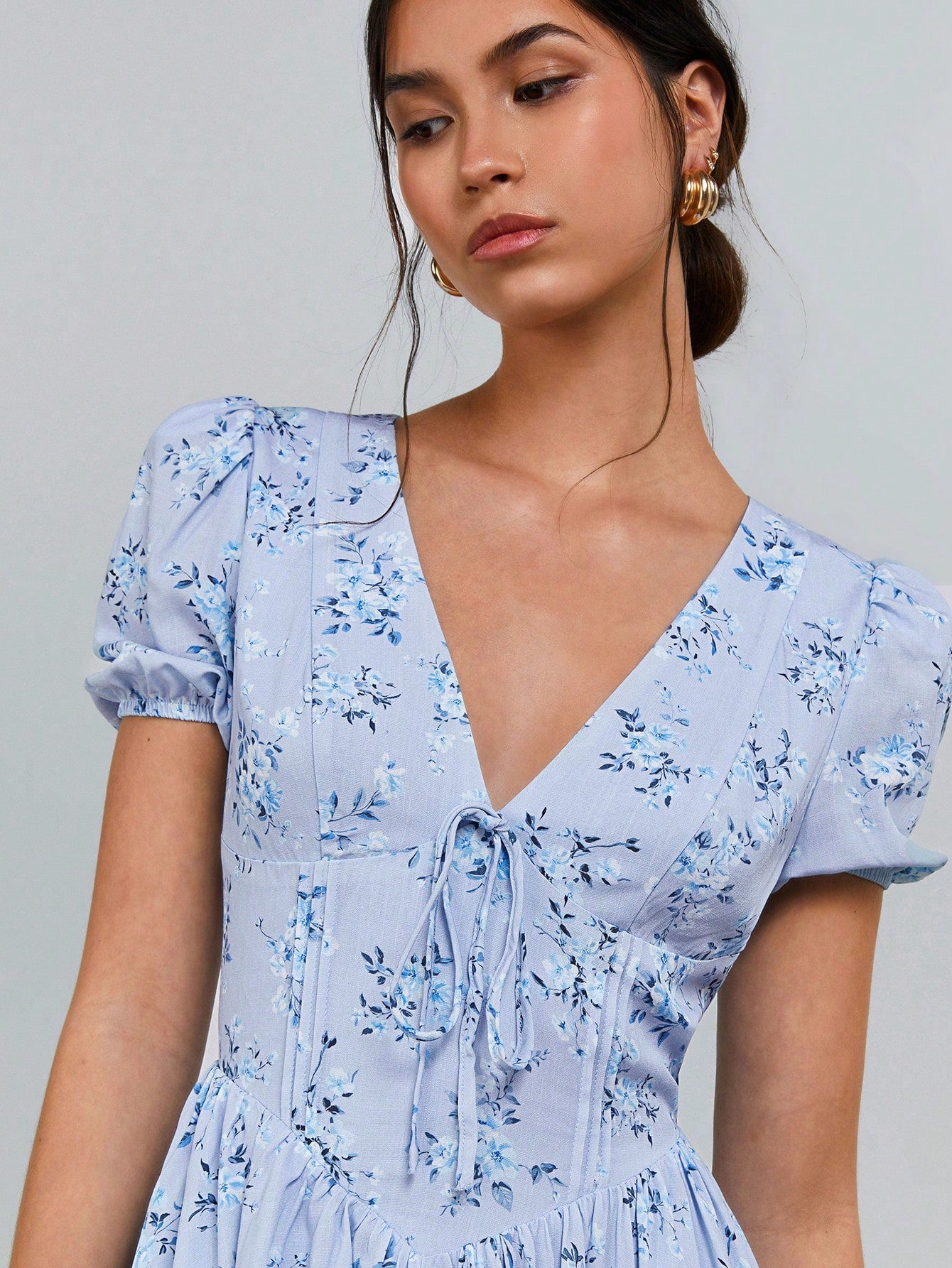 women Athï؟½ral Women Floral Print Girly Mini Dress