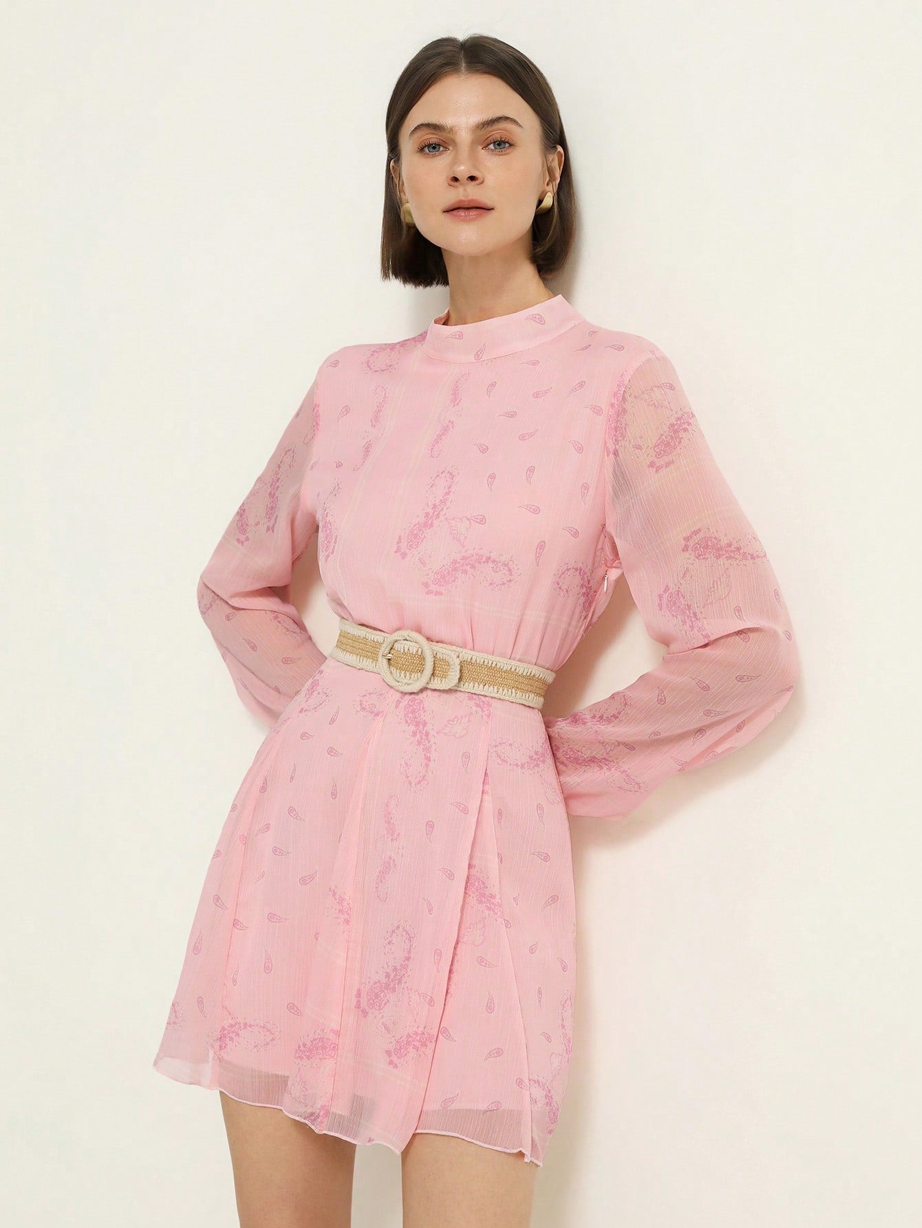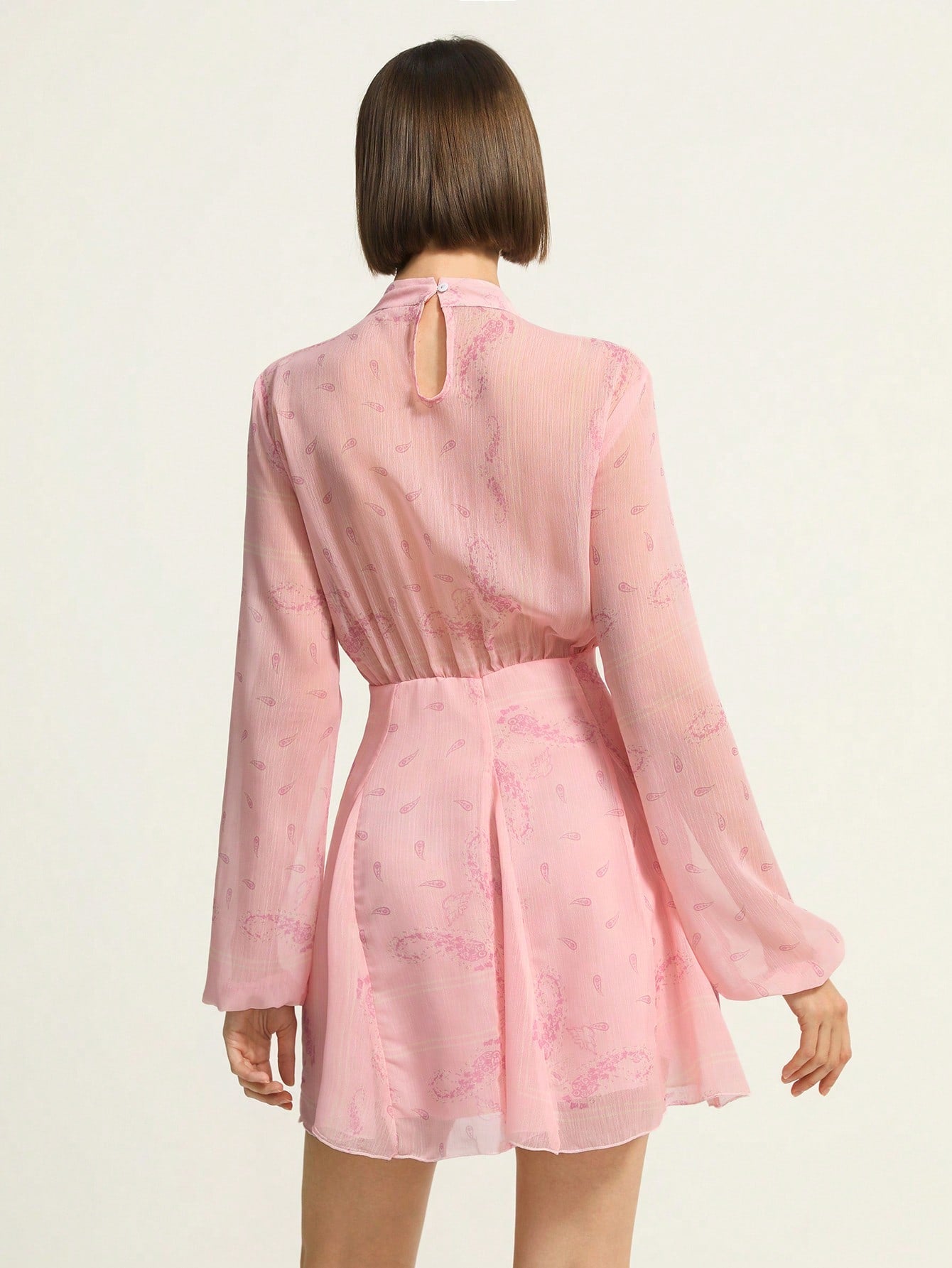 women Aveloria Rosie Floral Print Chiffon Long Sleeve Short Dress