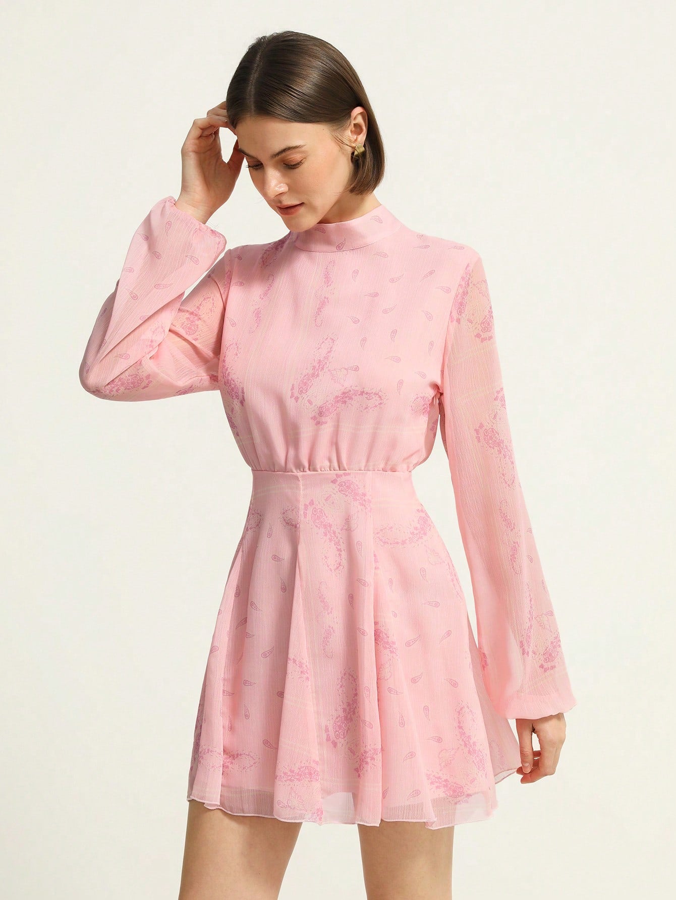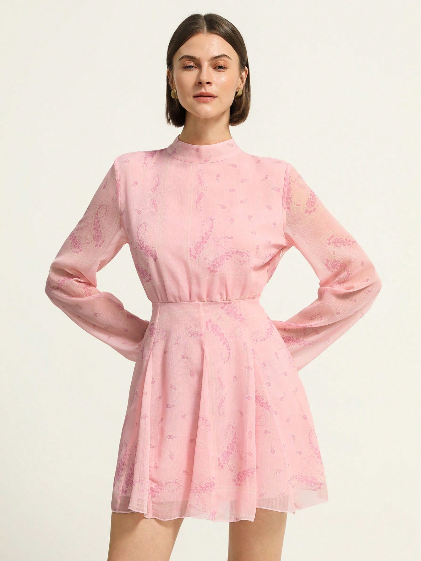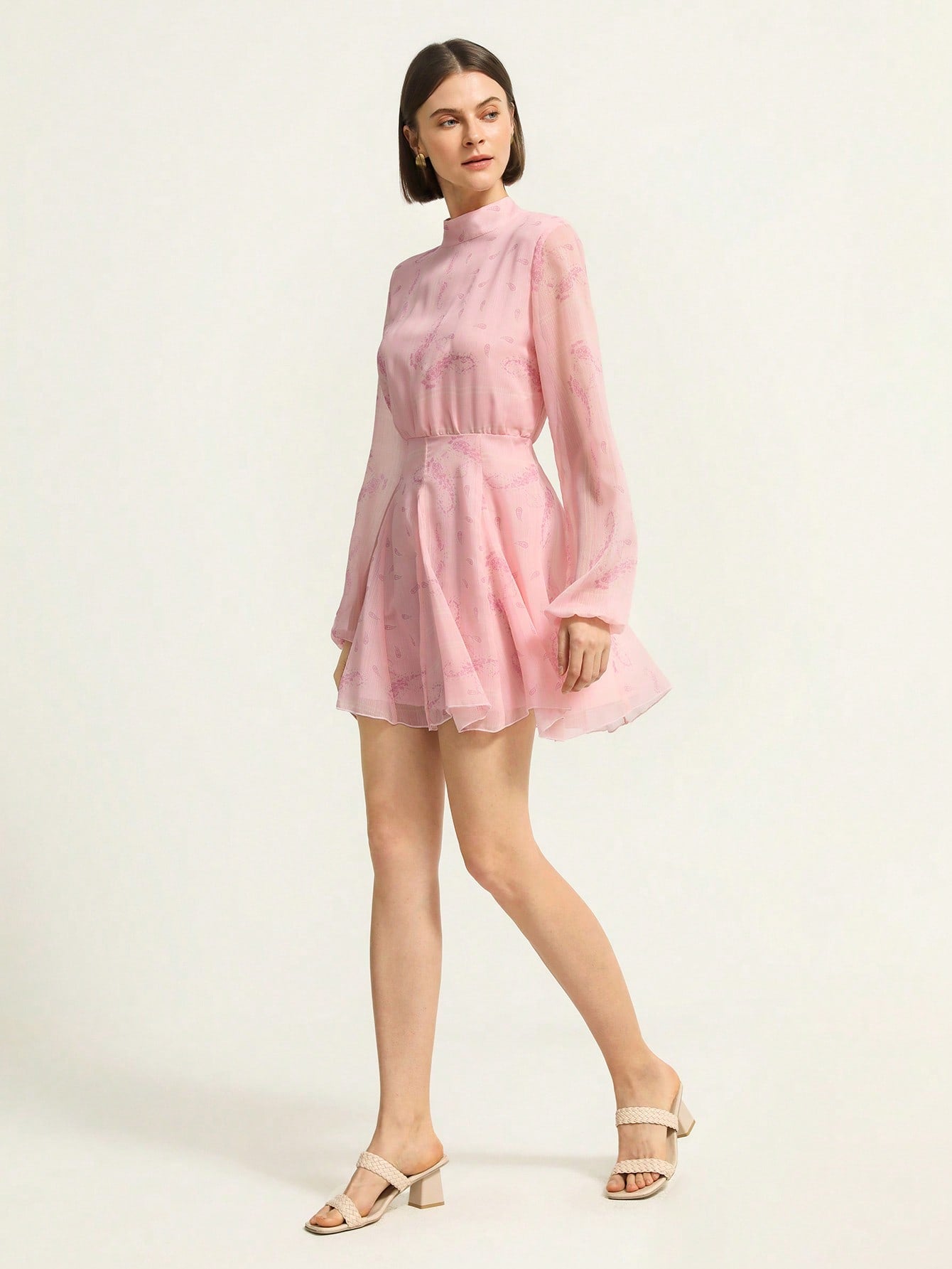 Aveloria Rosie Floral Print Chiffon Long Sleeve Short Dress