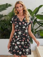 Batwing Sleeve Allover Floral Print Tunic Dress