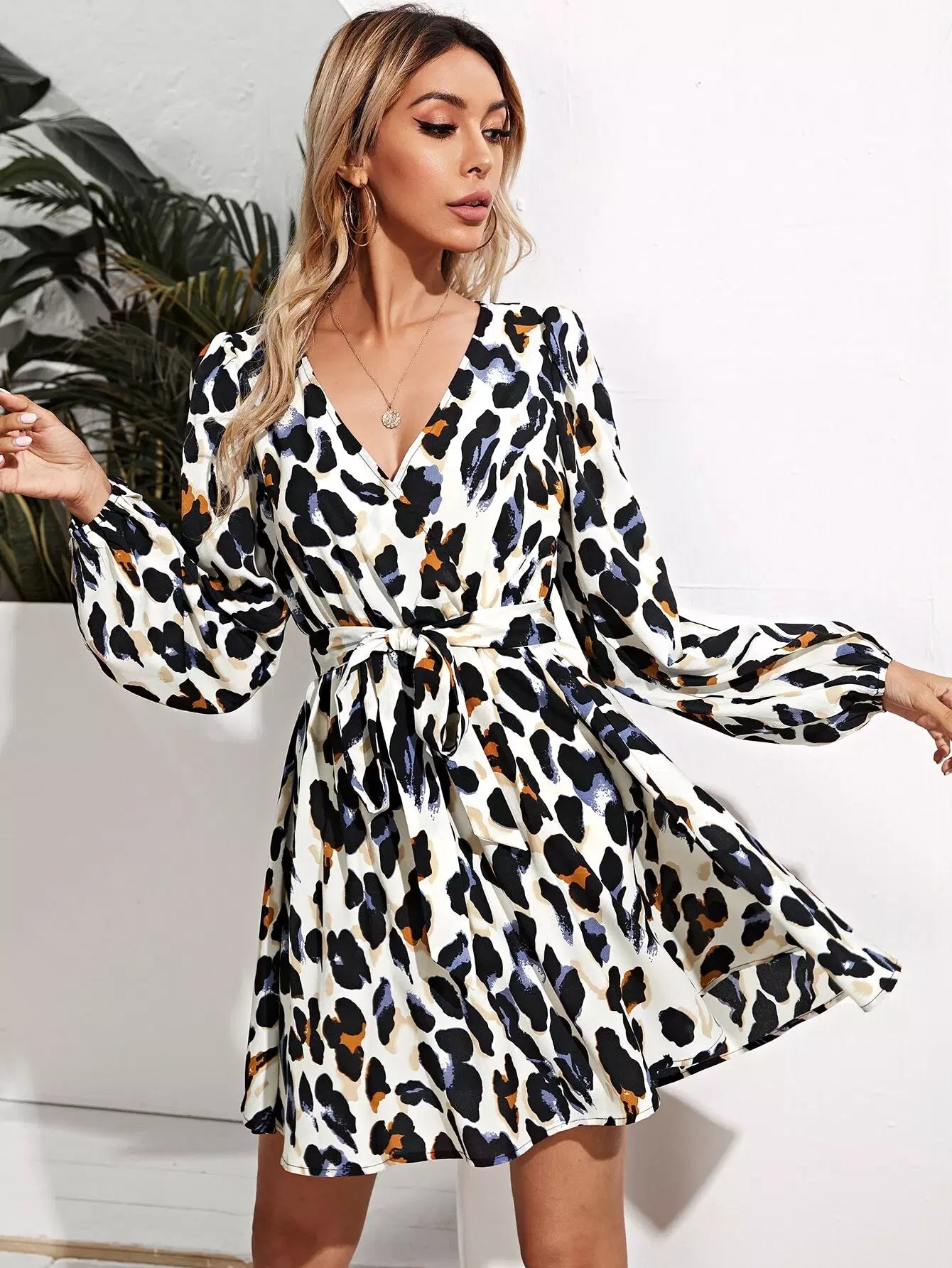 Bishop Sleeve Allover Print Dress