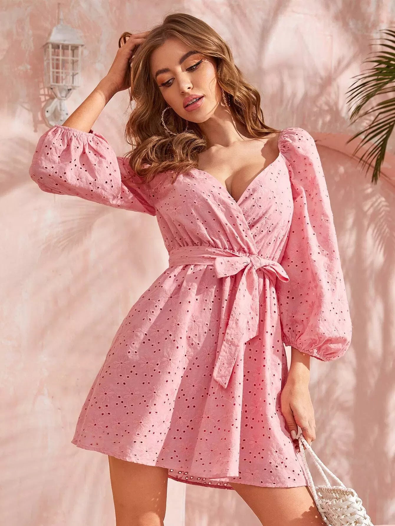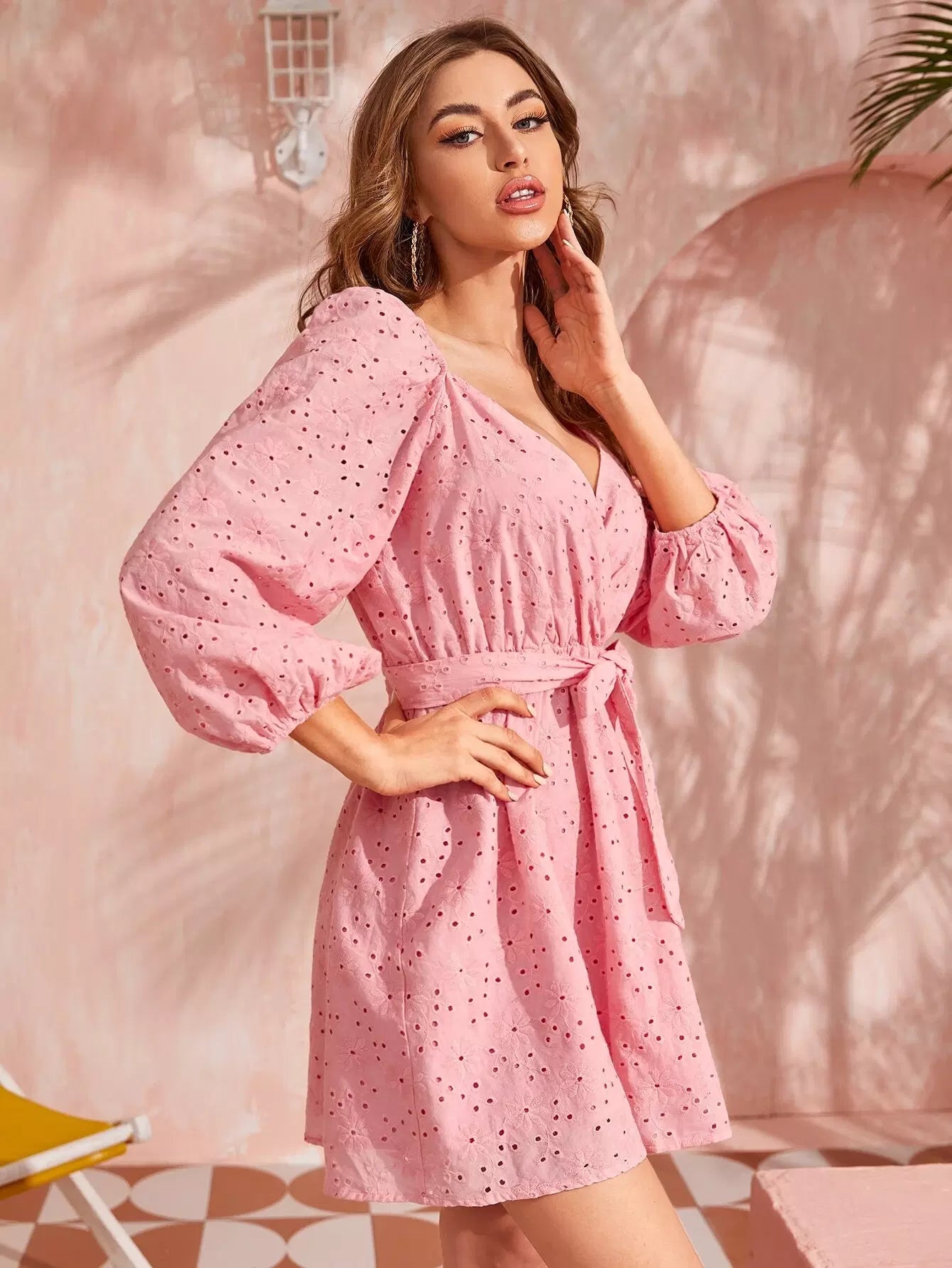 Bishop Sleeve Self Schiffy Dress Without Belt