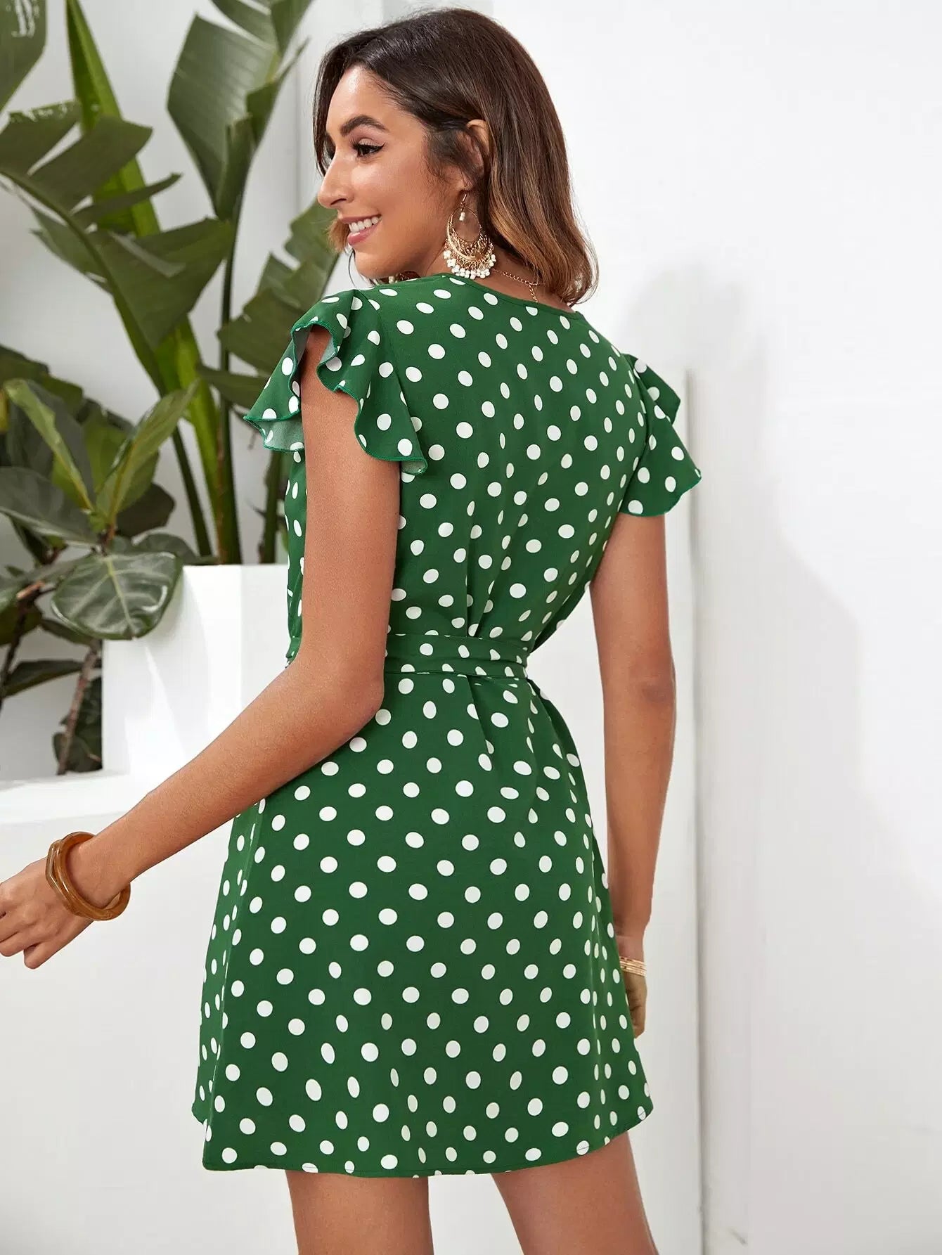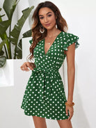 Butterfly Sleeve Polka Dot Dress Without Belt
