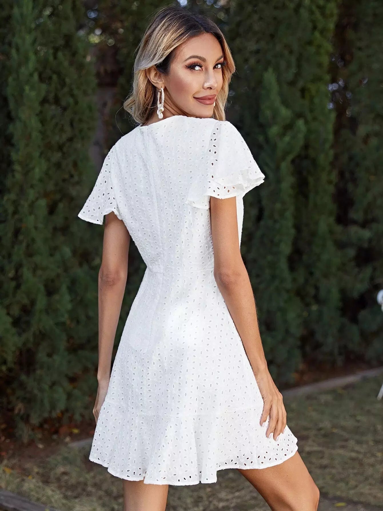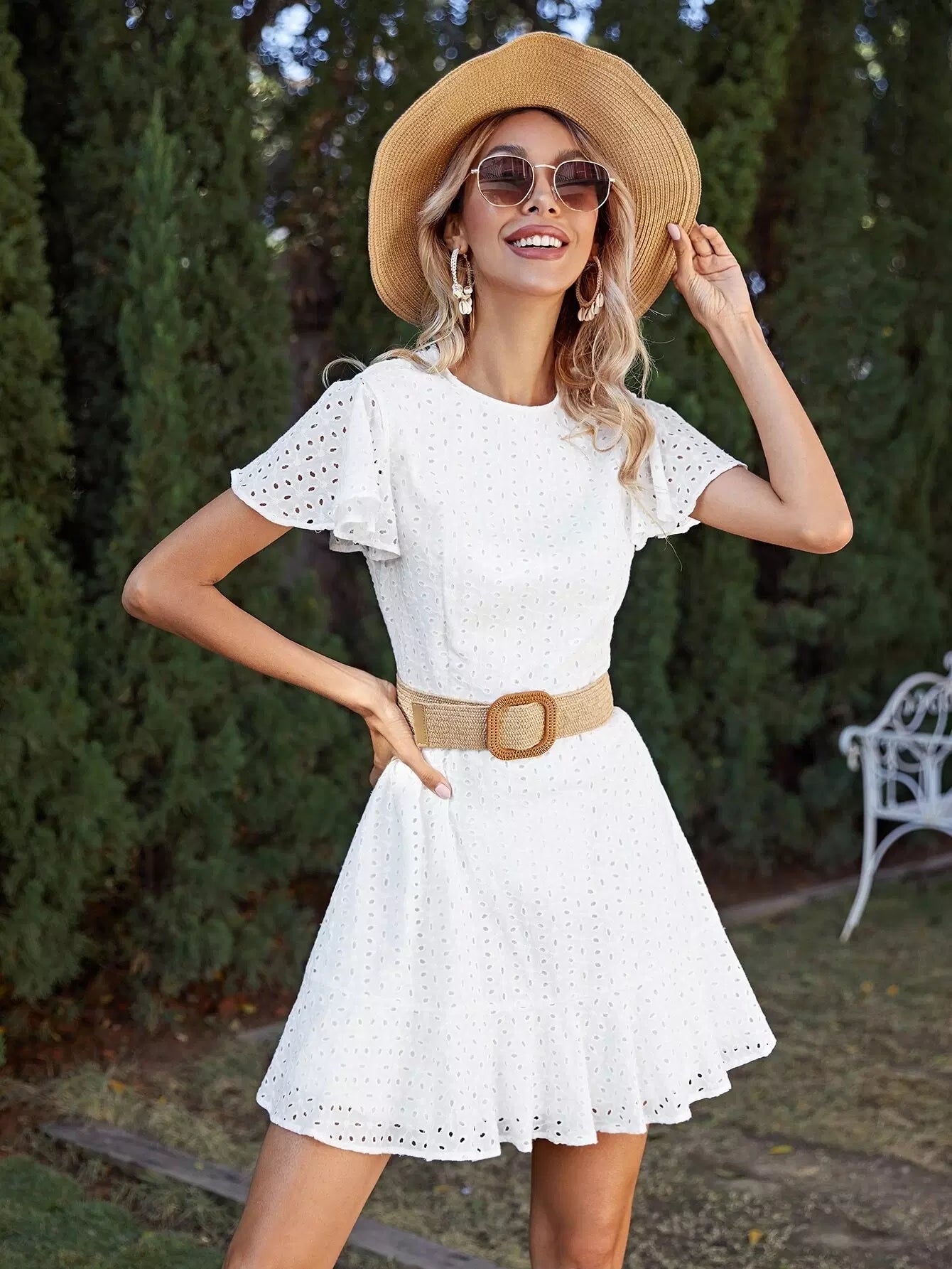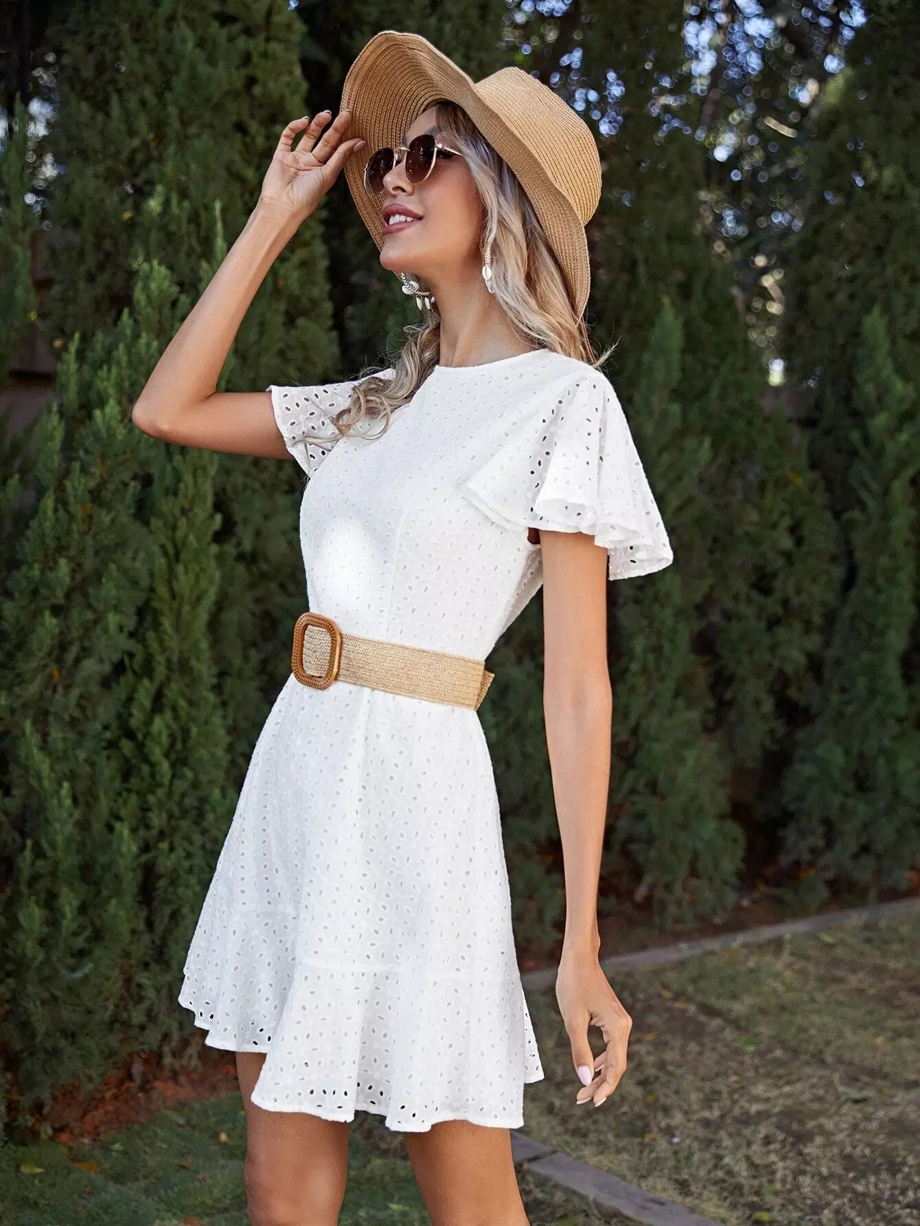 Butterfly Sleeve Ruffle Hem Schiffy Dress Without Belt