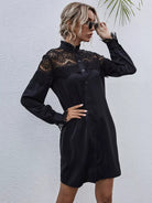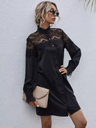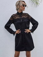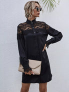 Women - Contrast Lace Frill Trim Shirt Dress