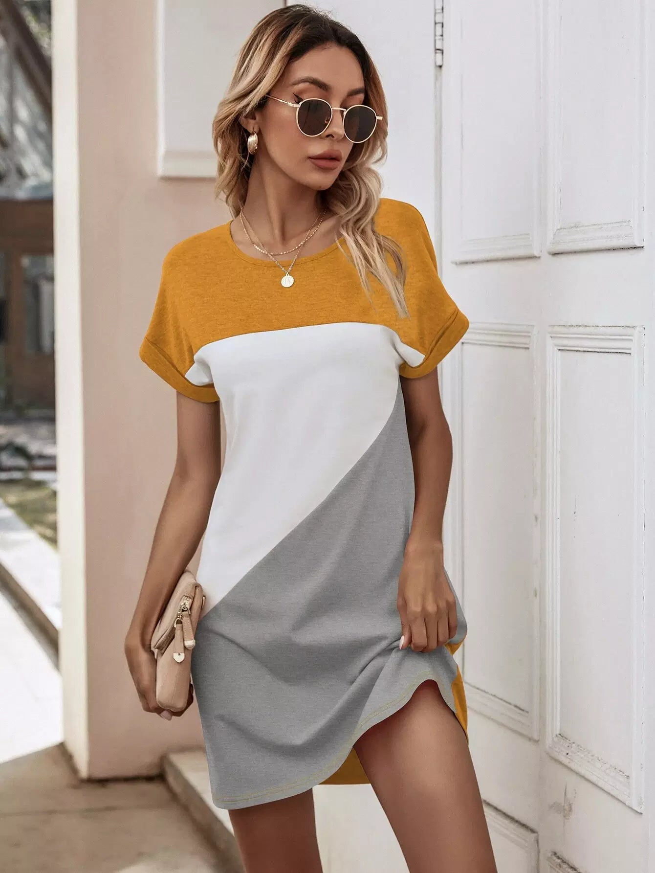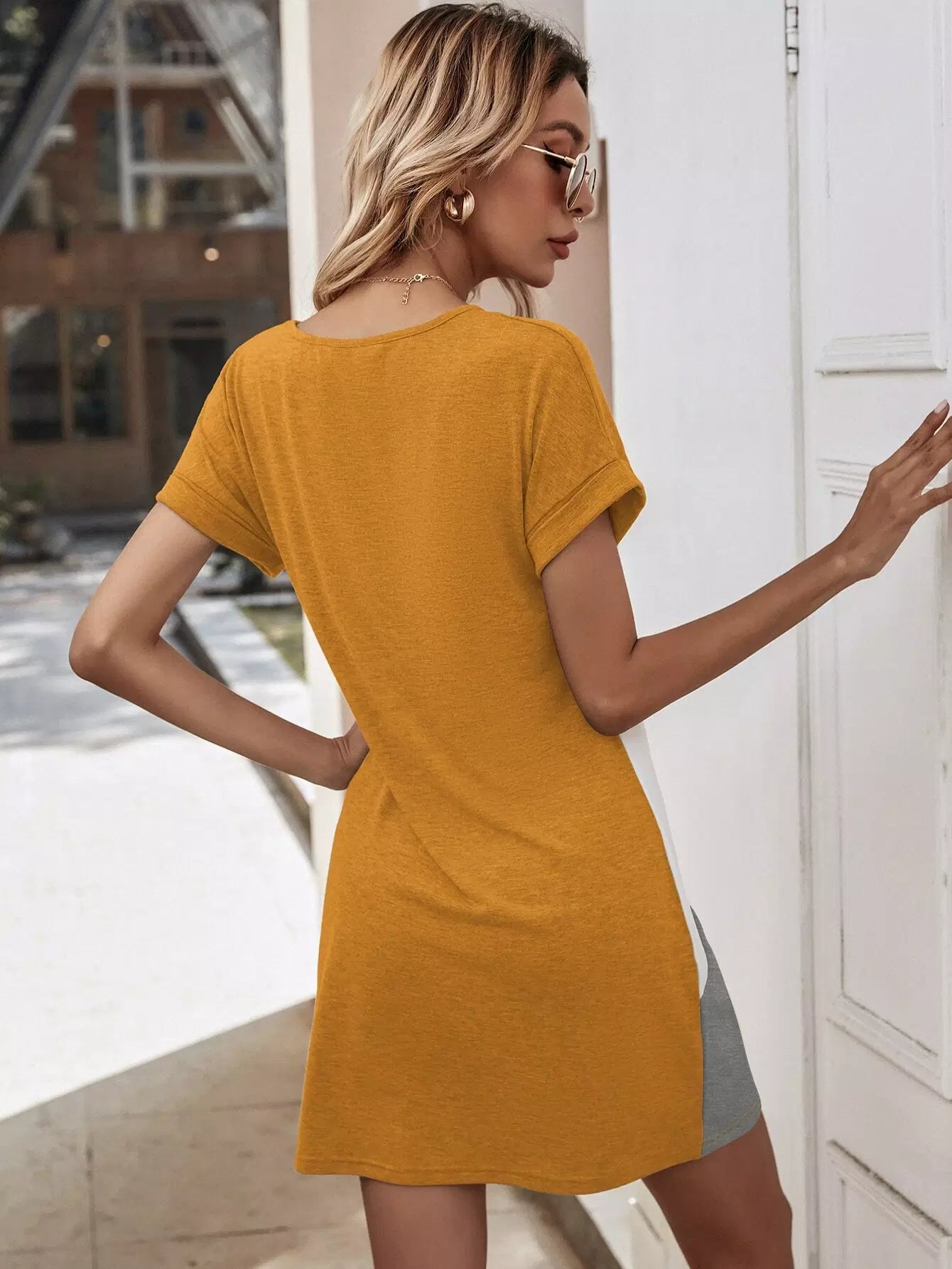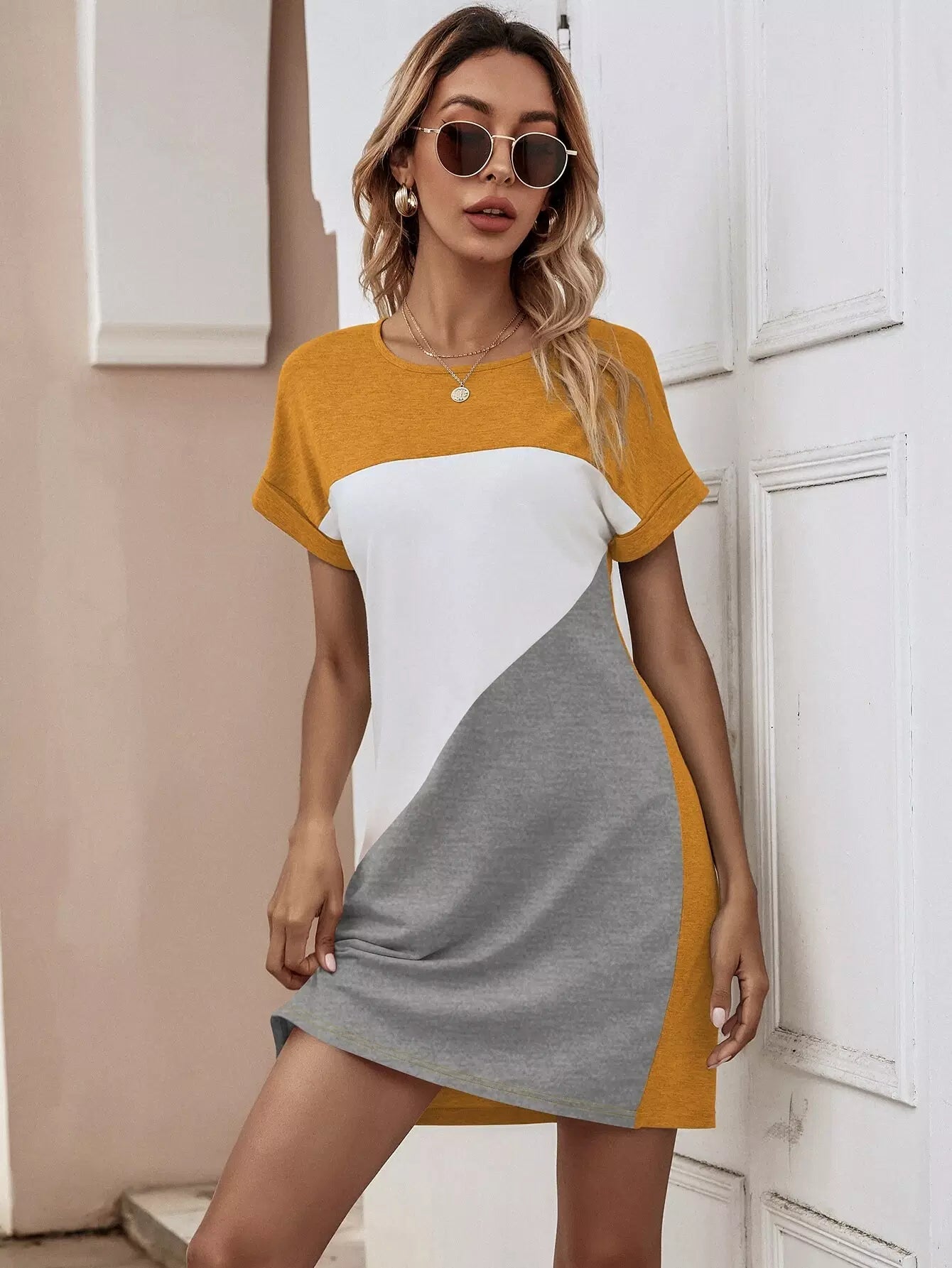 Cut And Sew Batwing Sleeve Tee Dress