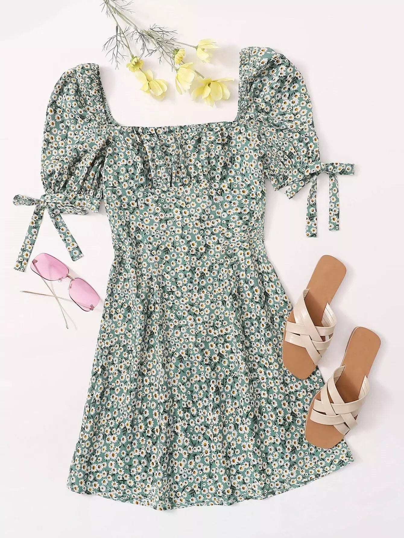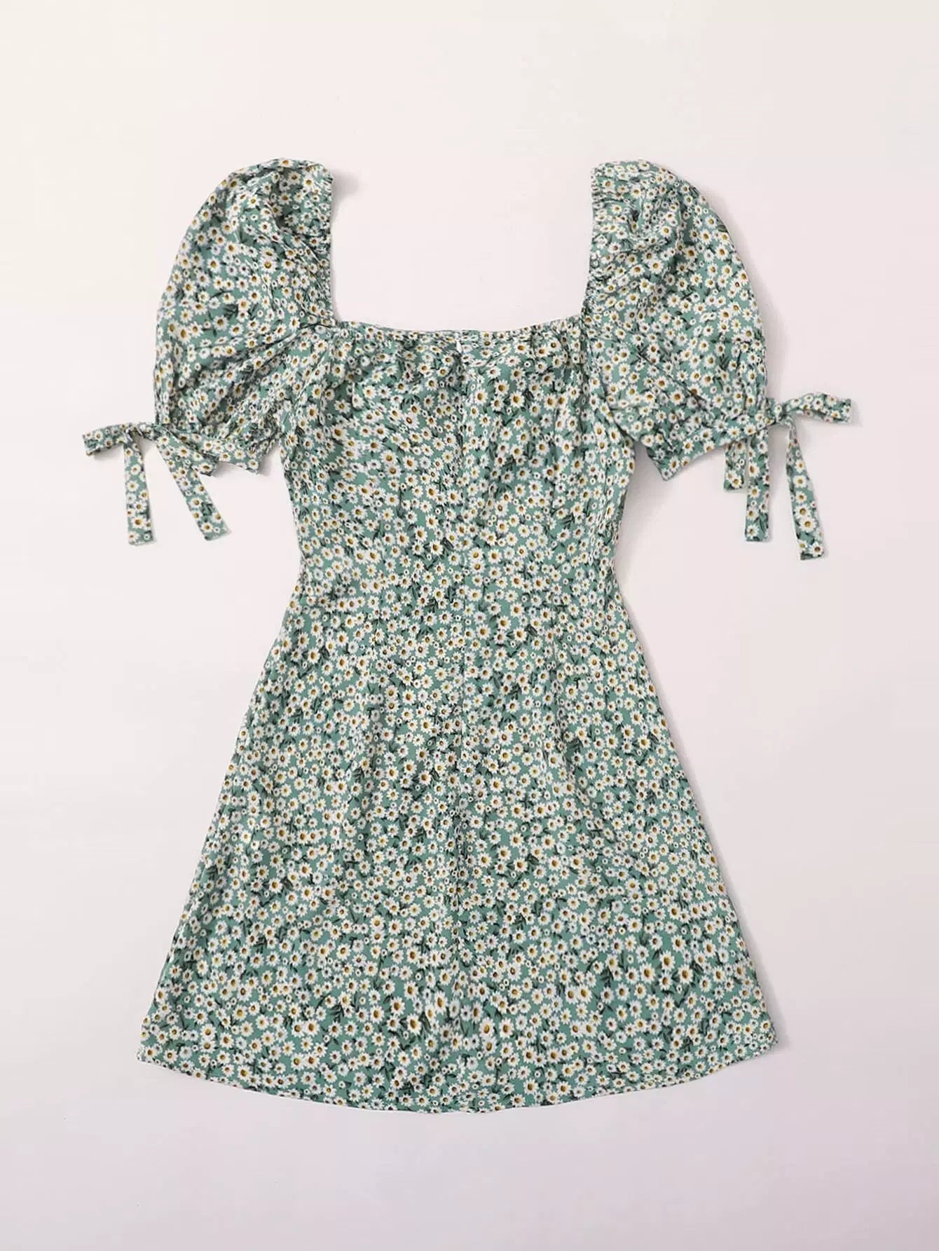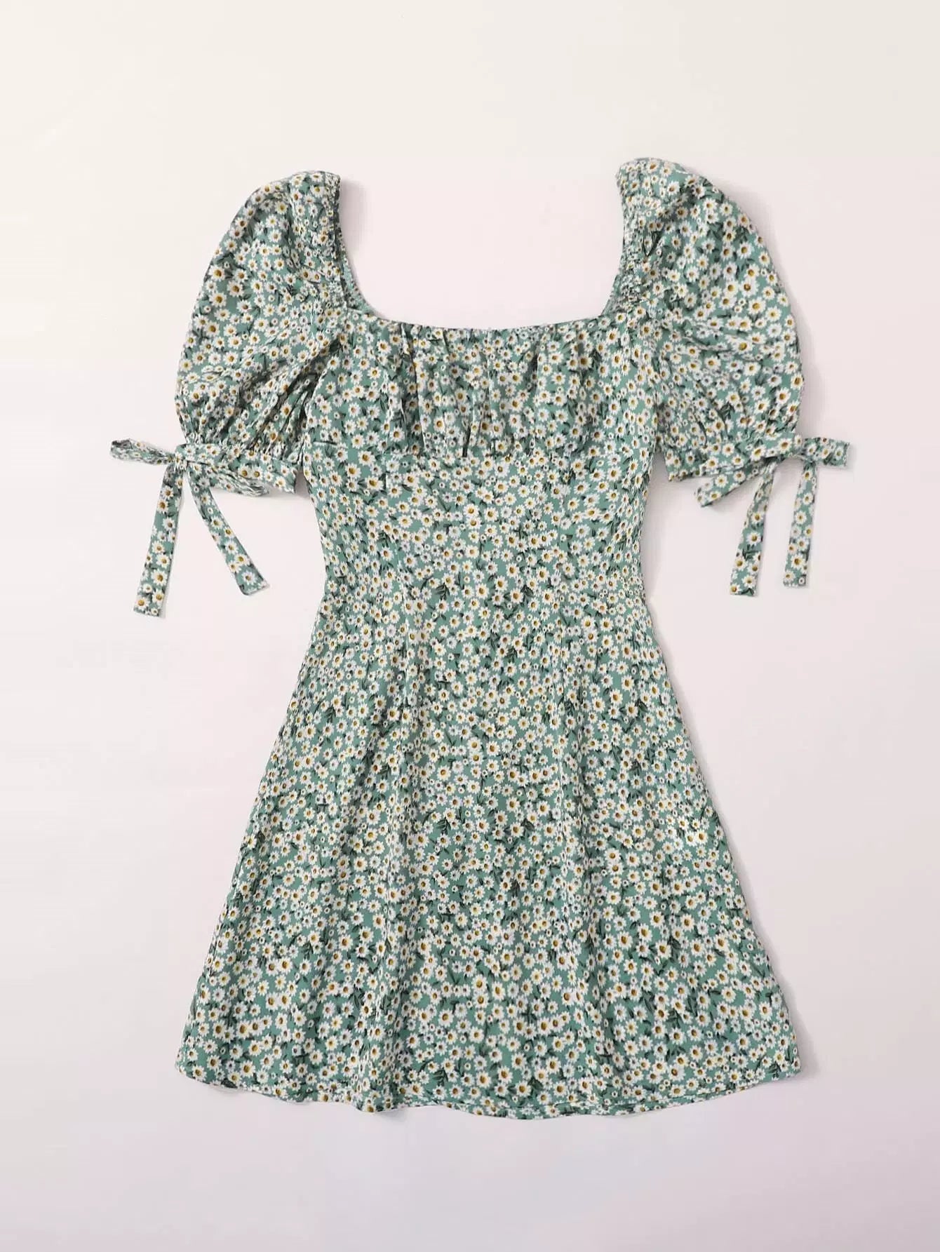 Daisy Floral Print Ruched Bust Knot Cuff Dress