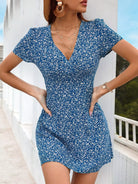 Deep V Neck Ditsy Floral Dress
