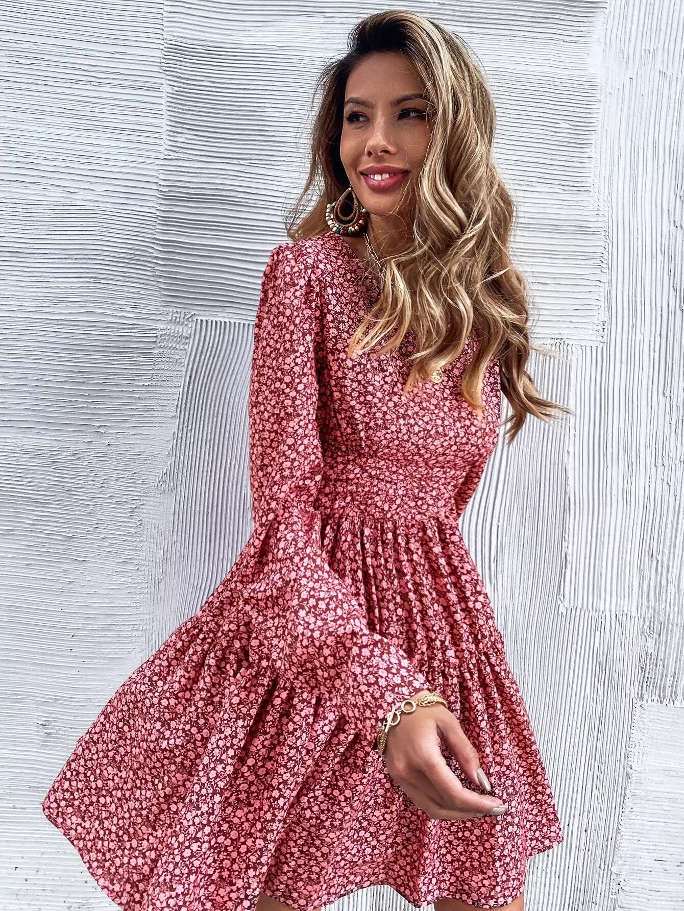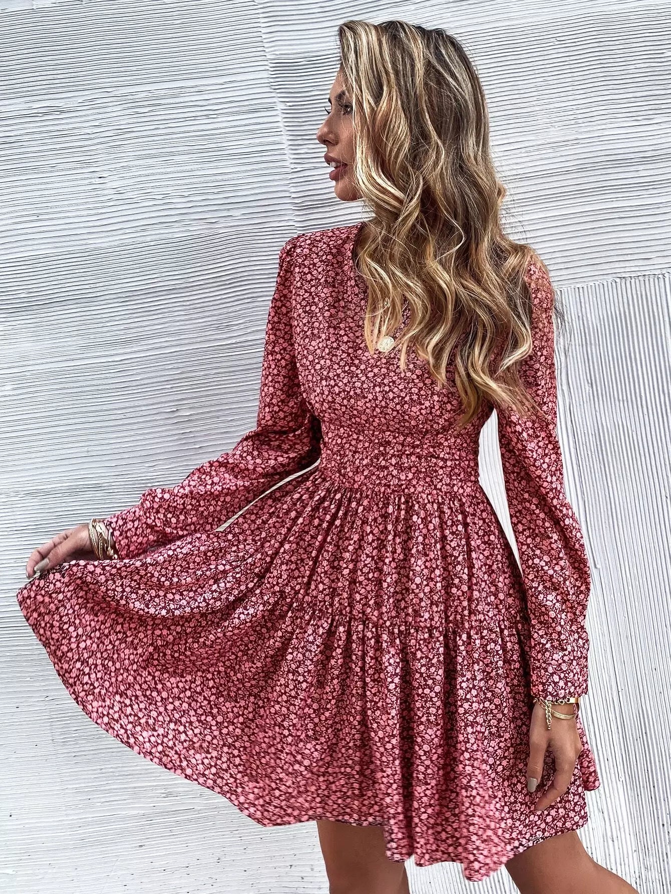 Ditsy Floral Flounce Hem Dress