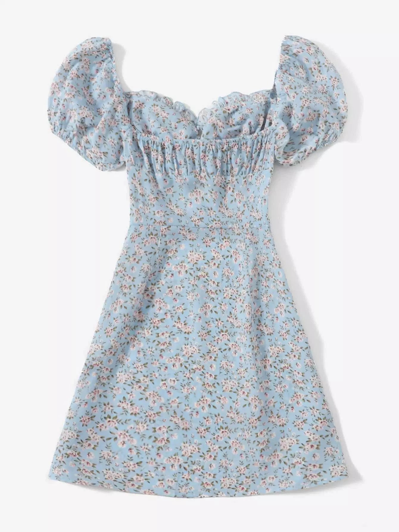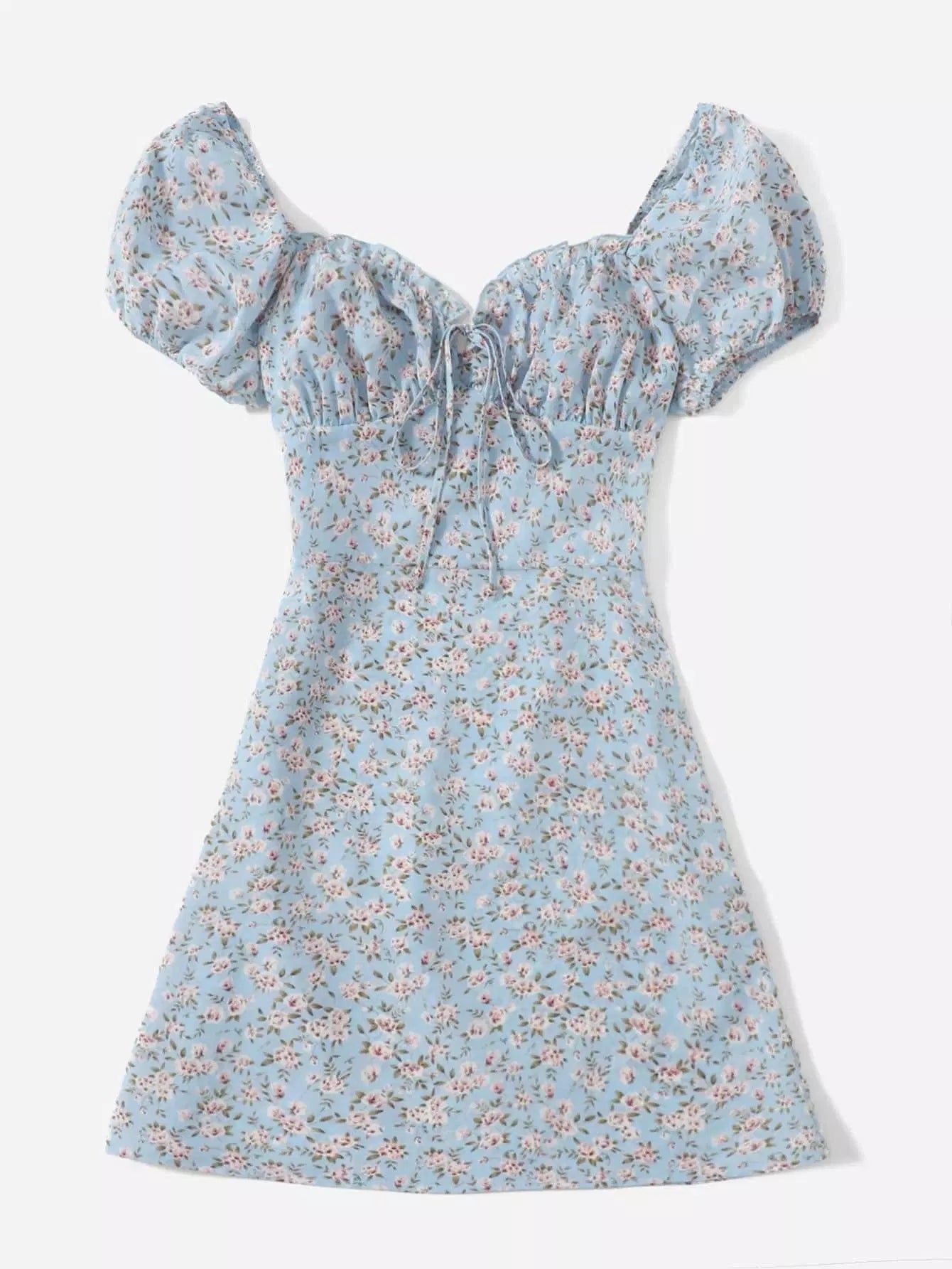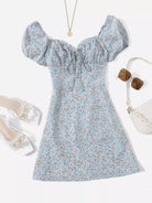 Ditsy Floral Puff Sleeve Ruched Bust Dress