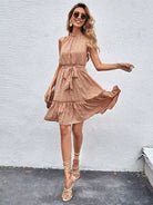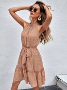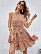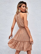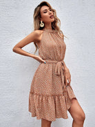 Ditsy Floral Ruffle Hem Halter Dress Without Belt