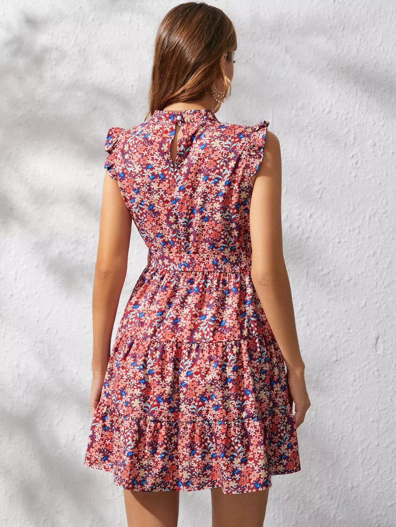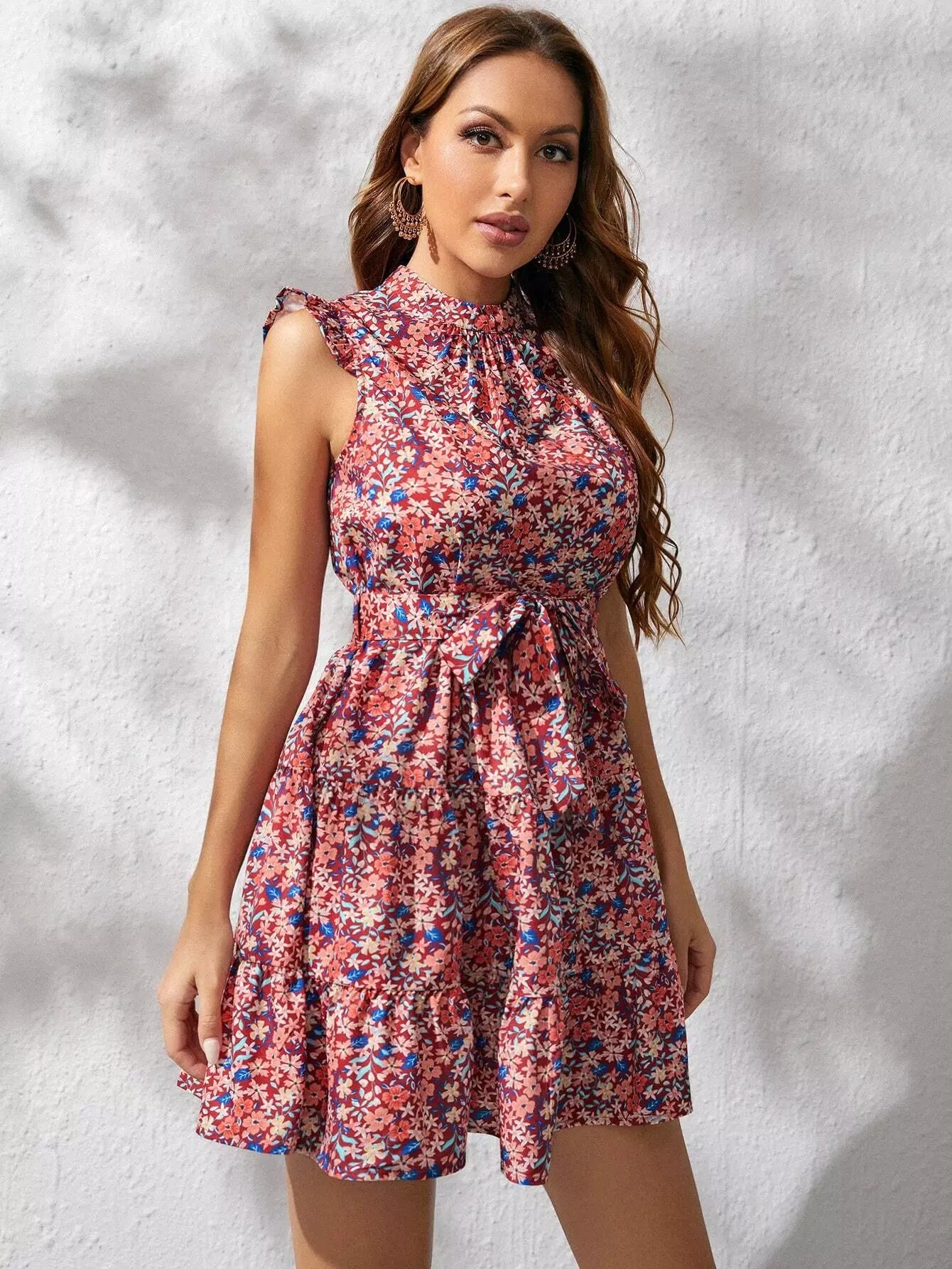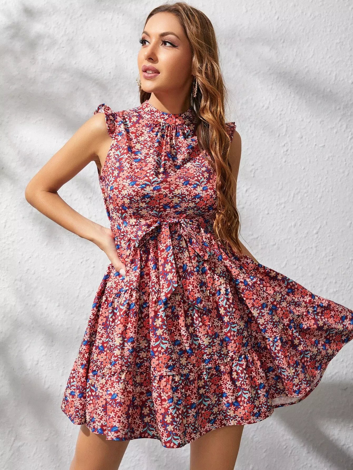 Ditsy Floral Ruffle Trim Dress Without Belt